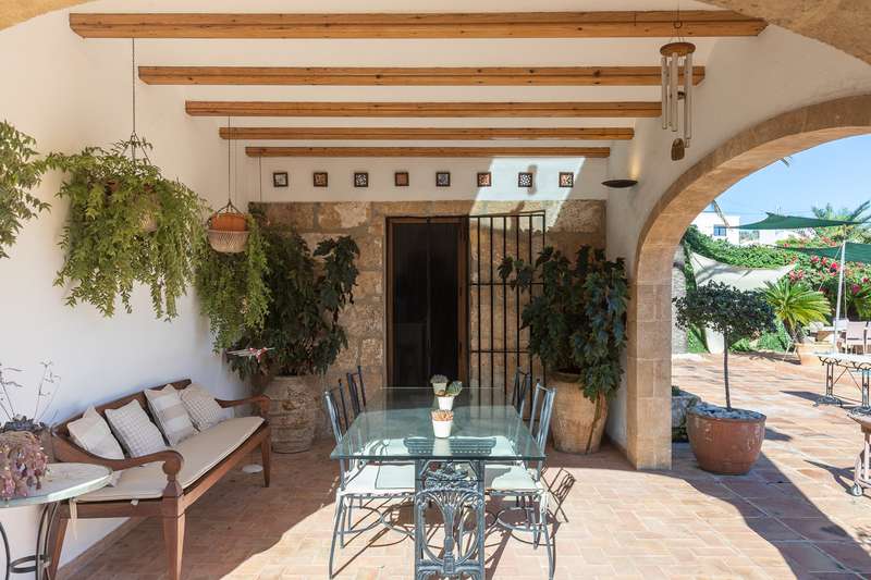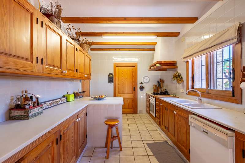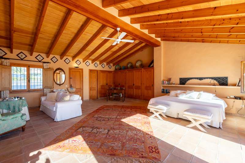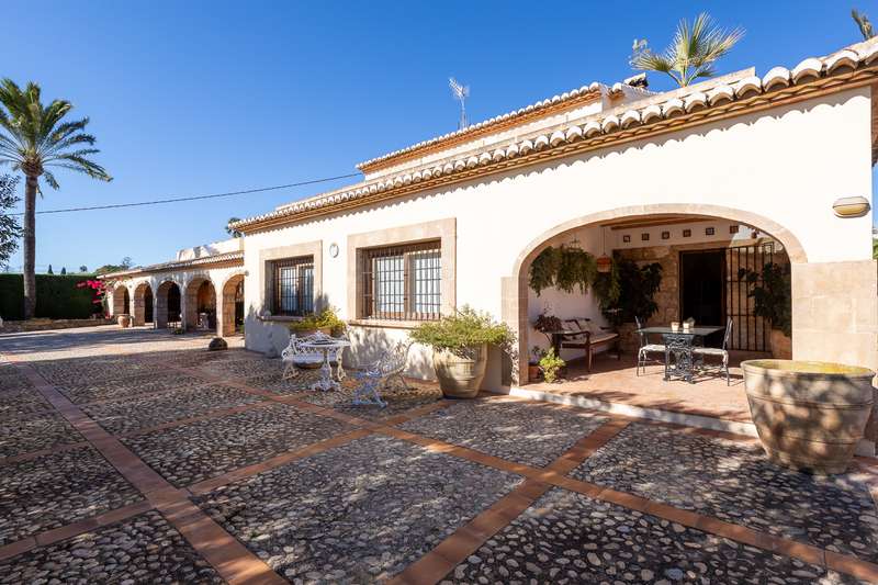 A magnificent property is presented in the quiet area of Senioles, in Jávea, Alicante. This property has a large plot of 2,436 m², completely flat, offering an ideal space to enjoy outdoor life. It has an orchard with different types of fruit trees. With 4 bedrooms and 3 bathrooms, of which 2 are en suite, this villa is perfect for families or those looking for comfort and privacy. The proximity to the old town, the port and the beach makes it an unbeatable option for living all year round or vacationing. The villa is characterized by a large naya typical of the area, with tosca arches, followed by a spectacular entrance hall with views of the interior patio, which is ideal for outdoor dinners or gatherings throughout the year. Next is the large living room with fireplace, sunny and very cozy, dining area, kitchen and laundry room. On this same floor there are two bedrooms and a bathroom. From the kitchen you can access the porch that overlooks the pool, which has a large terrace around it to enjoy the sun, with a dining area under the palm trees and next to the barbecue with typical Valencian tiles. From the large entrance hall you can access the upper floor, where you will find the spectacular and bright master bedroom with its en-suite bathroom and two open terraces, one with views of the Montgó and the other facing south, with open views of the valley. Through an elegant corridor, with a balcony overlooking the inner courtyard, you can reach another bedroom with an en-suite bathroom. The exterior of the property is equally impressive, with large areas, plants and fruit trees. It is worth highlighting the pool and the entire surrounding area, very private and comfortable due to its proximity to the kitchen, porch and barbecue, where in summer time people spend almost all day together. The interior patio of the house is one of the most welcoming spots, full of plants, with stone and rough walls, the floor is paved, imitating the old one of the town's church square. In addition, it has a large garage, a DIY and storage area. It has an alarm system for added security. Due to all its features, this villa is a unique opportunity. Without a doubt, it is an ideal option for those looking for a comfortable home in a privileged environment.