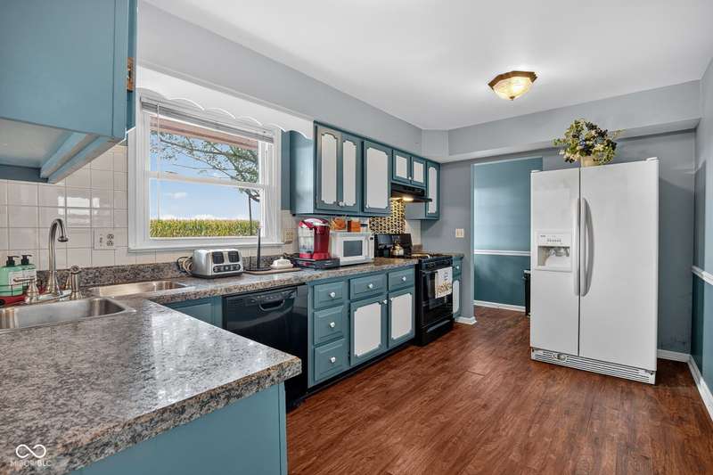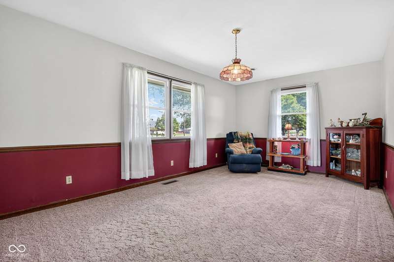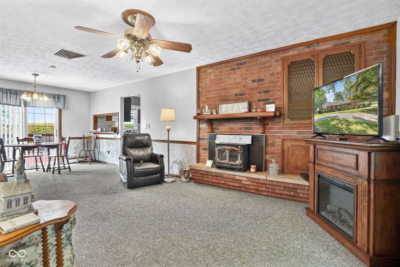 Picture your ideal home in this traditional, all-brick ranch with a spacious yard in a convenient location on Frankfort's southeast side. Relax on your spacious 22'x14' deck out back enjoying nature with mature trees anchoring a serene back yard. This classic offers a horseshoe style paved driveway for easy in and out access to Kelley Rd, with an all-brick covered front porch providing a warm welcome. With 1487 square feet total living area, enjoy a comfortable floor plan featuring three bedrooms and two full bathrooms, plus a family/dining room combo with a large brick hearth featuring 2 built-ins and a cozy wood stove. A separate front living room completes the thoughtful layout, all in a single story that includes a heated, 2-car attached garage. The expansive, nearly half-acre lot offers numerous opportunities for appreciating the outdoors. The possibilities to make this your forever home will be clear with this blend of established character and flexible spaces.