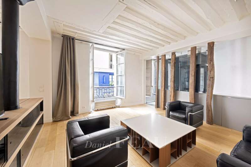 This tastefully revamped 57 sqm dual-aspect apartment is on the 1st floor of a fine mid 17th century building which was built for François le Tellier, a renowned minister during the reign of Louis XIV. An ideal pied a terre a stone’s throw from Palais Royal Gardens and Place des Victoires.