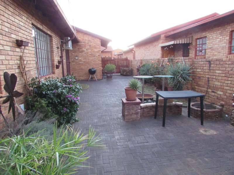 WOW!!!!!! Now this is a GEM, look no further!!! This Low Maintenance Cluster is packed with style, space and is located in a lovely secure complex. The property has laminated flooring throughout, which adds to the warm ambiance. Now lets Step into this lovely home, and see what its all about.!!! Consist of 2 well sized reception areas, where one reception area with air con leads to an open plan kitchen with granite tops, breakfast nook with separate scullery which opens up onto a small entertainment area with build in braai. 2 Lovely and spacious bedrooms with build in cupboards and ample packing space. 2 Modern Bathrooms where one is main on suite. Pre paid meter. Lock up Garage for 2 cars one automated. Pet Friendly. Alarm system with beams. Outside toilet. Well!!!! for sure a winner!!!