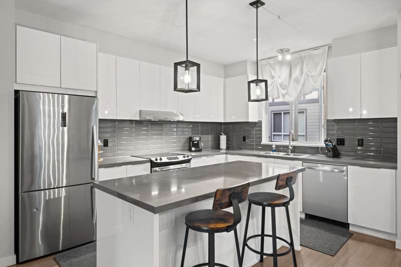 CORNER UNIT, TWO DOOR DOUBLE GARAGE. This beautiful home at sought after Ashbury & Oak in popular Willoughby! This sophisticated 3 bed+ flex space (could be 4th bedroom) corner unit features lots of natural light, modern design, S/S appliances. Open concept floor plan features large open kitchen dining room plus a powder room on main. Plenty of room to entertain with 9' ceilings, fireplace and a good size balcony for your BBQ. Large Side by side 2 car garage, 2.5 bath. Enjoy the 8,000 sq. ft. Kinfolk House - this residents' only resort-style clubhouse has an outdoor swimming pool, fully-equipped gym, indoor playground and guest suites. Convenient location, easy access to all levels of schools, shopping, rec centre and Hwy ! Minutes from the Langley Events Center. Priced to Sell! Act fast.