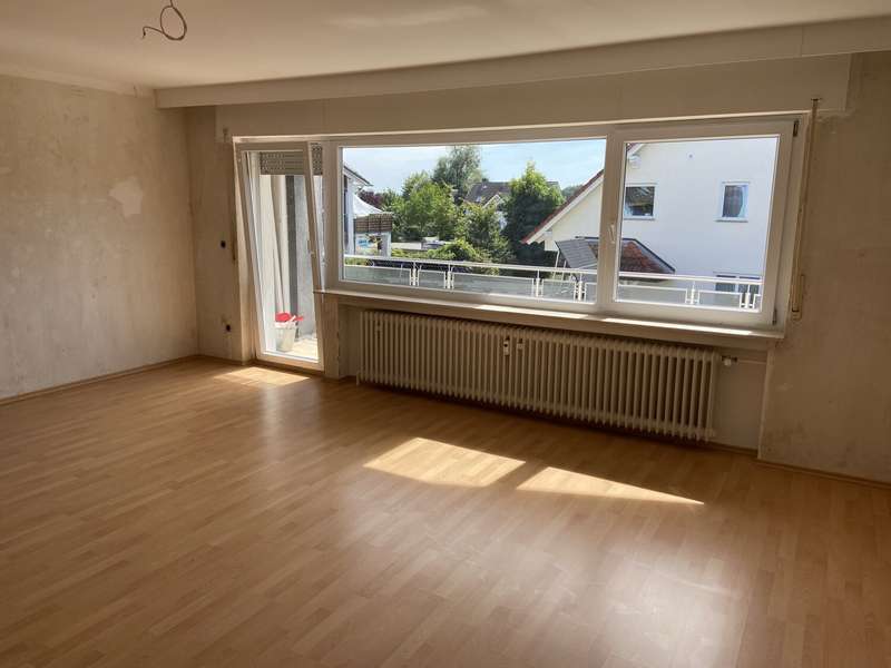 This attractive apartment is located on the second floor of a three-family house with a living space of approx. 100 m² including balcony. The well thought-out floor plan of the apartment offers a generous and harmonious sense of space. The apartment has a total of three rooms, including two spacious bedrooms and a comfortable living room with access to the balcony. The centrally located living and dining area offers plenty of space for spending time together and direct access to an adjoining balcony. Large windows flood the rooms with natural light, creating a pleasant living atmosphere. The apartment is rented without a kitchen. You can install your own kitchen if you wish. Thanks to their practical layout, the two bedrooms offer versatile furnishing options and enough space for individual wishes. Singles and couples as well as small families will find ideal conditions here. The bathroom is equipped with a bathtub, shower and WC. Light-colored tiles and a window ensure a friendly ambience and good ventilation options. The apartment is well maintained throughout. The floor coverings consist mainly of high-quality laminate and the bathroom is tiled. The apartment also has its own cellar room of approx. 15 m². A washing and drying room is also available. In addition, an allocated parking space provides convenient parking directly at the building. See the advantages of this apartment for yourself during a viewing and take the opportunity to combine living in attractive surroundings with comfort and suitability for everyday use. We look forward to hearing from you and will be happy to answer any questions you may have or arrange a personal viewing.