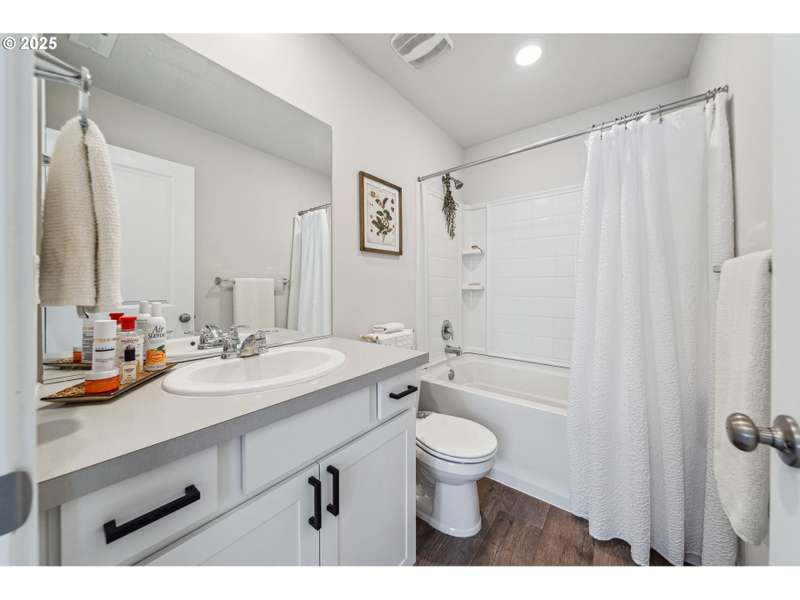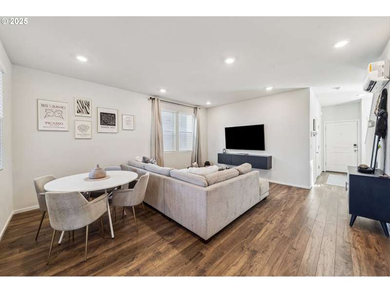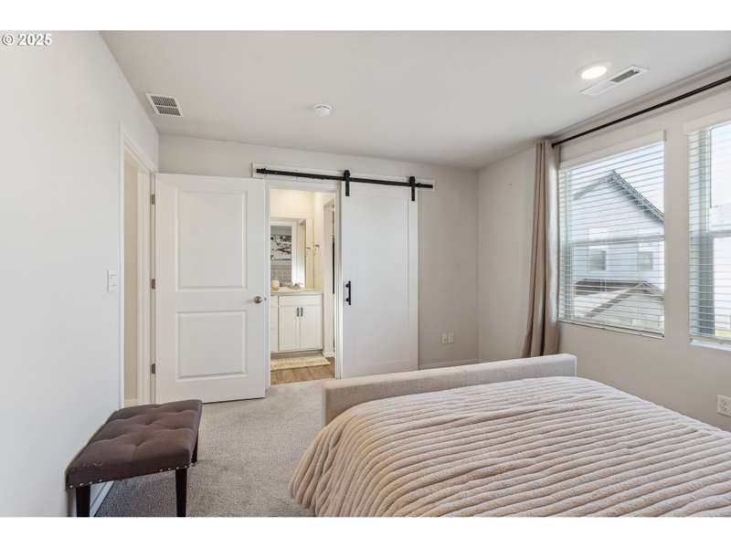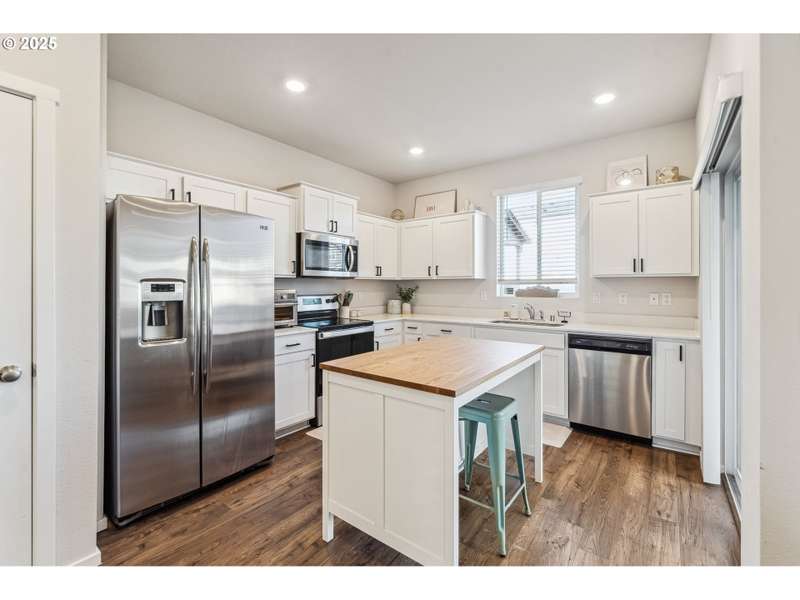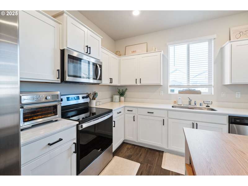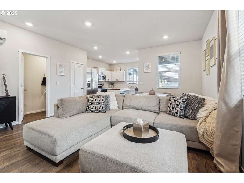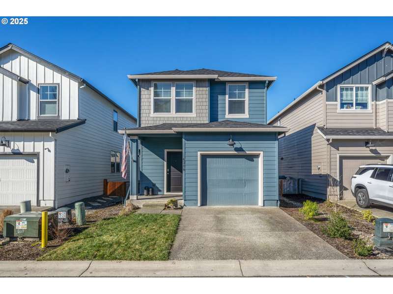 PRICE IMPROVEMENT! ASK ABOUT THE 1% down payment loan program to see if you might qualify. This newer 2021-built home offers a modern and spacious layout, perfect for comfortable living. With 3 bedrooms and 2.5 bathrooms, the home features an open great room plan on the main floor, complete with stylish laminate flooring throughout. The kitchen is a chef's dream, featuring sleek quartz countertops, stainless steel appliances, a pantry, and an added island bar for extra counter space. Step outside to the covered patio, where you can relax while overlooking the fenced backyard, which backs to a serene community commons area, providing privacy with no homes behind you. Upstairs, you'll find a cozy loft area that connects all 3 bedrooms, along with a convenient laundry area situated between them. The primary bedroom is a true retreat, featuring a walk-in closet, custom barn door, and a luxurious walk-in shower for ultimate relaxation. The home also includes a finished single-car garage, offering additional storage and convenience. This move-in ready home blends modern design with functionality, offering an ideal space for both relaxing and entertaining.