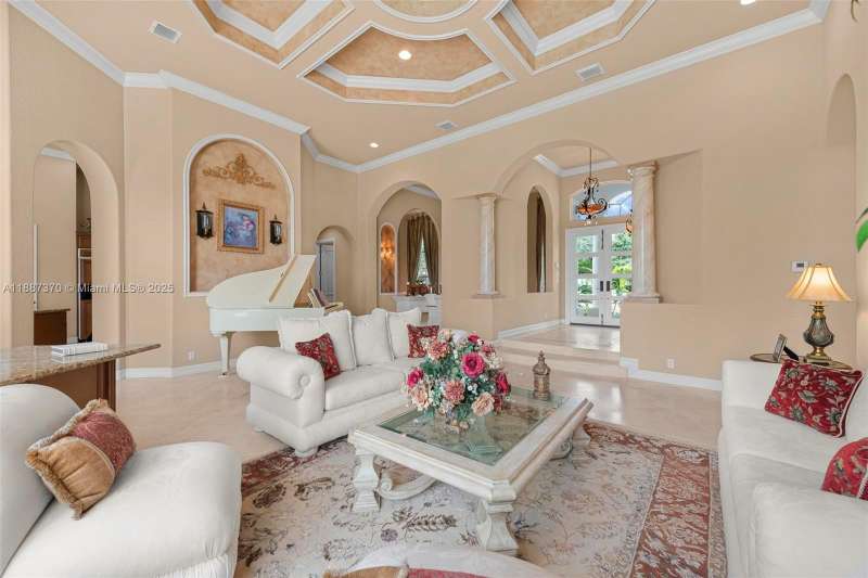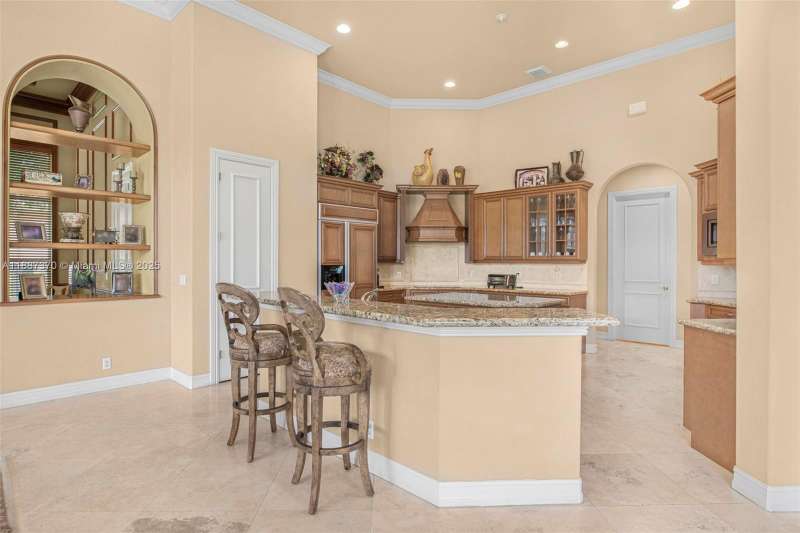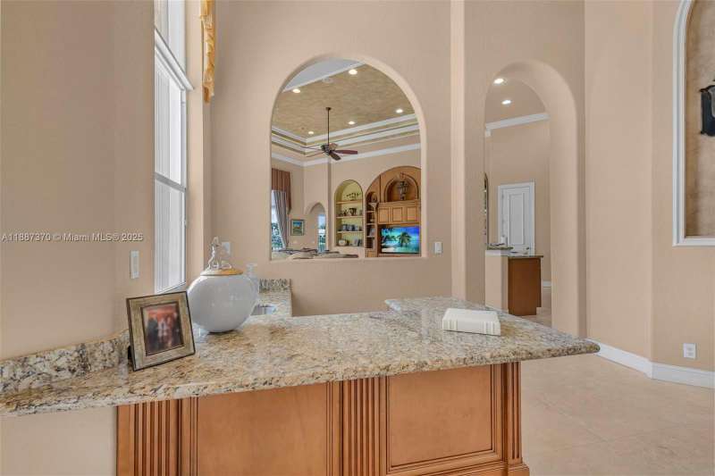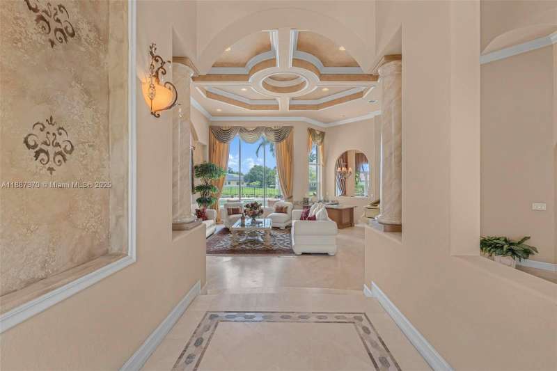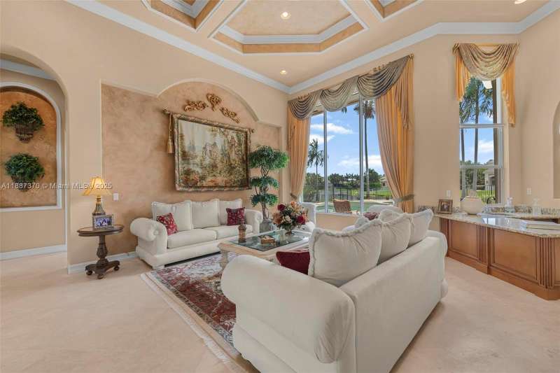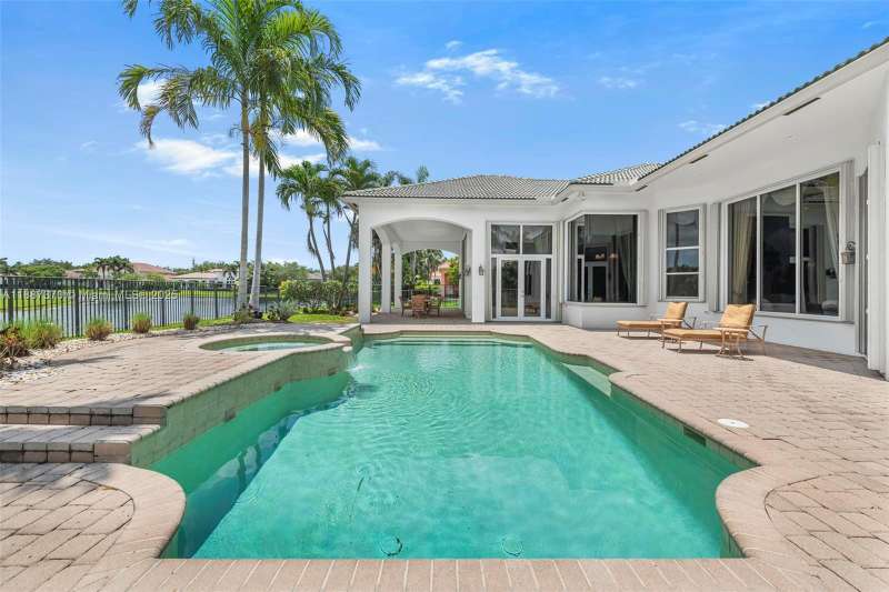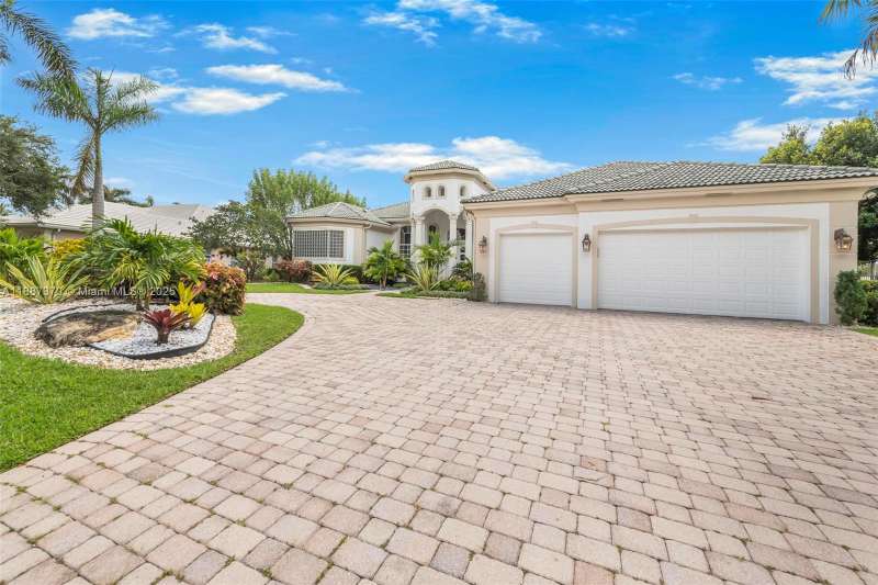 Discover refined elegance in this exceptional estate home, perfectly situated in the prestigious 24-hour guard-gated community of Stonebrook Estates. This residence impresses w/ its grand curb appeal & beautifully pavedcircular driveway. Lovingly maintained by its original owners, the home showcases breathtaking panoramic lakeviews throughout. Featuring 5 bedrooms, 5.5 baths + an executive office. The thoughtfully designed triple-splitfloor plan offers both privacy + functionality. The custom gourmet kitchen opens to light-filled living spaces.Luxurious primary suite w/ a sitting area + dual walk-in closets. Step outside to a beautifully paved backyard oasiscomplete w/ pool & serene lake views. Enjoy resort-style amenities including a clubhouse, tennis + tot lot.A true gem!