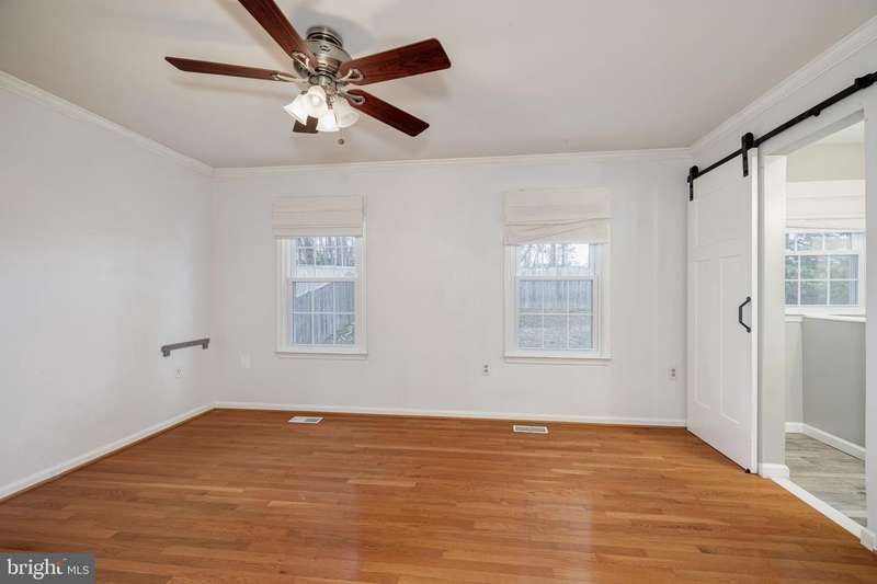 Welcome to 7710 Green Garland Drive, an outstanding Revere model in Springfield's desirable Afton Glen. This split-level has beautiful curb appeal, a spacious 2 car garage, and hardwood floors throughout. Walk into the family room with its soaring vaulted ceilings, 2 skylights, and an inviting fireplace. The kitchen features stainless appliances, granite countertops, glass-tile backsplash, large bay window, and a center island with bar stool seating. Step out from the dining room to the huge deck and fully fenced rear grounds - the perfect space for outdoor entertainment! The owner's bedroom has tons of natural light, a ceiling fan, and a walk-in closet with custom shelving and a stylish chandelier. The owner's bath has a sliding barn door, a nice vanity, and modern track lighting. There are also 2 other bedrooms and a tastefully updated bath on that level. The lower level features the fourth bedroom, a nicely renovated full bath, and the laundry room. This property is in a great location close to commuter routes, shopping, Metro, and much more!