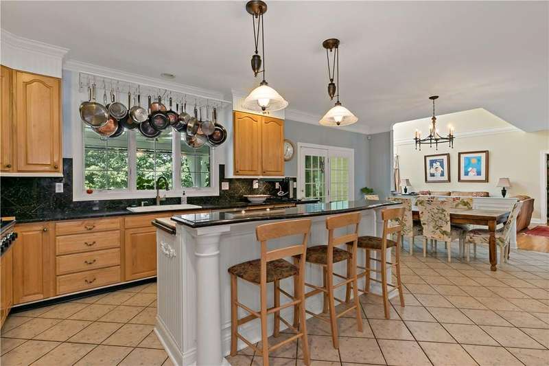 An elegantly presented Cortlandt Chase rental home with an endless list of distinctions. This spacious Madison style colonial encourages prospective tenants to envision their dream living space. The well-appointed chef's kitchen offers ample room to unleash culinary creativity, complete with a prepping island, pantry, beverage cooler and gas cooking facilities. Adjacent to the kitchen, the family room boasts a charming fireplace, cathedral ceilings, and skylights, basking the room in abundant natural light throughout the day. Pass through the French doors to discover a library/home office featuring handsome built-ins. One of the favorite gathering rooms will be the recreational/billiard/media room. Completing the main floor is a dining room, powder room, and living room. Ascending to the second level via the grand staircase, you'll be greeted by a balcony which overlooks the family room. The generously sized primary suite stands out with an additional room that can serve as a nursery, private study, or dressing room, along with dual walk-in closets. Tastefully updated bathrooms, including the primary bath, princess suite bath, and hall bath are showcased, One of the secondary bedrooms offers a private deck, overlooking the tranquil backyard. The extended main floor deck is a standout feature, adorned with formal pillars, stone flooring, and privacy drapery, creating a dream-like atmosphere. The lush yard, enveloped by mature trees, features a charming pergola adorned with grapevines, providing an inviting and captivating setting. This furnished rental home offers a one-year lease and boasts a convenient location, being close to golf courses, hospitals, shopping centers, parks, metro north stations, and trendy eateries.