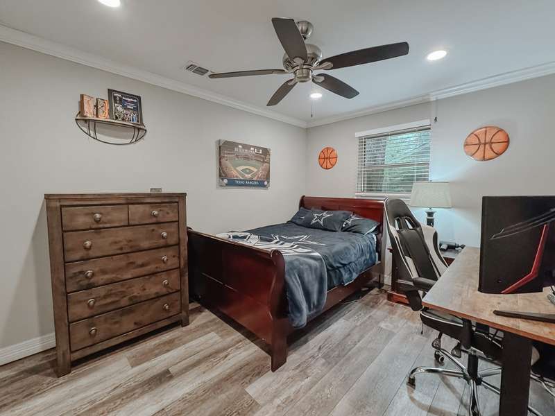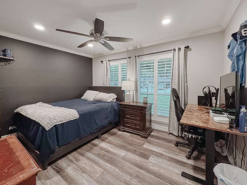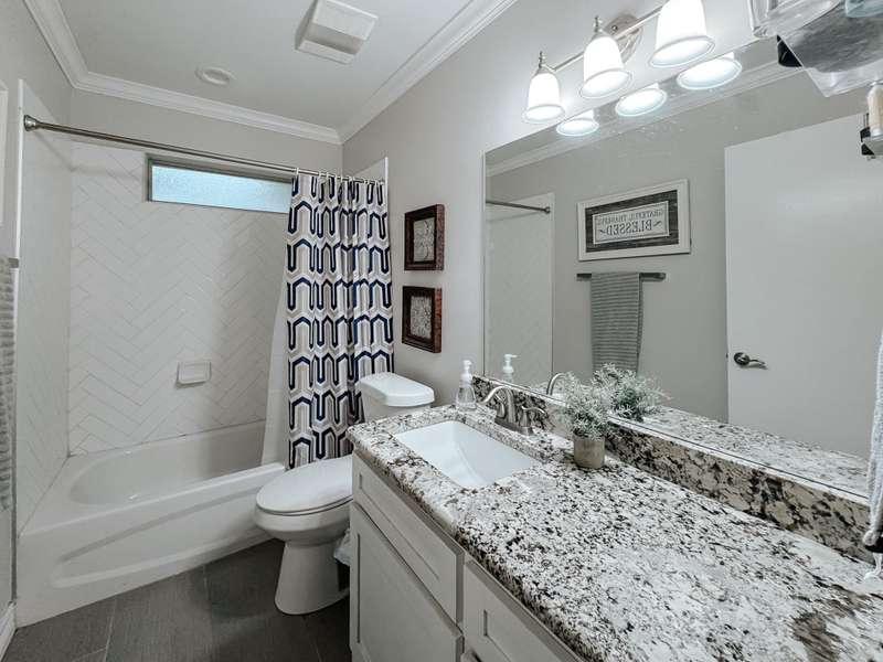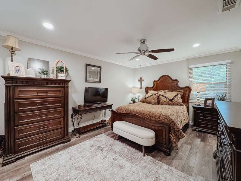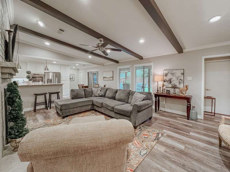 Welcome to this spacious 4-bedroom, 3-bath home offering comfort and style for the whole family. Inside, youll find an inviting layout with plenty of natural light and plenty of room to entertain. You will find the second living area with wood beams and a brick fireplace creating a warm space for hosting friend and family. Two of the bedrooms can be used as both primary as they feature their own bathrooms. The heart of the home features a generous living area, well-appointed kitchen, and private bedrooms designed with convenience in mind. Step outside to your own backyard, complete with a large open patio and relaxing hot tub, perfect for gatherings or winding down after a long day. This home combines everyday functionality with the perfect touch you dont miss your chance to make it yours!