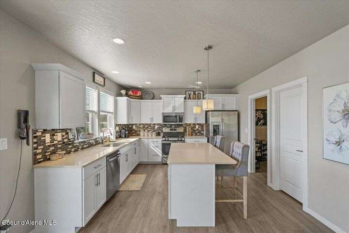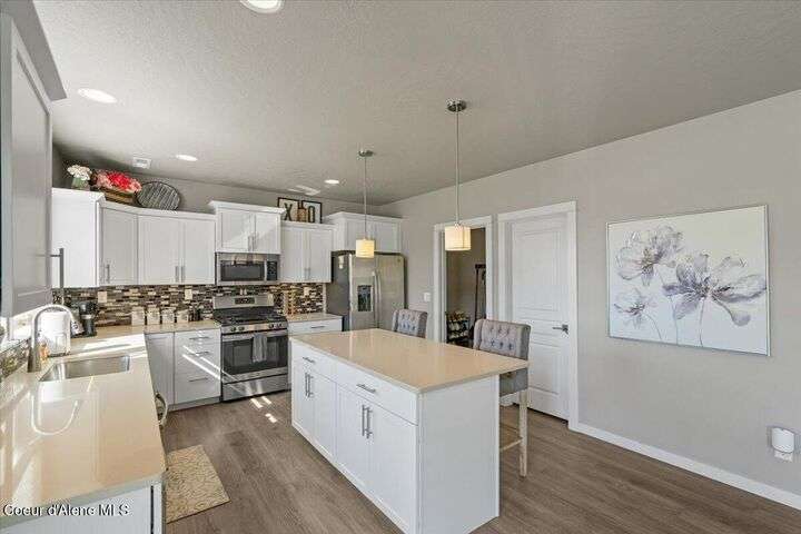 Located in the highly desirable Tullamore neighborhood of Post Falls, this stunning Waterbrook plan offers the perfect balance of space, design, and flexibility. With approx. 3,200 sq ft, the main level welcomes you with expansive living and dining areas, plus a gourmet kitchen featuring a breakfast bar, large pantry, and mudroom, all flowing seamlessly into the oversized family room. Upstairs, the impressive primary suite includes a spa-like bath with soaking tub, separate shower, and an oversized walk-in closet. A spacious loft connects three additional bedrooms and a full bathroom, while the flexible floor plan offers the option of a fifth bedroom or convenient main-level office. With abundant space, timeless finishes, and an ideal location in one of Post Falls' most sought-after communities, this home truly has it all.