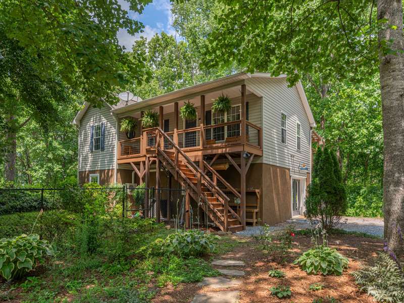 Amazing Deal for This Acreage Plus a Large Home at This Price So Convenient to Everything! 2 Primary Bedroom Suites! One on Main and One in the Lower Level for Guests or Airbnb Potential. Only 18 Mins to Downtown Asheville. 9 Mins to Lake Tomahawk in Black Mountain, 2 Mins to Dynamite Coffee & Pisgah Brewing. New Roof 2019, New HVAC in 2023 and 2025. Triple Water Filtration System & Softener, New Pressure Tank, New Hot Water Heater, Trex Decking & Beautiful Flooring completes this Move-In Ready home! Convenient to both Asheville and Black Mountain, but in the perfect location for privacy. Tons of Outdoor Space including a Potential Auxiliary Dwelling or Garage Building Space, 2 RV Spots, 2 Fire Pits for gatherings & a Trail down to the Spring Fed Pond where the property levels out again. Perched above the Swannanoa Valley, this 2.3 acre property has so much to offer & Beautifully Remodeled Home with space for everything & incredible craftsmanship. The main level Vaulted Ceiling and Open Floor Plan is fantastic. The lower level was fully finished to include an extra refrigerator & freezer possible kitchenette area, living area, a flex space, a Second Primary Bedroom Suite with a Huge Walk-Through Closet leading into the Spa-like Bathroom with a Walk-in Tiled Shower. Lower Level has Coffered Ceilings, tons of light, Maybe a Rentable Airbnb?