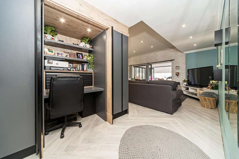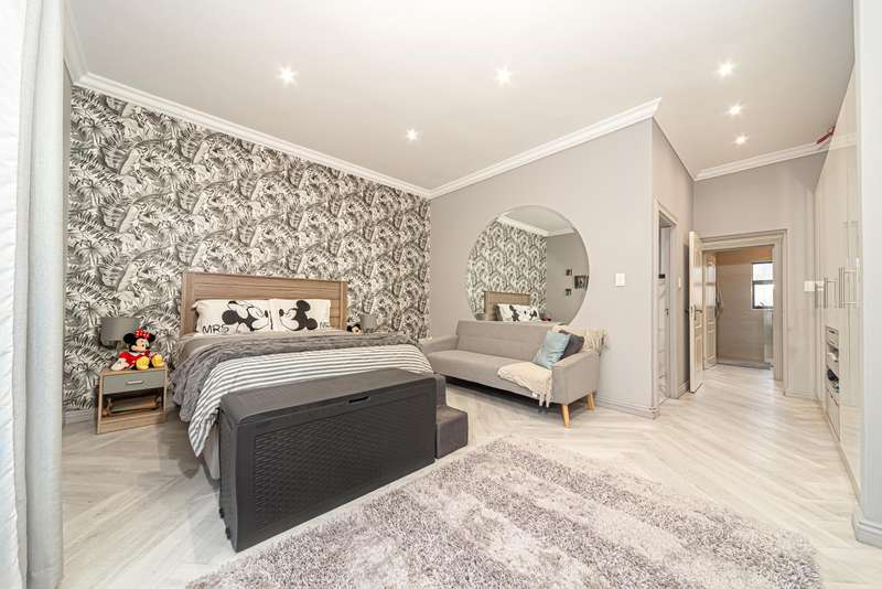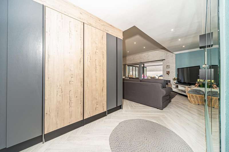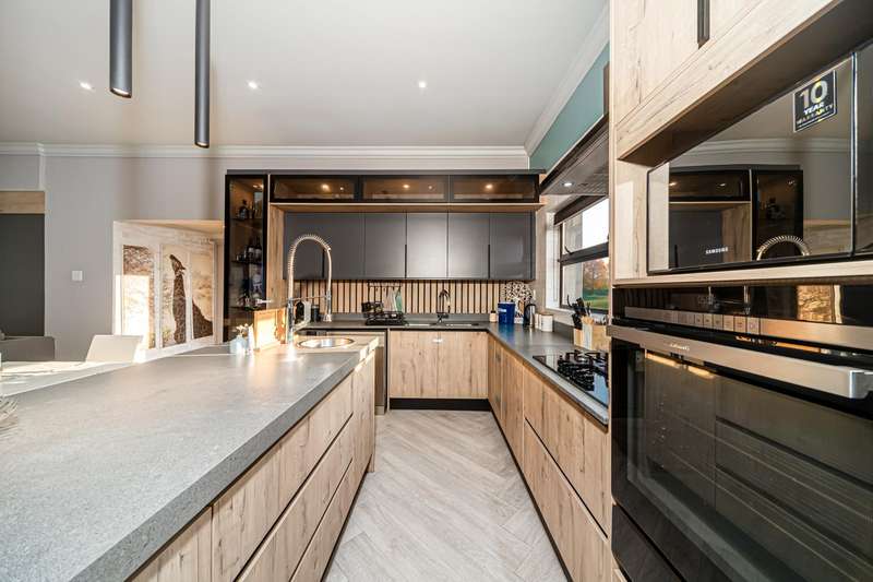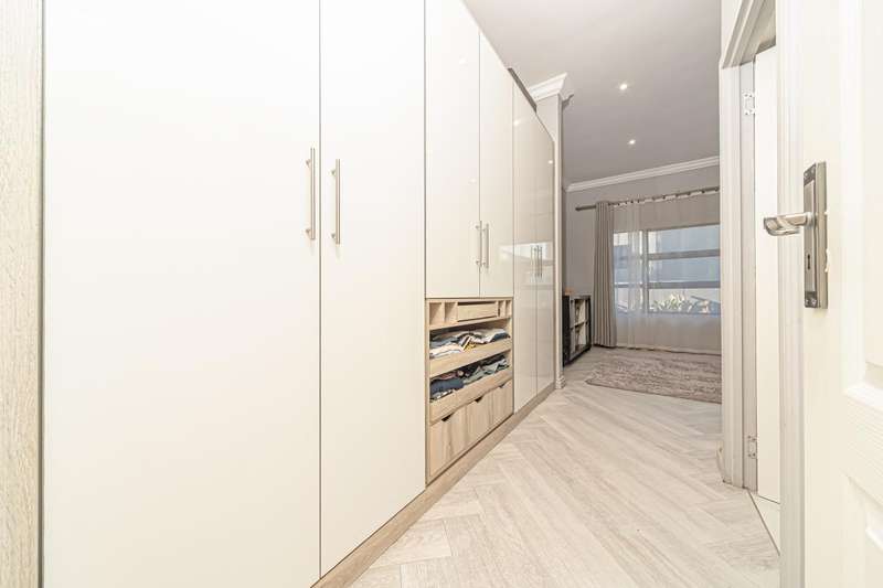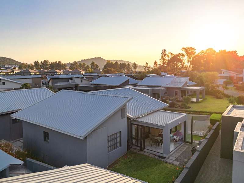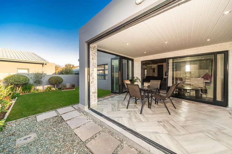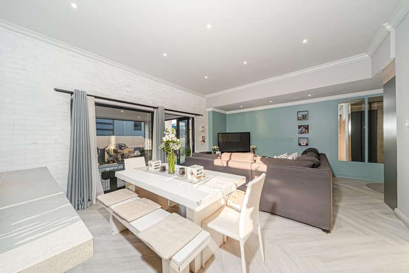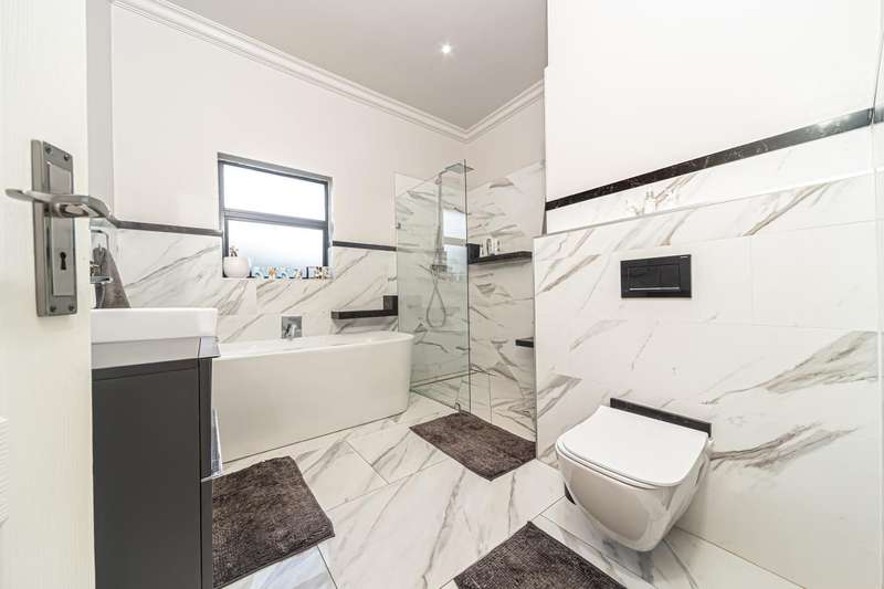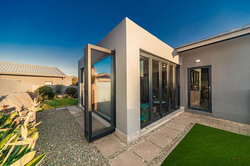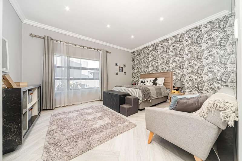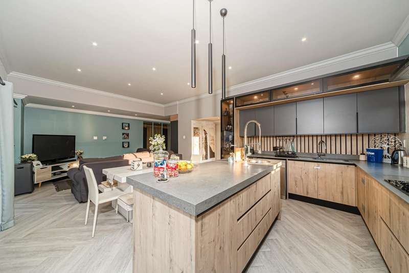 Welcome to a contemporary gem that perfectly blends refined design and family-friendly functionality, nestled in one of the most sought-after secure estates. Spanning 180sqm of internal space on a 367sqm stand, this single-storey masterpiece boasts clean architectural lines, a modern mono-pitch roofline, and a striking street presence. Step inside to a seamless open-plan layout where natural light pours through large aluminium-framed windows and stackable doors. The designer kitchen is the heart of the home?Çöanchored by a bold centre island with pendant lighting, two-tone cabinetry, integrated appliances, and soft wood finishes that exude Scandinavian sophistication. Just off the kitchen lies a built-in study nook, cleverly concealed within custom cabinetry?Çöideal for remote work or quiet focus. The spacious dining and living area flows effortlessly onto a fully enclosed entertainment room, complete with sleek stack-back doors that extend your indoor space into a manicured private garden?Çöperfect for hosting or winding down in style. Accommodation includes three well-appointed bedrooms and two ultra-modern bathrooms. The primary suite is a calming sanctuary, complemented by a walk-in wardrobe and an exquisite en-suite bathroom adorned in crisp marble-look tiling and matte black accents. This home also offers a double garage with direct access, an inverter system for uninterrupted living, and stylish herringbone flooring that enhances its designer edge throughout. Modern, low-maintenance, and meticulously finished?Çöthis is a home that speaks to the discerning buyer looking for security, style, and seamless living in an elite estate setting.