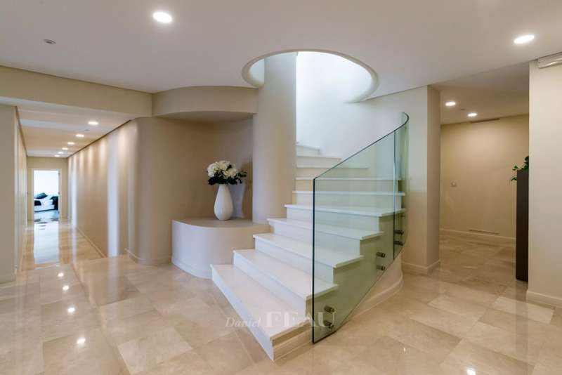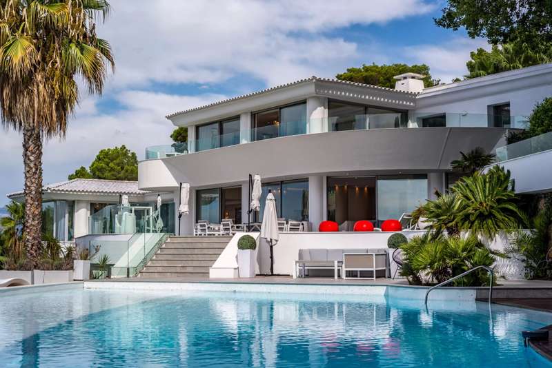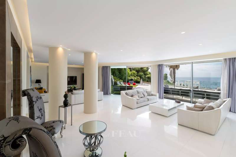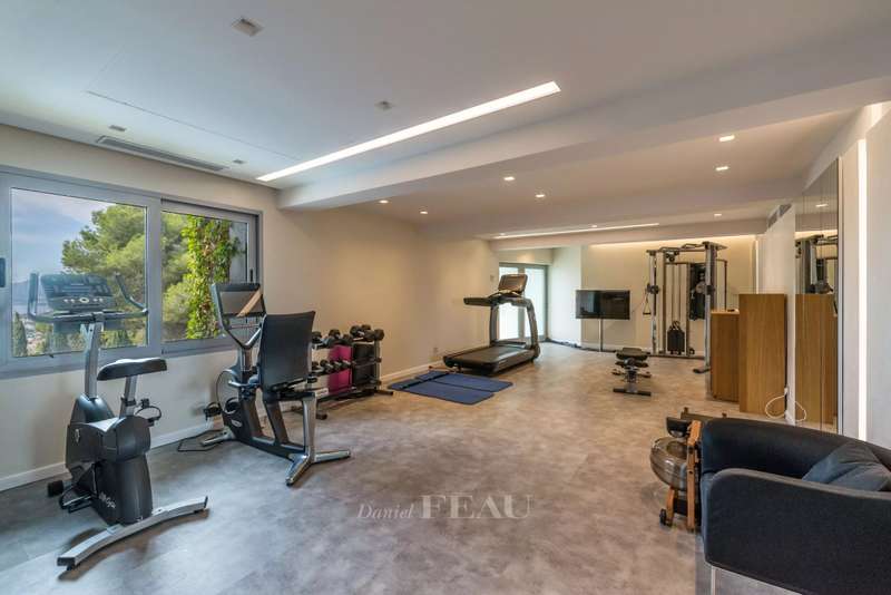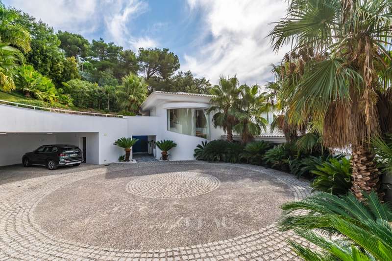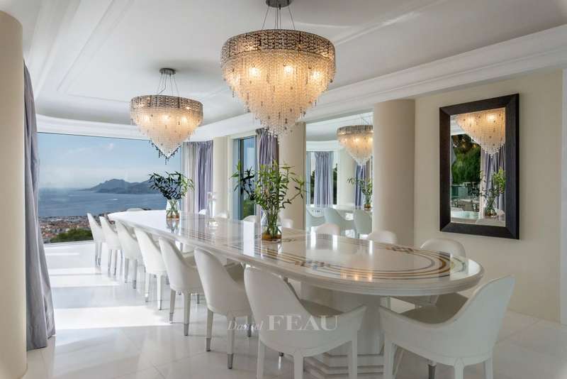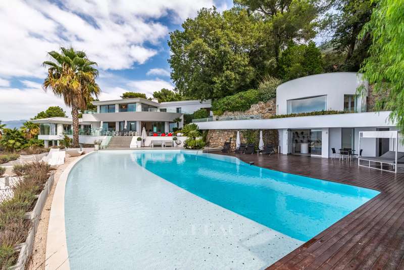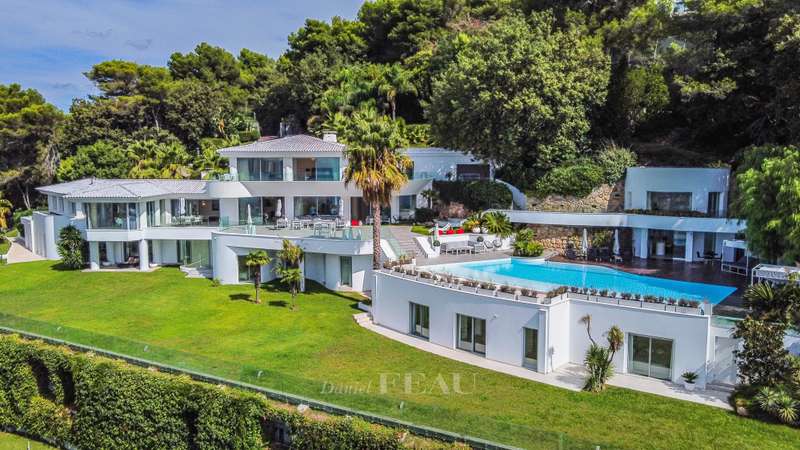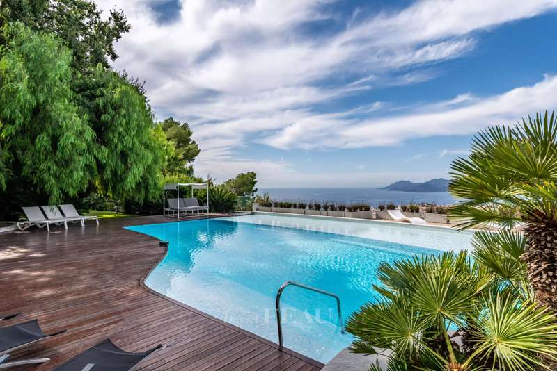 This exceptional property offering 2035 sqm of floor space and 1325 sqm of living space is in a secure residential neighbourhood in an elevated setting commanding a picture-postcard view of Cannes Bay. Bathed in sunshine and benefiting from a unique architectural style blending into its environment, it is set in over 1.3 hectares of landscaped grounds featuring delightful paths, a tennis court bordered by cypress trees, relaxation areas and a swimming pool. Renovated throughout in 2014, featuring contemporary materials and beautifully appointed, it includes a very spacious entrance hall, a double living/reception room, a dining room, an equipped semi-professional kitchen with a pantry, and an immense terrace. The upper floor comprises two master suites opening onto terraces commanding sea views. Seven further suites enjoying sea views, a home cinema, a fitness area, a billiard room and a wine cellar are on the garden level. With a guest house including a living room, a kitchen, two suites and wide terraces, a 5-bed staff annex and a 12-car garage. A truly exceptional property.