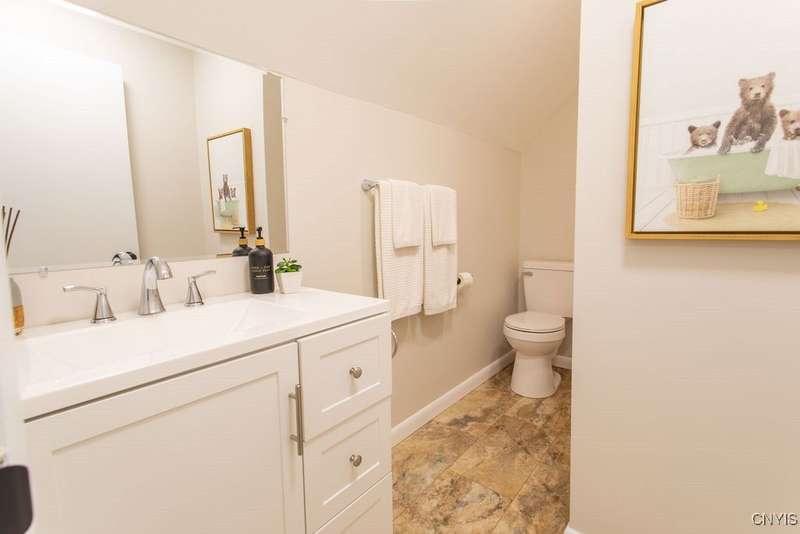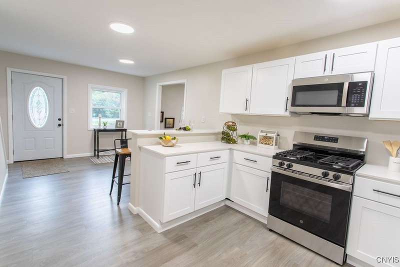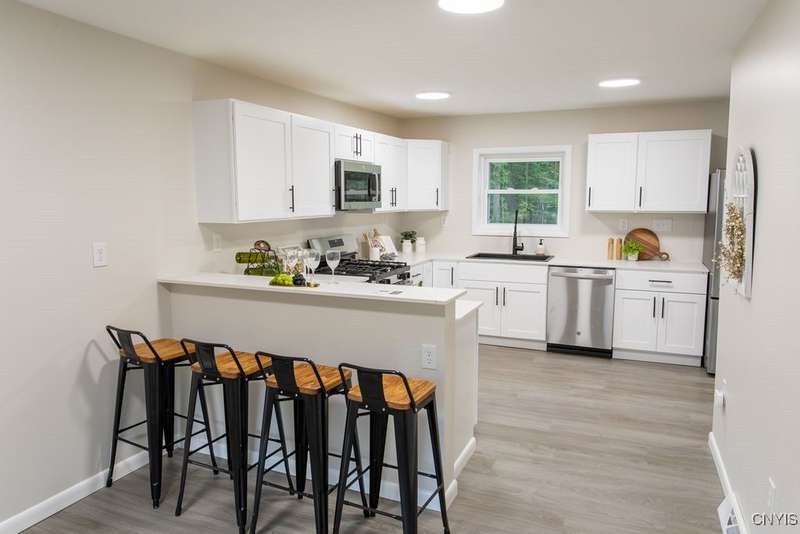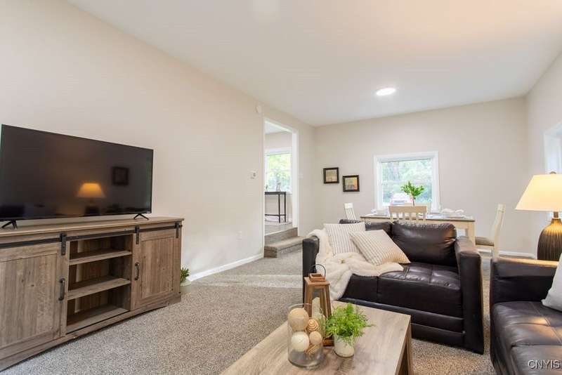 Welcome to this charmingly beautiful, fully rebuilt 4 bed 2 full bath slice of heaven on around an acre of wooded land just outside the Village of Baldwinsville! BRAND NEW ROOF, new siding, new vinyl windows, NEW FURNACE, tankless on-demand hot water system, UV water treatment, new LVT flooring and wall-to-wall carpeting throughout, new kitchens and bathrooms, including matching stainless steel appliances, quartz countertops, sliding glass door leading out to a new deck overlooking the tranquil backyard? this one has to be seen to be believed! First floor laundry hookups mean never having to go into a basement to do laundry, large first floor bedroom with full bathroom right across the hall means one floor living is possible in this home, and three bedrooms upstairs all freshly carpeted. New, double-wide asphalt driveway with turnaround, brand new matching shed for additional storage, new gutters and smartly designed water management systems, the list goes on and on! Baldwinsville school district. Don't delay, make an appointment to come see this one with your favorite local real estate agent today!
