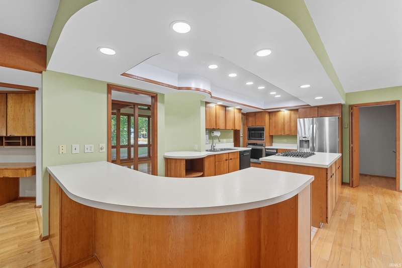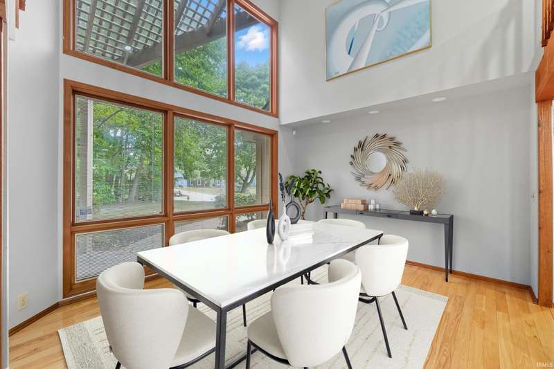 Introducing "The Wild Rose" a striking architectural gem in the prestigious Village of Buckingham. Originally featured in the Parade of Homes, this custom-built contemporary residence offers nearly 6,000 sq. ft. of finished living space, with four spacious bedrooms, four and a half bathrooms, and a 3-car garage, thoughtfully designed for both elegance and everyday comfort. They simply don’t build homes like this anymore! Step through the lattice-covered front entry into a sunlit interior with soaring ceilings, dramatic architecture, and an open-concept layout framed by oversized windows and sliding doors offering panoramic views of the wooded lot. The main level features a full bath, three patio-access sliding doors, and a sprawling great room. Whether you’re hosting in the formal dining room or relaxing by the fireplace, this home adapts beautifully to any occasion. Upstairs, the primary suite is a true retreat with a wrap-around balcony, dual walk-in closets, and a spa-like bath with a jetted tub and separate shower. The laundry room is conveniently located near all four bedrooms. The finished basement is built for entertaining, complete with a wet bar, pool table (included), and ample storage. Set on a private, wooded half-acre in a quiet cul-de-sac, this home offers peace, privacy, and timeless style. Don’t miss your chance to own this rare architectural masterpiece.