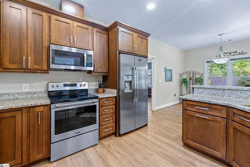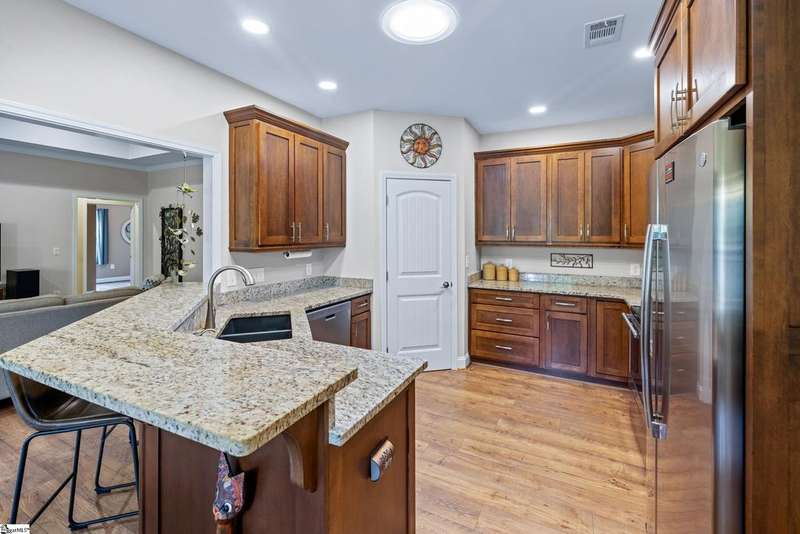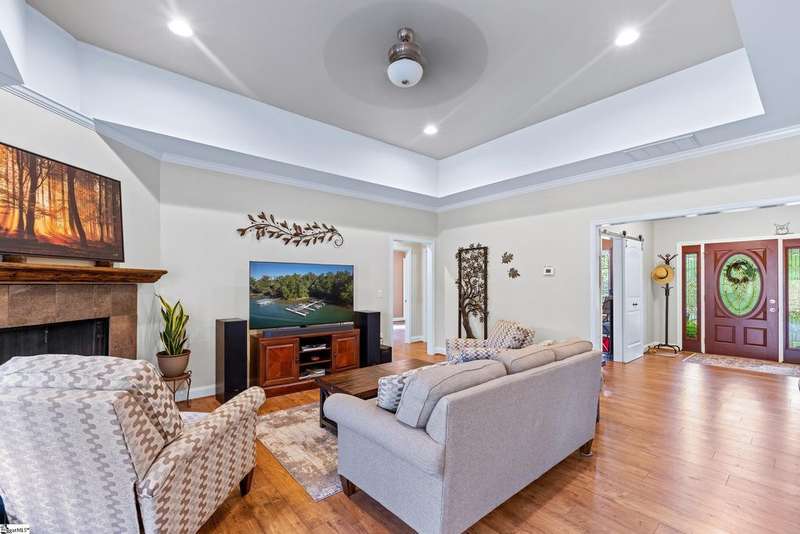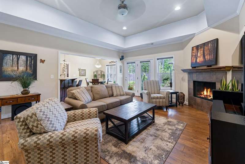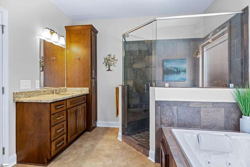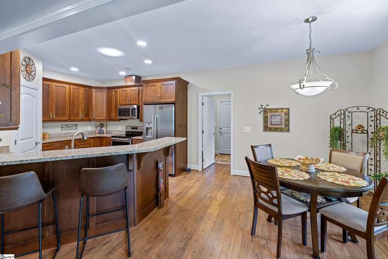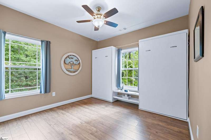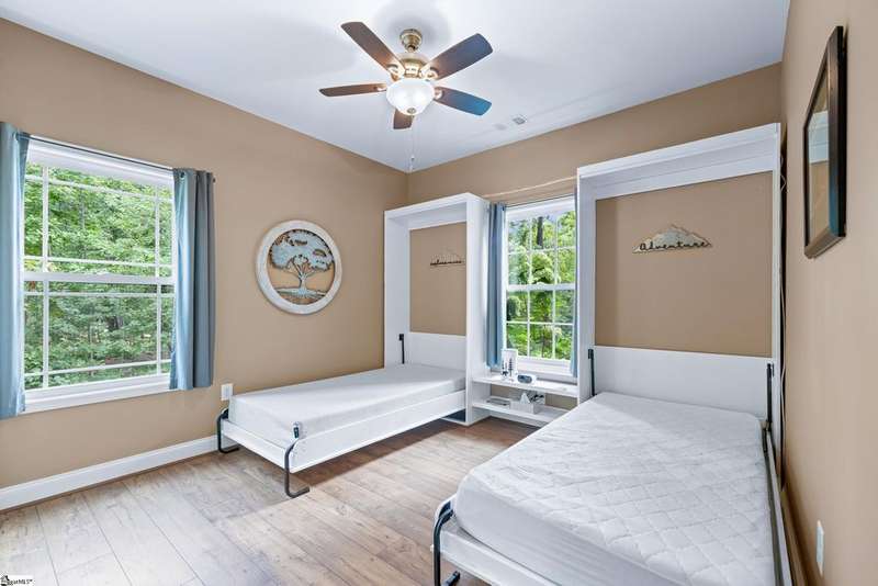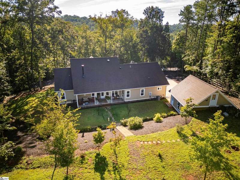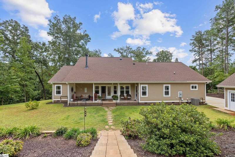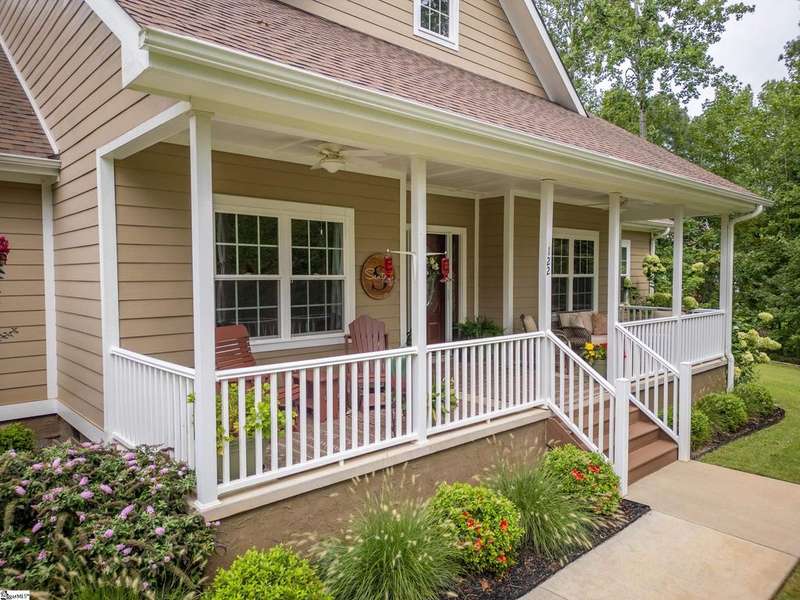Welcome to 122 Woods Drive: Nestled in the desirable Woods at Lake Keowee, this property includes a deeded, deep water boat slip #14. Spanning 1.24 acres and constructed in 2019, this home emphasizes low-maintenance, single-level living. The open floor plan features a split-bedroom layout, ensuring privacy for both the owner and guests. Relax on the covered front porch or the back patio, taking in the views of the nicely landscaped grounds. The primary suite boasts two walk-in closets, double vanities, a jetted tub, and a spacious tiled walk-in shower. There are also two guest bedrooms, one equipped with twin Murphy beds, along with a full bath located on the opposite side of the house. This versatile floor plan offers numerous possibilities to accommodate your needs, including an office/4th bedroom and a formal dining room/den. The kitchen comes with a walk-in pantry, granite countertops, stainless steel appliances, and a breakfast area overlooking the back yard. Need storage? The property features an attached oversized two-car garage as well as a detached two-car garage with additional storage above (access door located at the back). The Woods at Lake Keowee community offers amenities such as a pool, clubhouse, tennis courts, and ample space for boats and RVs. Plus, it is conveniently located near dining, shopping, and healthcare facilities. The boat slips are located in a protected deep-water cove. The neighborhood allows swimming and fishing off the dock for your Lake Keowee enjoyment. See supplements for boat slip information and map.