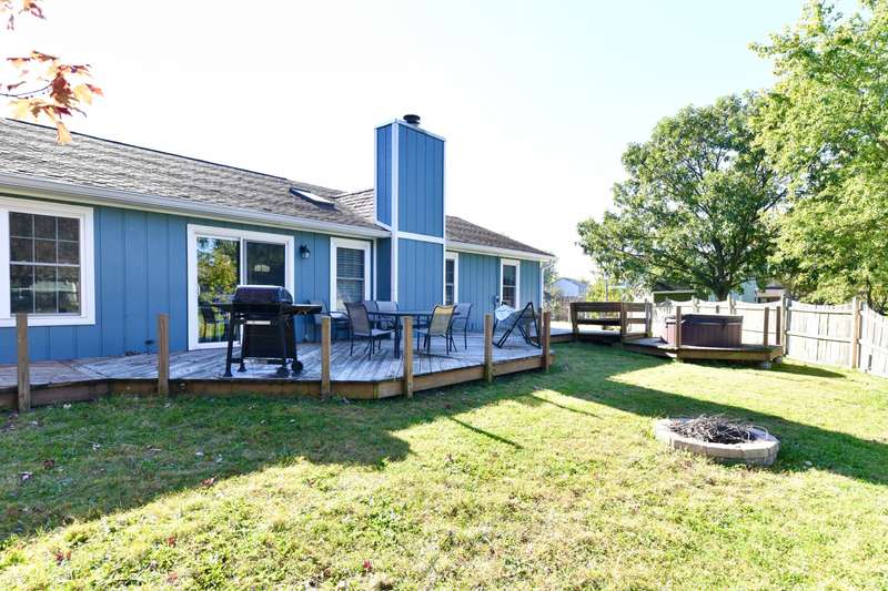 Nestled in a serene setting, this charming 3-bedroom, 2-bathroom ranch offers the perfect blend of comfort and natural beauty. The open floor plan creates an inviting space for entertaining, with seamless flow between the living, dining, and kitchen areas. Cozy up by the wood-burning fireplace. Step outside to your expansive deck, where you'll find plenty of seating areas to relax and enjoy the outdoors. A luxurious hot tub awaits, offering the ideal spot to unwind while taking in the peaceful pond view just beyond your backyard. Whether hosting gatherings or enjoying quiet evenings under the stars, this home is designed for both relaxation and entertaining. With its tranquil setting and thoughtfully designed layout, this home is a true retreat, offering the best of indoor and outdoor living.