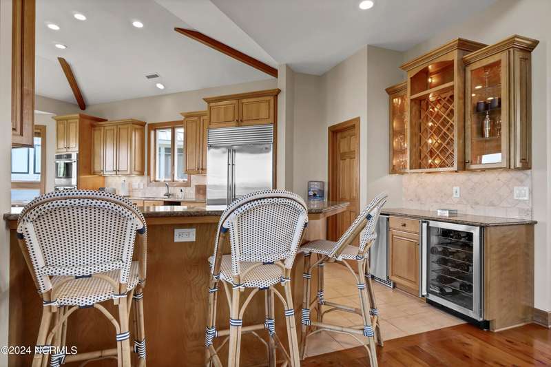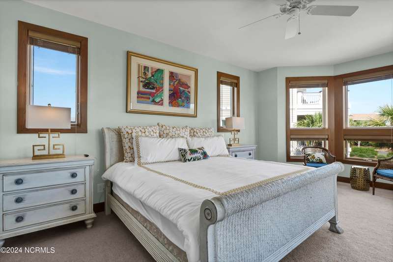 This is a beautifully maintained four-bedroom, five-bathroom property with amazing views of the ocean and easy access to the beach, conveniently located just across the street. The gourmet kitchen features granite countertops, a tile floor, two dishwashers, two sinks, and top-of-the-line equipment. The home also features many decks with spectacular views, a three-car garage, a manicured lawn with a water feature, and two outdoor showers. A Figure Eight Island Yacht Club Warrant is available. Home to be sold furnished with owner exceptions.