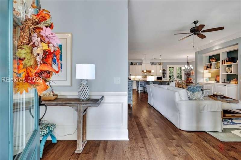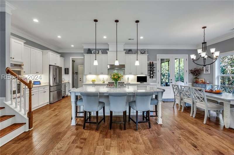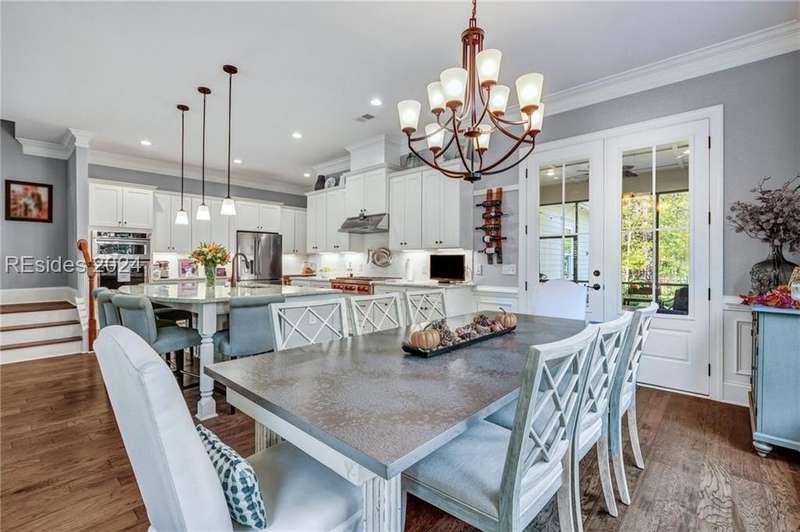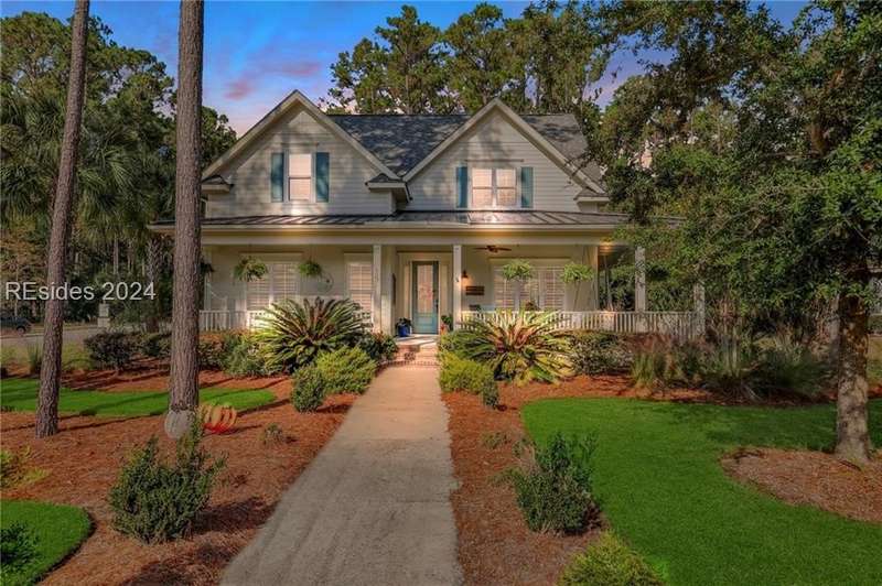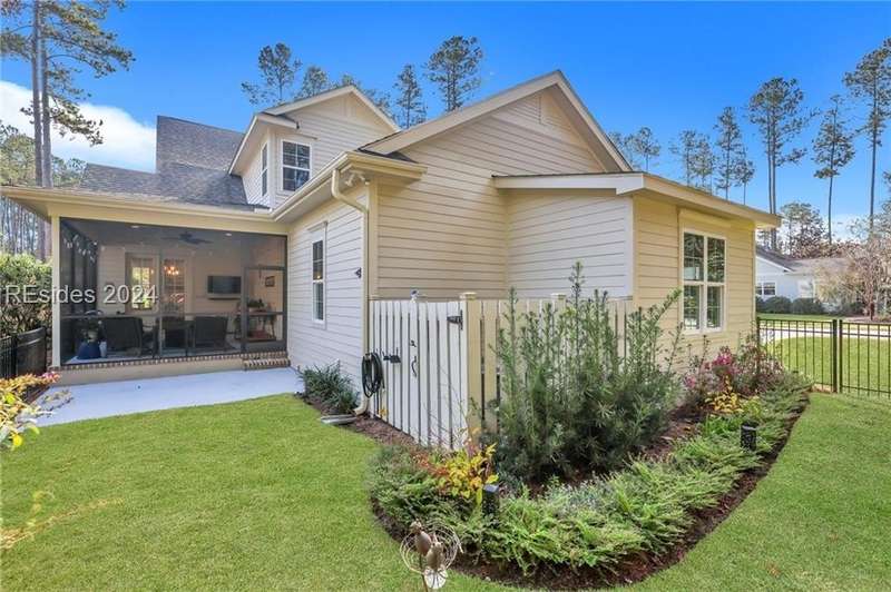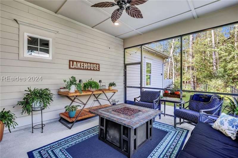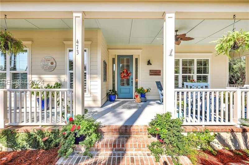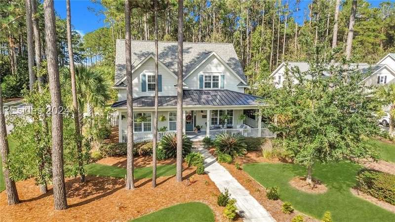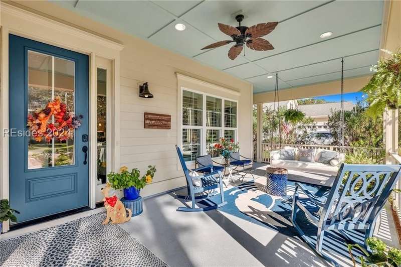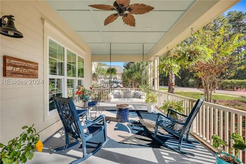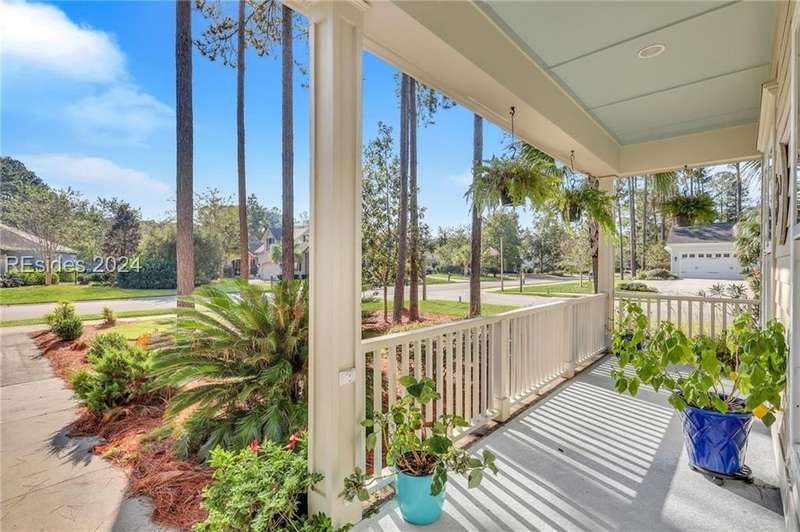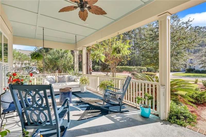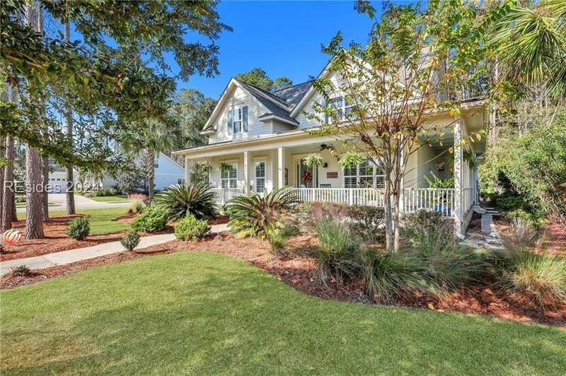 One of the most iconic homes with “THE” wrap-around front porch is for sale in Hampton Lake! Beautiful Great room with built-ins and fireplace. Gourmet kitchen has 5 seat island, white cabinets, granite, wine cooler, and huge walk-in pantry. Dining area. French door office with coffered ceiling. Peaceful primary bedroom suite and gorgeous bathroom. Upstairs has a large loft, huge ensuite bedroom with walk in shower. Two other large bedrooms, 3rd bathroom, and a flex room. Landing area. Screened in lanai with ceiling fan leading to a fenced in backyard. Golf cart garage too! Lot extends past the fence and into the woods. This one is special!