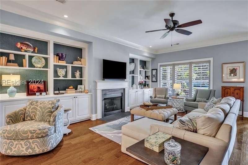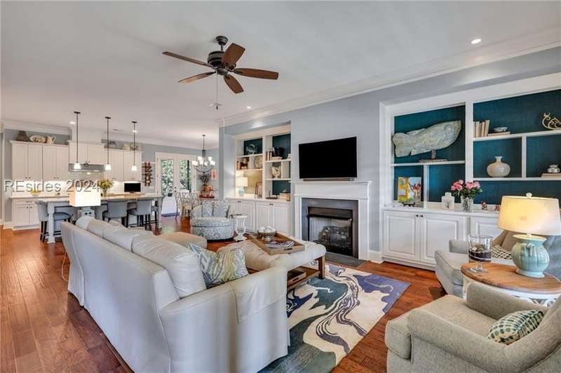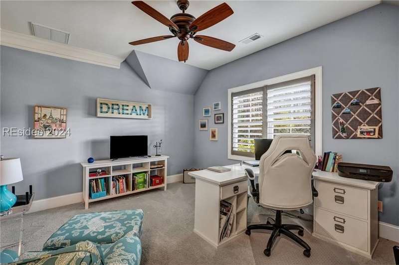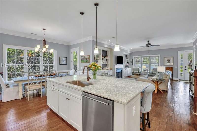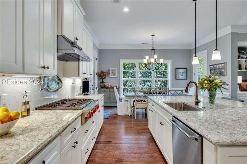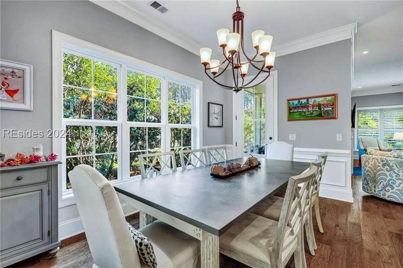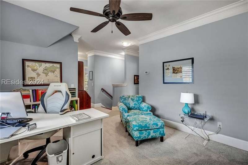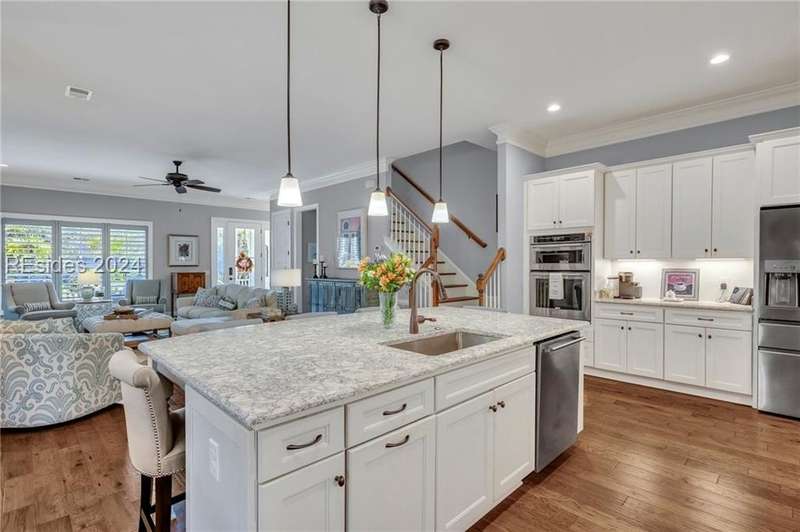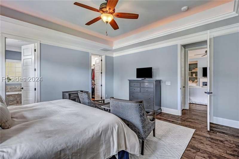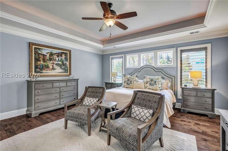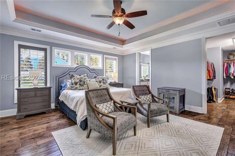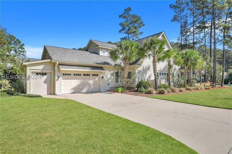 One of the most iconic homes with “THE” wrap-around front porch is for sale in Hampton Lake! Beautiful Great room with built-ins and fireplace. Gourmet kitchen has 5 seat island, white cabinets, granite, wine cooler, and huge walk-in pantry. Dining area. French door office with coffered ceiling. Peaceful primary bedroom suite and gorgeous bathroom. Upstairs has a large loft, huge ensuite bedroom with walk in shower. Two other large bedrooms, 3rd bathroom, and a flex room. Landing area. Screened in lanai with ceiling fan leading to a fenced in backyard. Golf cart garage too! Lot extends past the fence and into the woods. This one is special!