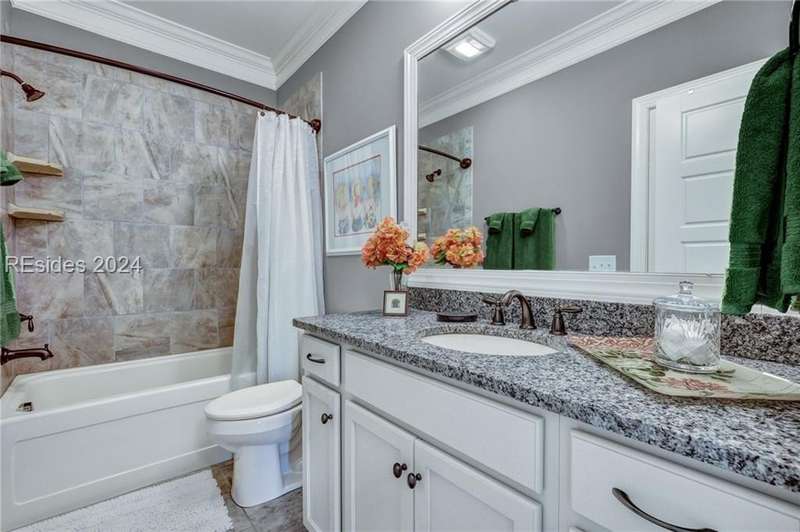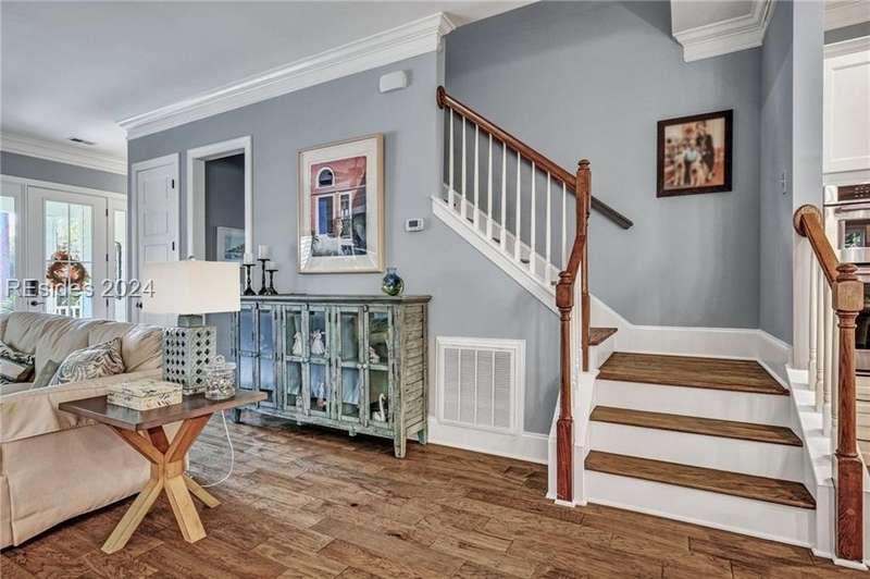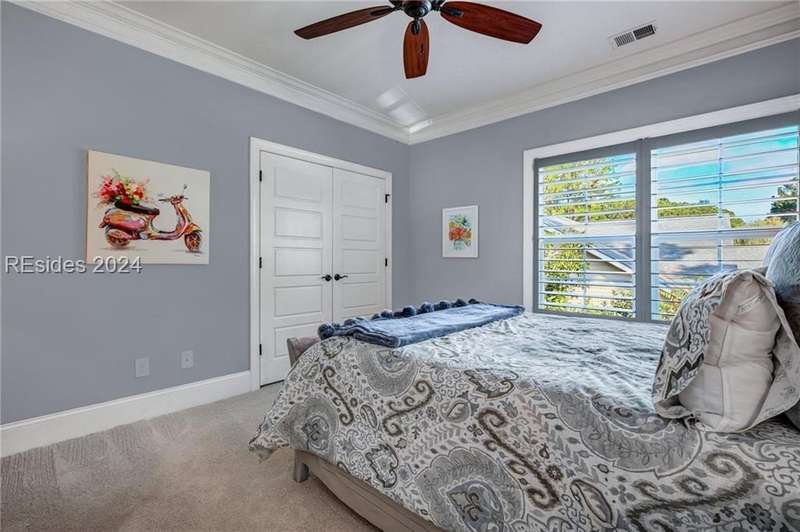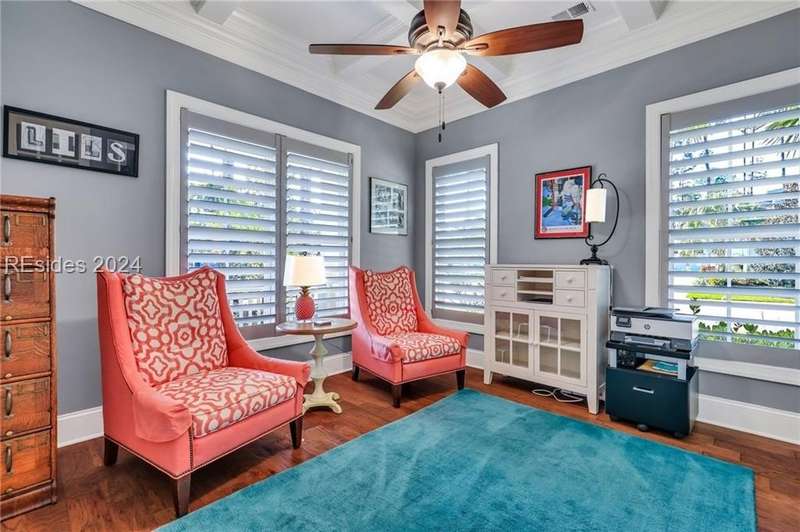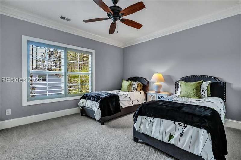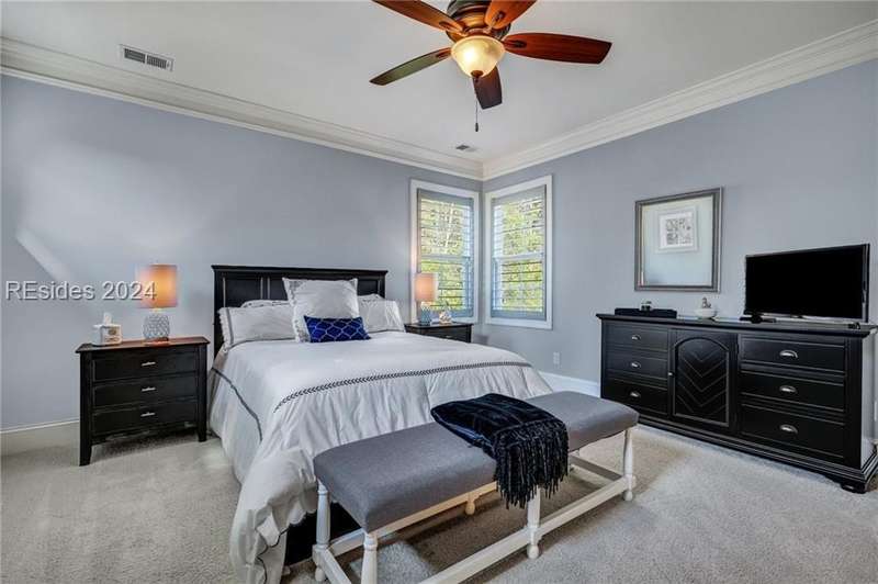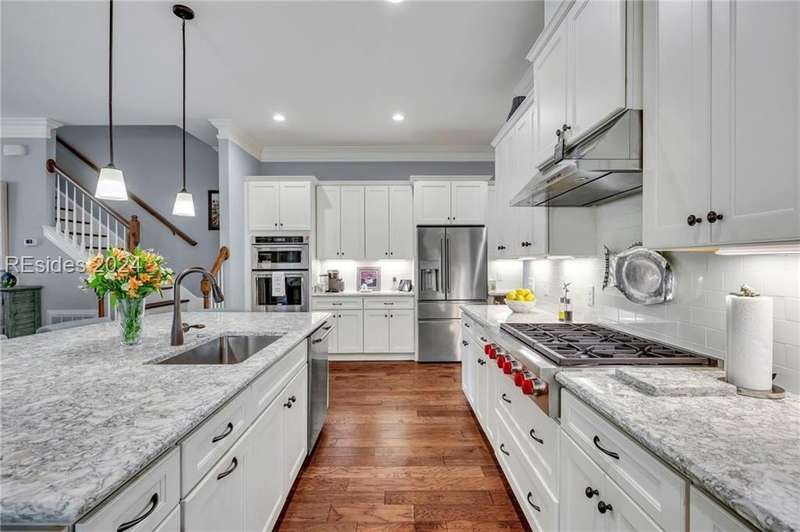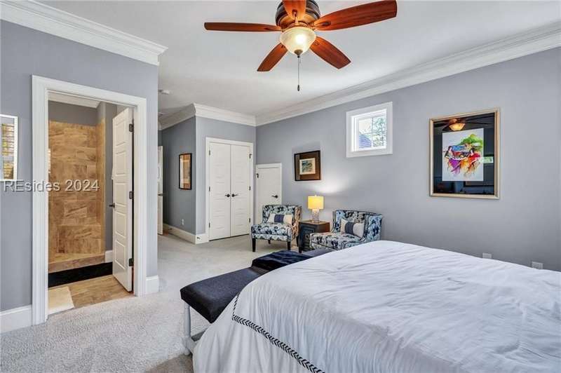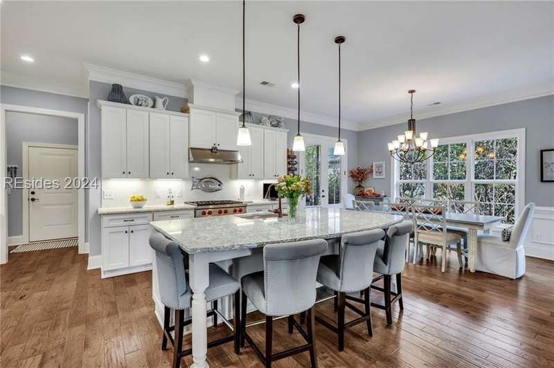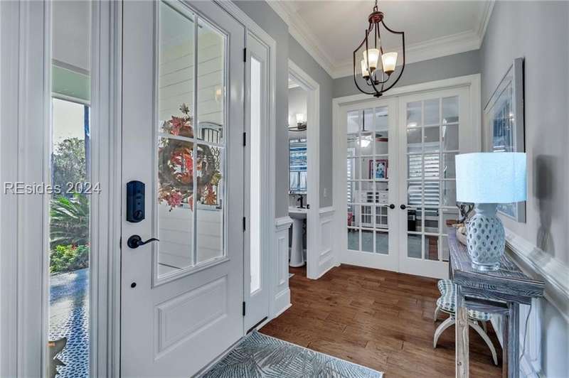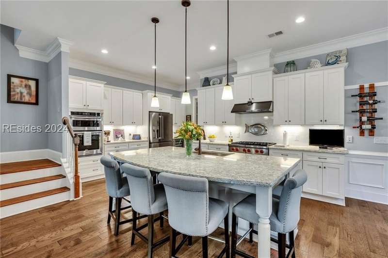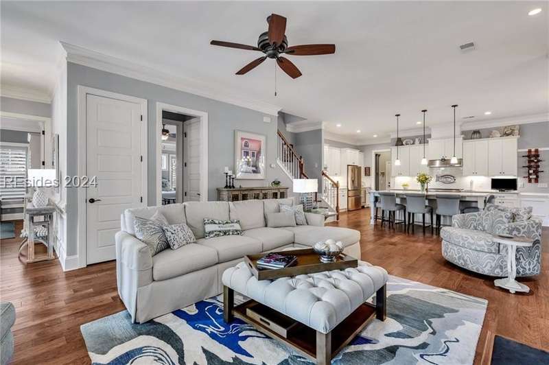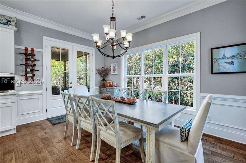 One of the most iconic homes with “THE” wrap-around front porch is for sale in Hampton Lake! Beautiful Great room with built-ins and fireplace. Gourmet kitchen has 5 seat island, white cabinets, granite, wine cooler, and huge walk-in pantry. Dining area. French door office with coffered ceiling. Peaceful primary bedroom suite and gorgeous bathroom. Upstairs has a large loft, huge ensuite bedroom with walk in shower. Two other large bedrooms, 3rd bathroom, and a flex room. Landing area. Screened in lanai with ceiling fan leading to a fenced in backyard. Golf cart garage too! Lot extends past the fence and into the woods. This one is special!