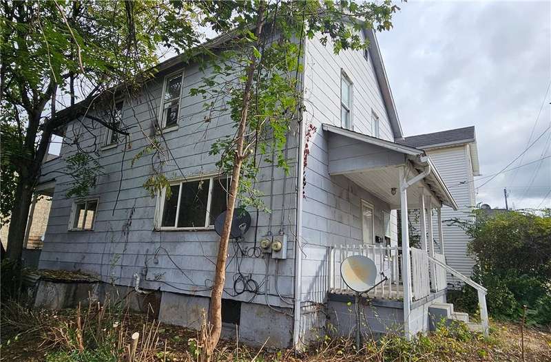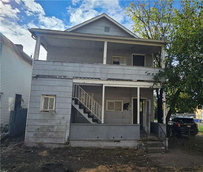 Live on 2nd floor and redo 1st floor for a tenant or relative, friend etc. Recent eviction of 1st floor tenant and unit needs a complete rehab! 2nd floor vacant but could be rented quickly with some newer carpeting... All separate utilities for both units. Updated furnace and hot watertanks. 2nd floor electric heat. 2-100 amp electrical boxes. Parking in alley or on street. Fenced back yard. Rents projected afterrehab.