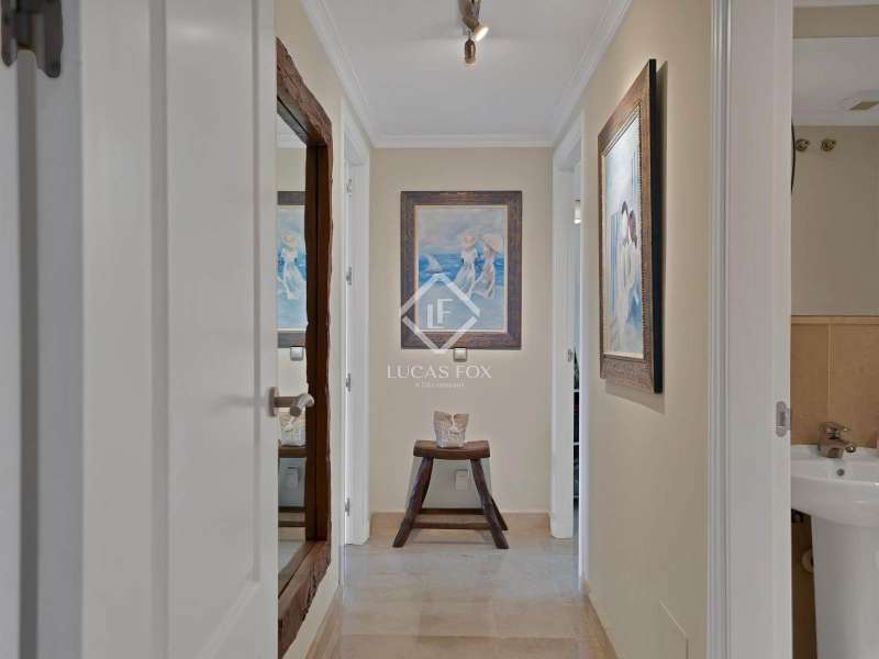 This beautiful and spacious property, has a total surface area of 159 m², located in the gated community of Marqués de Atalaya, it has views over the golf course to the south-west, which is the perfect orientation to benefit from the Mediterranean weather and sunshine. On entering the apartment, we find a spacious, bright living room with direct access to a covered terrace with golf views. There is also a fully fitted kitchen and a guest toilet. Both bedrooms have an en-suite bathrooms with fitted wardrobes, proving plenty of space for personal belongings and storage. The apartment is also provided of two underground parking spaces and a storage room. This is a great opportunity to buy a ready-to-go-in property, well located as it is close to all the amenities and just minutes away by car from San Pedro, Benahavís, Estepona and Marbella. Please contact us for further information.