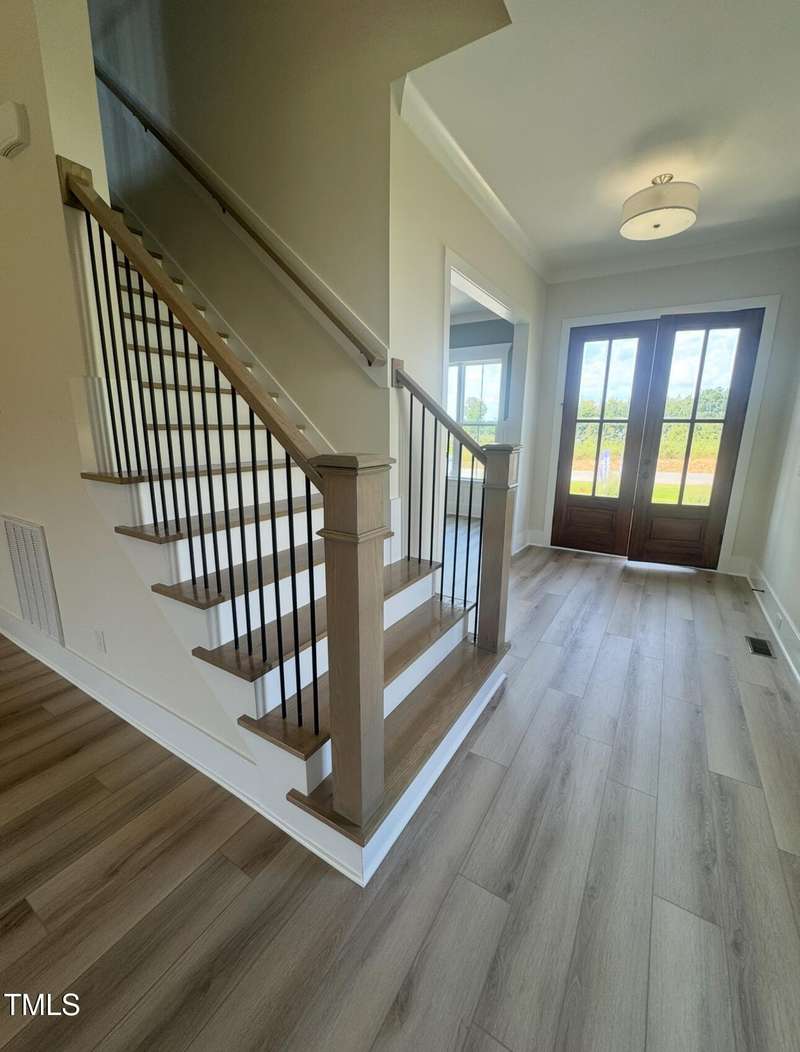 Welcome to this stunning NEW CONSTRUCTION. Featuring four spacious bedrooms, four full baths, and two half baths, this residence is thoughtfully designed for today's lifestyle. The gourmet kitchen is a culinary enthusiast's dream, equipped with stainless steel appliances, a gas cooktop, and a large single-level island. The generous walk-in pantry provides ample storage, making meal prep a breeze. Enjoy memorable meals in the formal dining room, complete with a butler's pantry for added convenience, or unwind in the inviting family room, where a cozy fireplace creates the perfect atmosphere for gathering and relaxation. The first-floor guest suite ensures privacy for visitors, while the second floor showcases a luxurious owner's suite featuring a spa-like bath with a walk-in shower, a soothing soaker tub, and a massive walk-in closet. Two additional bedrooms and a large flex room-ideal for a home office, gym, or play area-offer versatility for your needs. A convenient laundry room on the second floor adds to the home's practicality. Ascend to the finished third floor, complete with a half bath, offering endless possibilities for entertainment or relaxation. Outside, the screened rear porch overlooks 0.69 acres of beautiful private yard. Irrigation System front yard. Conveniently located just 8 minutes from the new 540 Old Stage exit and only 25 minutes from downtown Raleigh, you'll enjoy easy access to city life while benefiting from no city taxes. Don't miss your chance to call this exceptional property home!