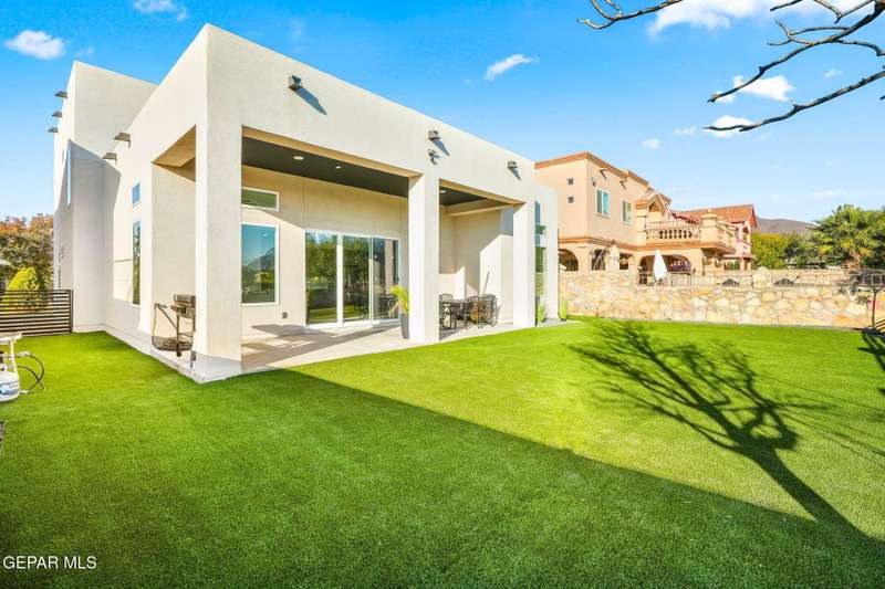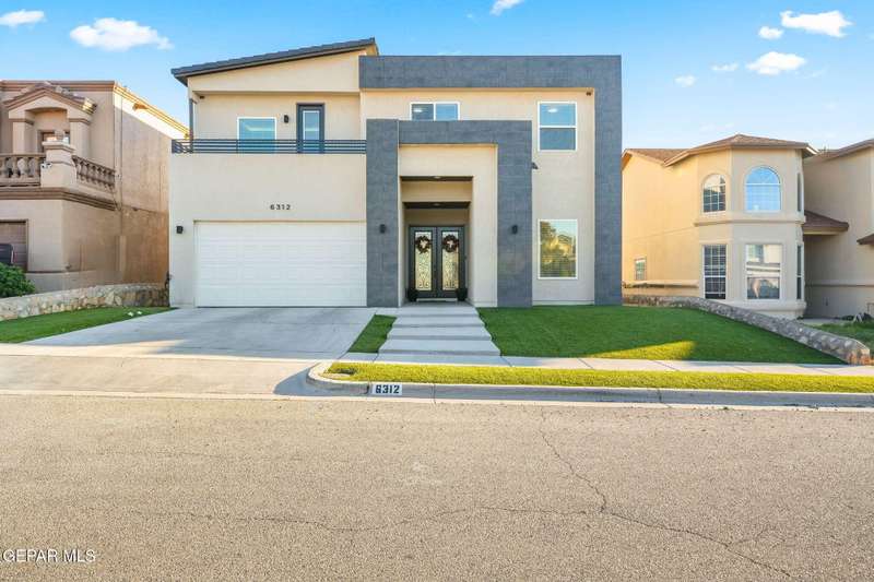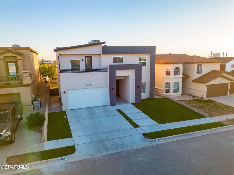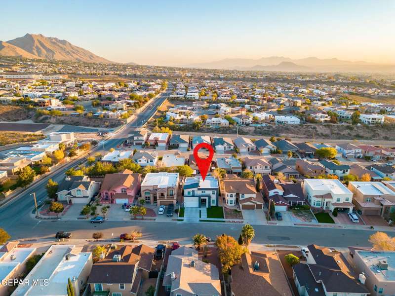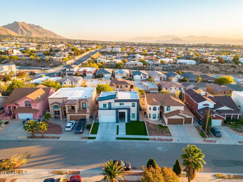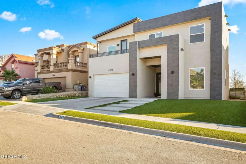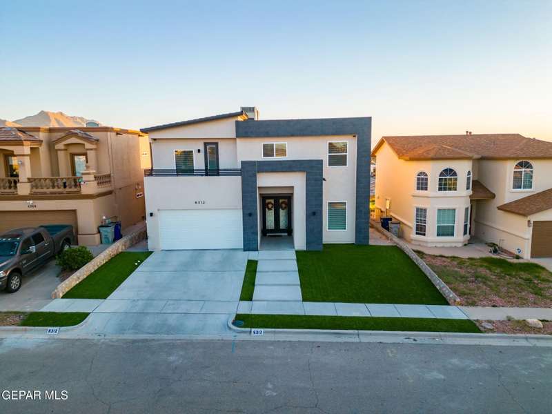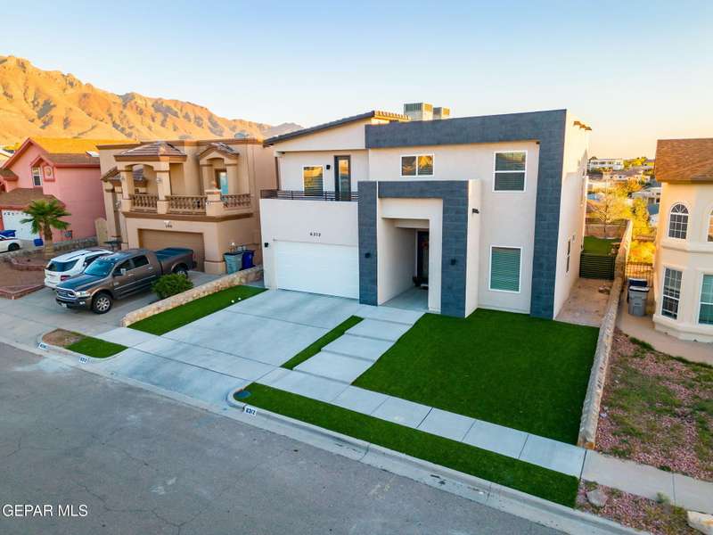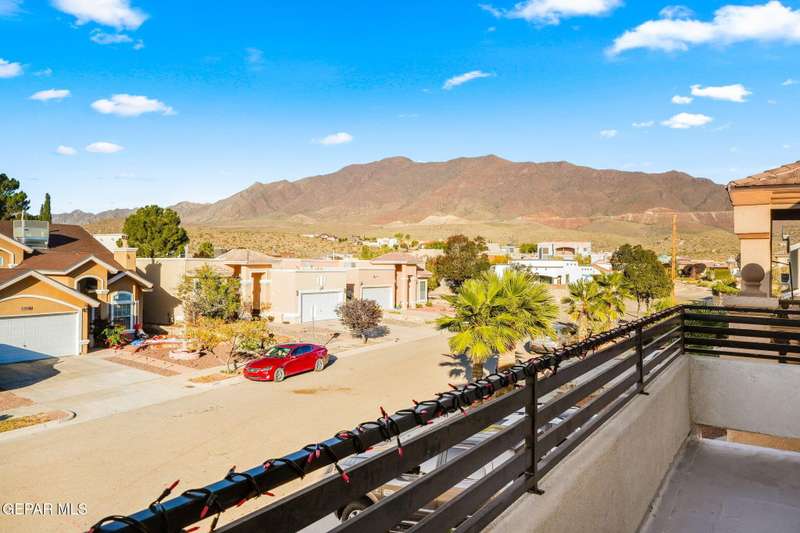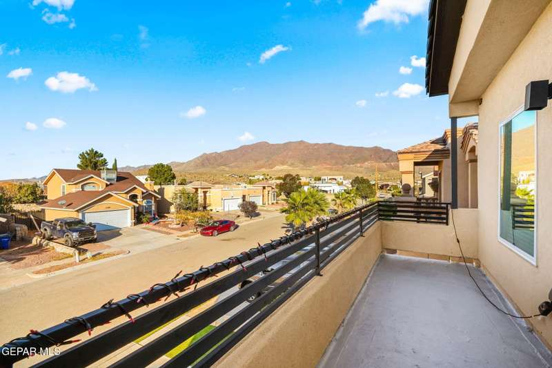 Welcome to your dream home! This contemporary gem, built just six months ago, features 4 spacious bedrooms and 3.5 stylish bathrooms. The open-concept living, dining, and kitchen areas are designed for both comfort and entertainment, boasting high ceilings and ample natural light. The enormous kitchen is a chef's delight, complete with a large island and all stainless steel appliances included. Enjoy beautiful porcelain flooring downstairs, while the upper level features elegant laminated flooring. Step outside to a generous back patio, perfect for gatherings, with stunning views of the Franklin Mountains. The front landscaping is already in place, enhancing the home's curb appeal. With many more features to discover, this property offers a perfect blend of modern living and serene surroundings. Don't miss the chance to make this incredible home yours-schedule a showing today!