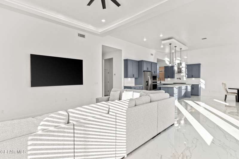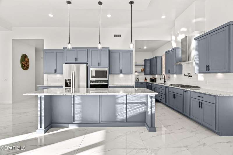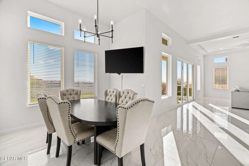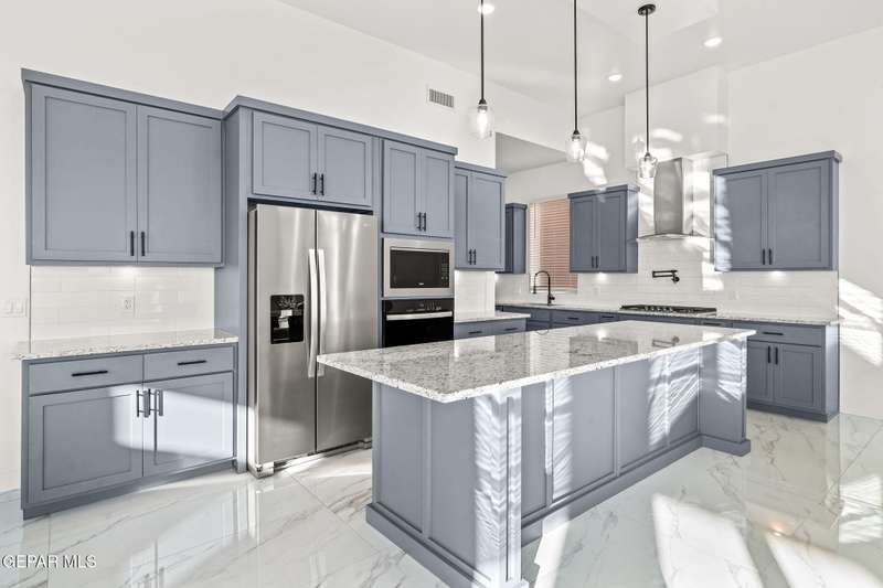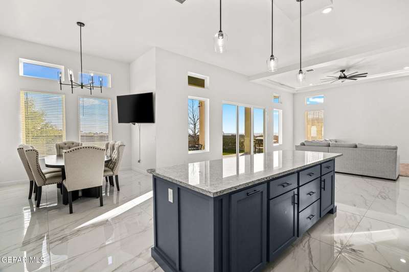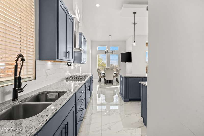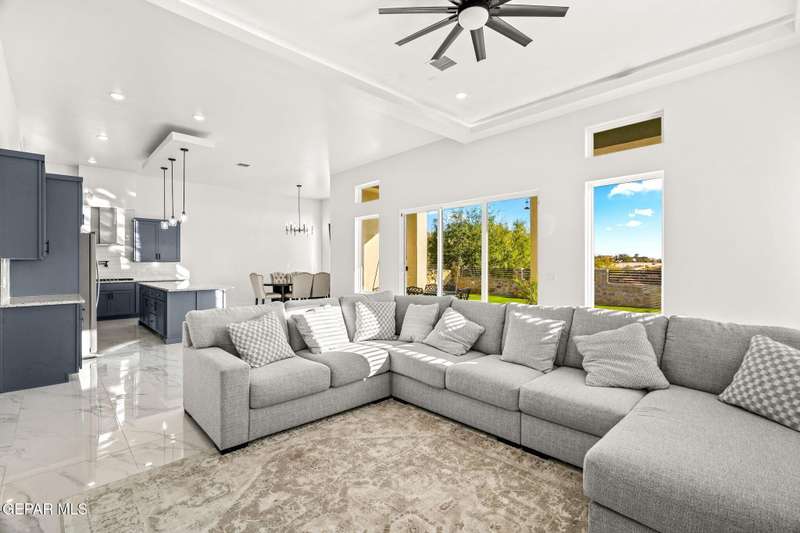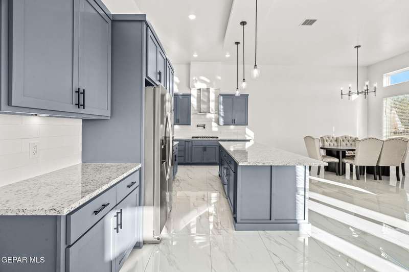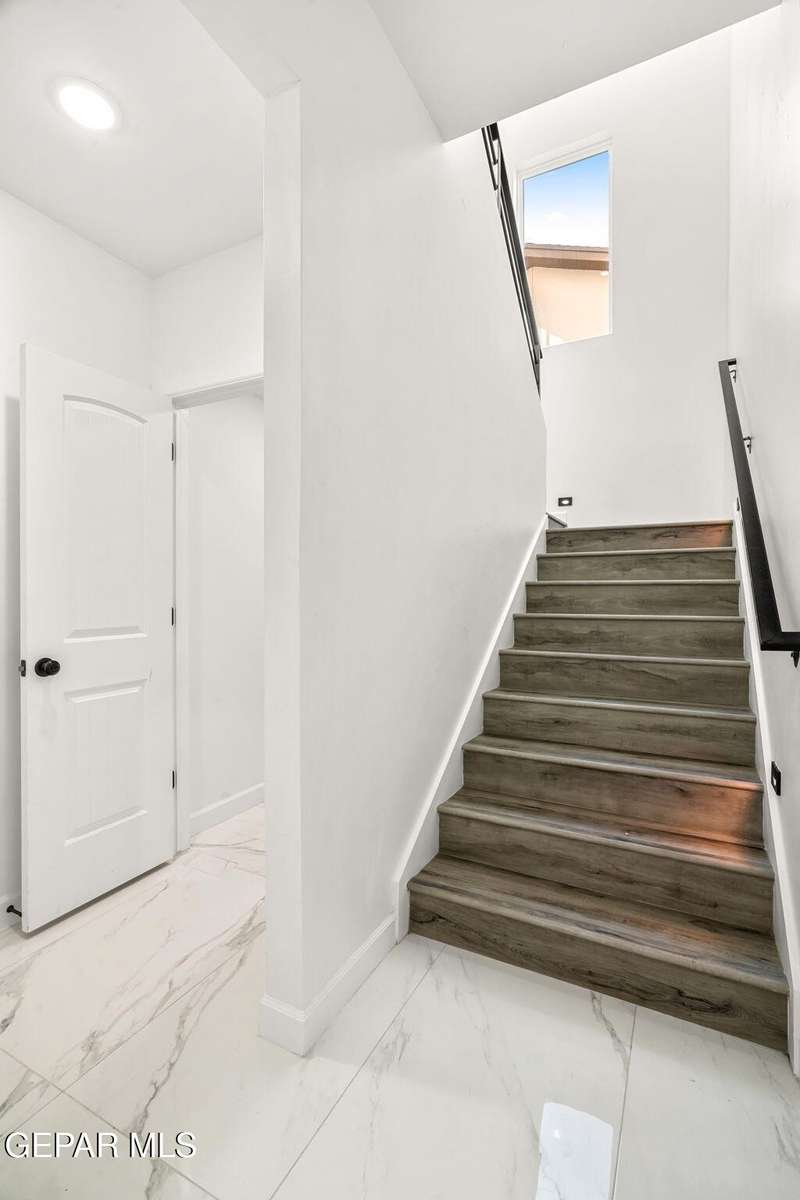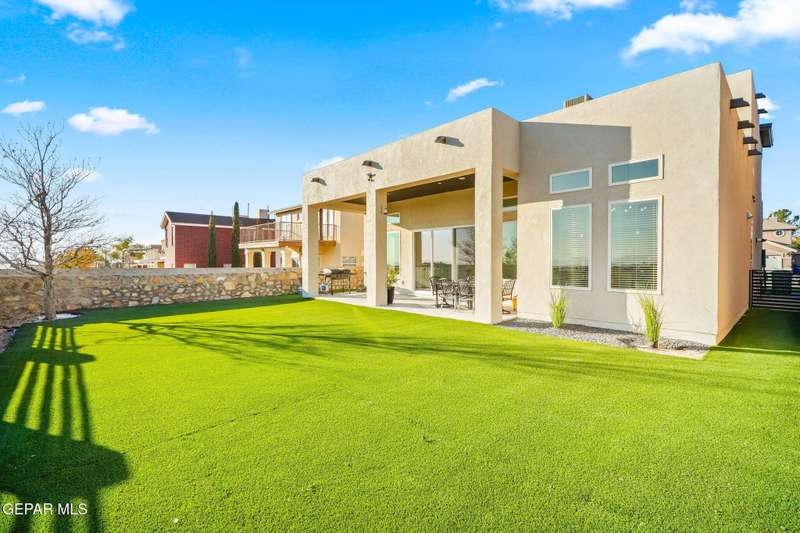 Welcome to your dream home! This contemporary gem, built just six months ago, features 4 spacious bedrooms and 3.5 stylish bathrooms. The open-concept living, dining, and kitchen areas are designed for both comfort and entertainment, boasting high ceilings and ample natural light. The enormous kitchen is a chef's delight, complete with a large island and all stainless steel appliances included. Enjoy beautiful porcelain flooring downstairs, while the upper level features elegant laminated flooring. Step outside to a generous back patio, perfect for gatherings, with stunning views of the Franklin Mountains. The front landscaping is already in place, enhancing the home's curb appeal. With many more features to discover, this property offers a perfect blend of modern living and serene surroundings. Don't miss the chance to make this incredible home yours-schedule a showing today!