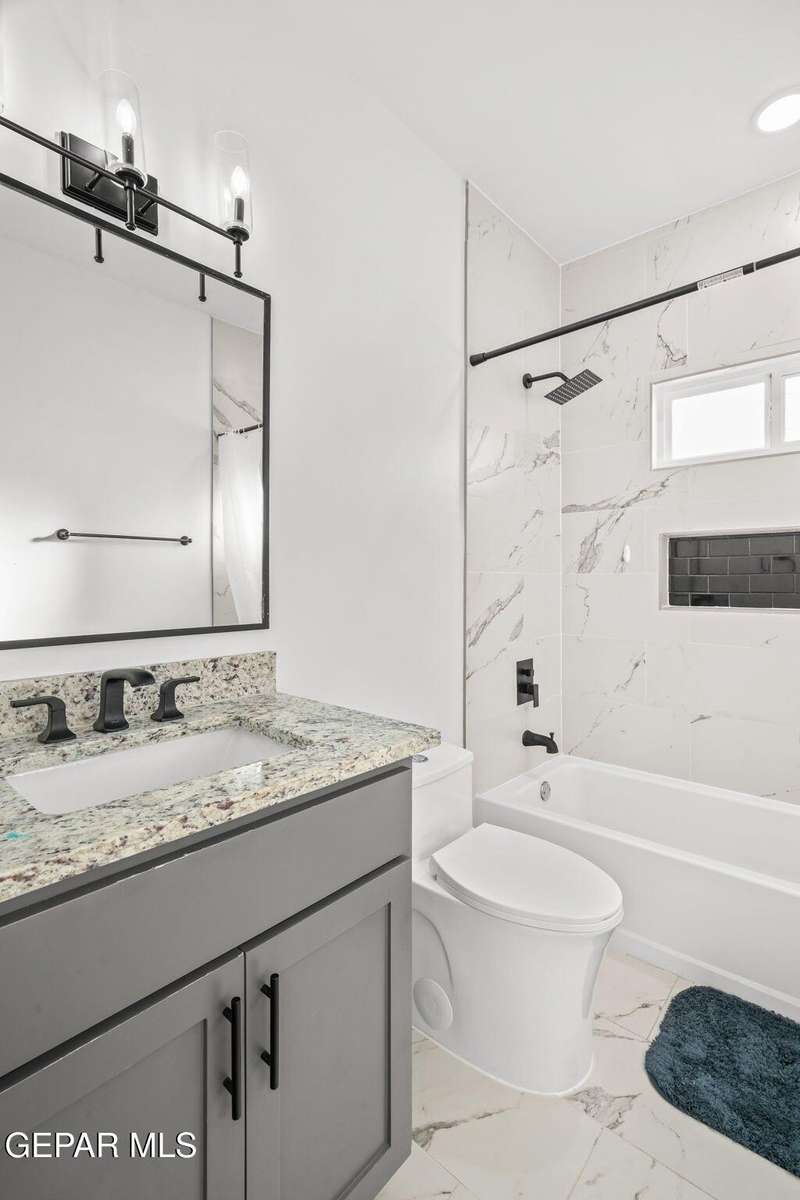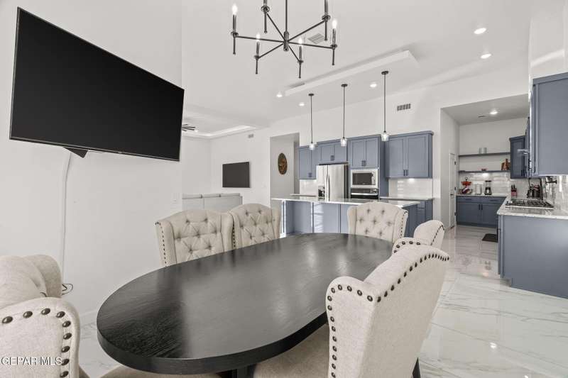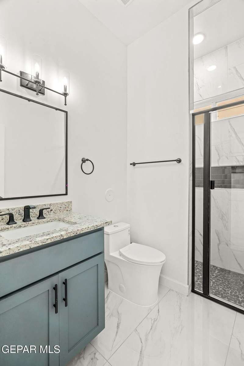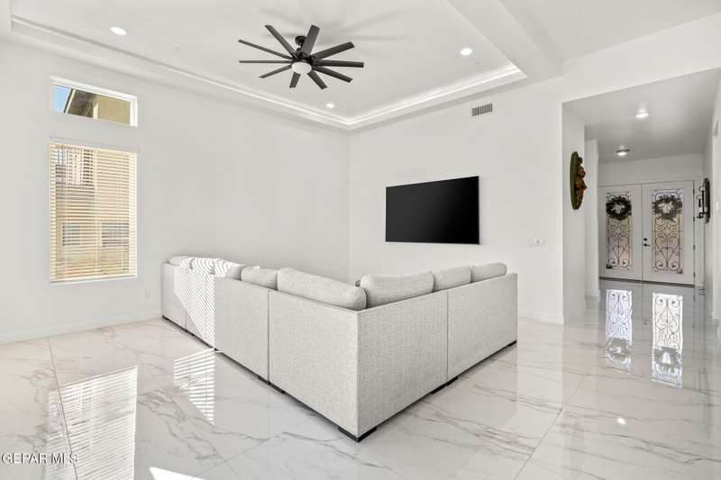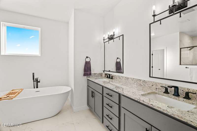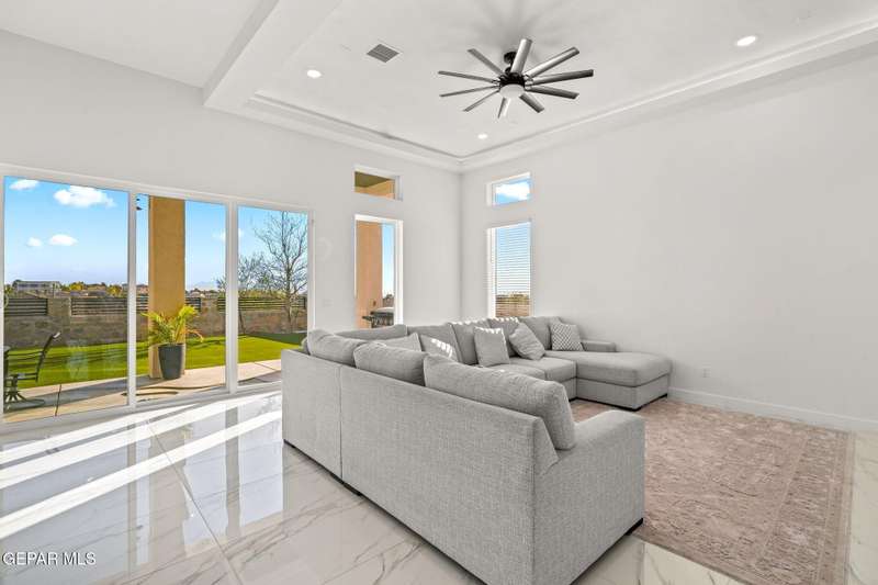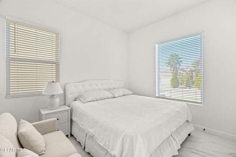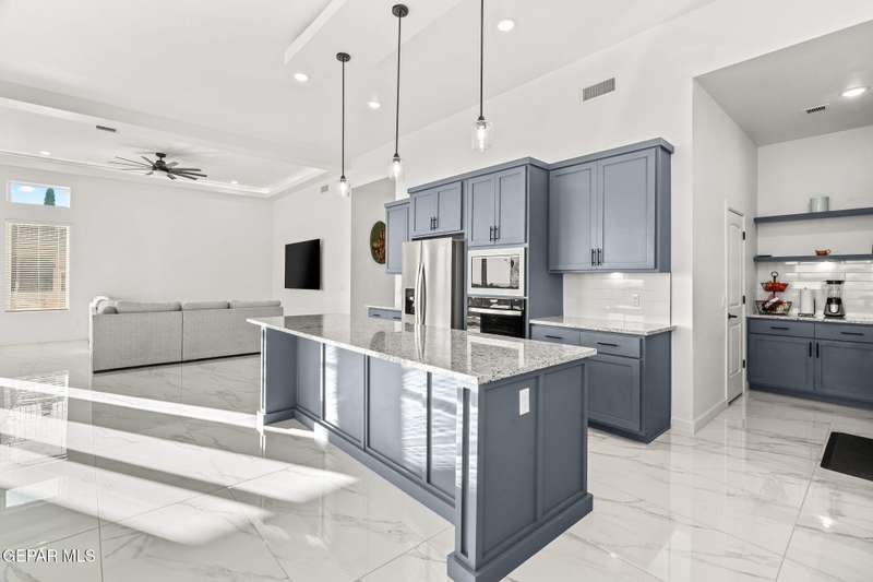 Welcome to your dream home! This contemporary gem, built just six months ago, features 4 spacious bedrooms and 3.5 stylish bathrooms. The open-concept living, dining, and kitchen areas are designed for both comfort and entertainment, boasting high ceilings and ample natural light. The enormous kitchen is a chef's delight, complete with a large island and all stainless steel appliances included. Enjoy beautiful porcelain flooring downstairs, while the upper level features elegant laminated flooring. Step outside to a generous back patio, perfect for gatherings, with stunning views of the Franklin Mountains. The front landscaping is already in place, enhancing the home's curb appeal. With many more features to discover, this property offers a perfect blend of modern living and serene surroundings. Don't miss the chance to make this incredible home yours-schedule a showing today!