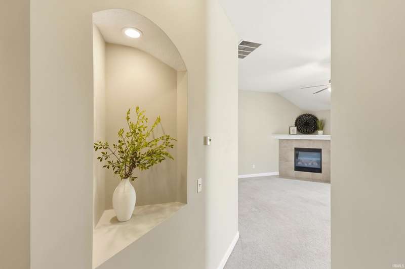 NEW PRICE!! OPEN HOUSE Sun 11/16 2:00-4:00! Welcome to this charming 3-bedroom, 2-bathroom ranch in the Villas of Stratford Forest. This home is ideally located; Close to tons of local amenities, within the NWA school district, and near neighborhood ponds and walking paths. With 1,342 sq. ft. of living space, this split-bedroom floor plan offers both comfort and functionality. Upon entering, you'll notice 10-ft ceilings that add a touch of character and spaciousness. The living room includes a cozy gas log fireplace and flows seamlessly into the eat-in kitchen. In the kitchen, you'll notice beautiful upgraded cabinets that compliment the tall ceilings. The kitchen comes fully equipped with appliances, including a newer stainless steel refrigerator and dishwasher. Step outside to the back patio, where a SunSetter awning creates the perfect spot for morning coffee or evening relaxation. The primary bedroom has an en suite bathroom, along with two walk-in closets. The other two bedrooms provide great space for a family, guests, or a home office. A second full bathroom is conveniently located between the two. The 2.5-car garage provides plenty of storage space, pegboard for your convenience, along with attic access. Brand new Air Conditioner (2025) with a 10 year transferrable warranty recently installed! Other newer updates include: ceiling fans, new blinds on all windows, fresh landscaping, and pegboard in garage. Newer carpet and paint from 2023. This well-maintained home is ready for its next owner!