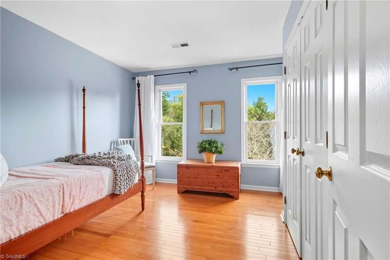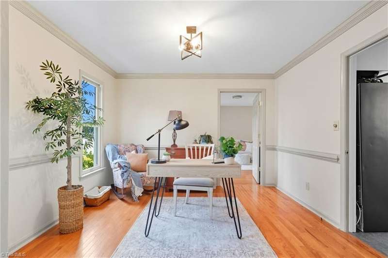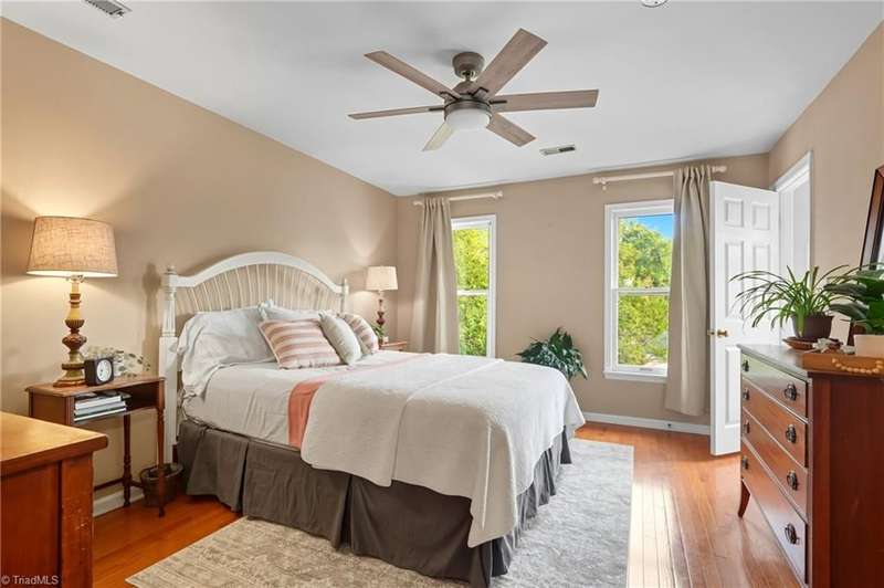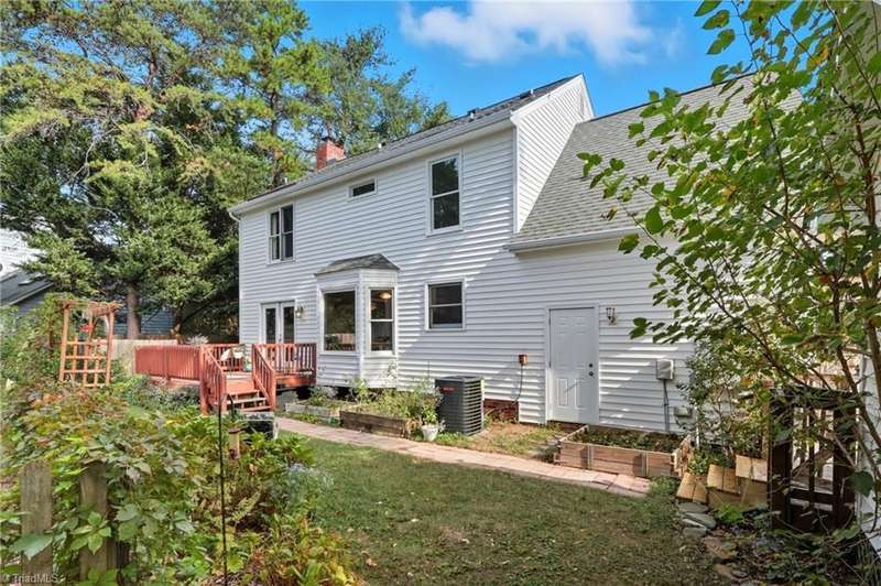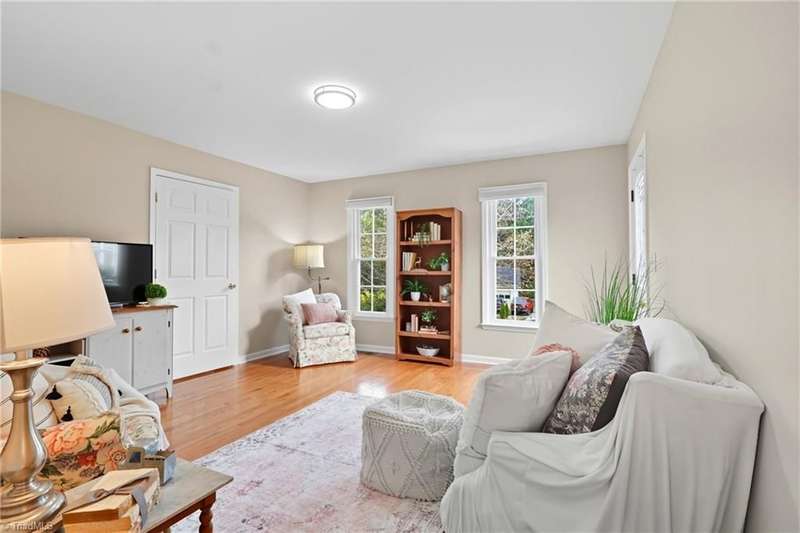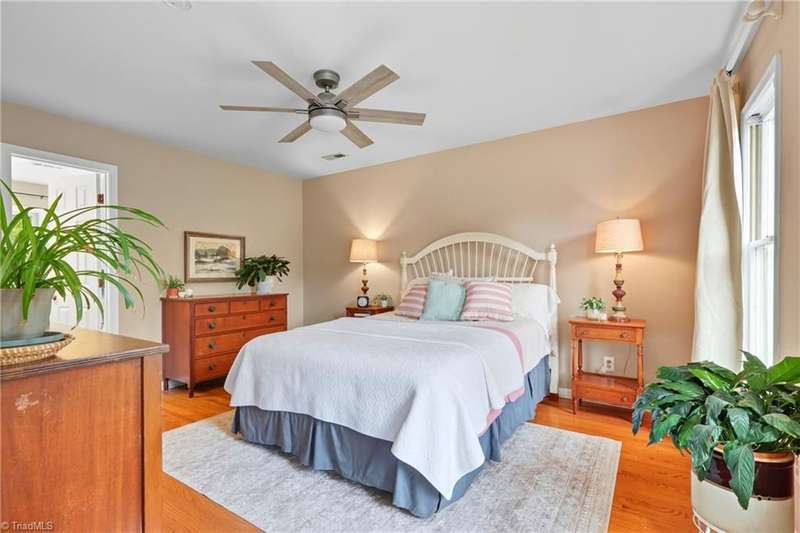 Beautifully maintained home on a beautiful corner lot in the sought-after Adams Farm subdivision. This home features a native pollinator garden and numerous updates including updated vinyl siding, new HVAC, new water heater, and hardwood floors throughout. Enjoy a freshly painted interior with excellent natural light. An updated kitchen boasts 42? cabinets, granite countertops, stainless steel appliances, pantry, and a bright breakfast area with a large bay window. The L/R or.den features a beautiful cozy wood burning FP. The converted garage offers a main-level, handicap-accessible bedroom with full bath and ramp access?perfect for guests or multigenerational living or lg office. Upstairs, a versatile 5th bedroom could serve as an office. The spacious & private primary suite is separated from the other bedrooms for added tranquility. Conveniently located near parks, shops, and major routes, this home blends comfort, functionality, & charm. Move-in ready & full of thoughtful features!