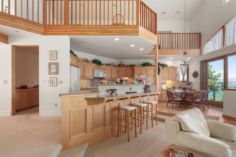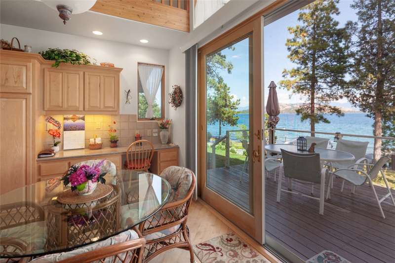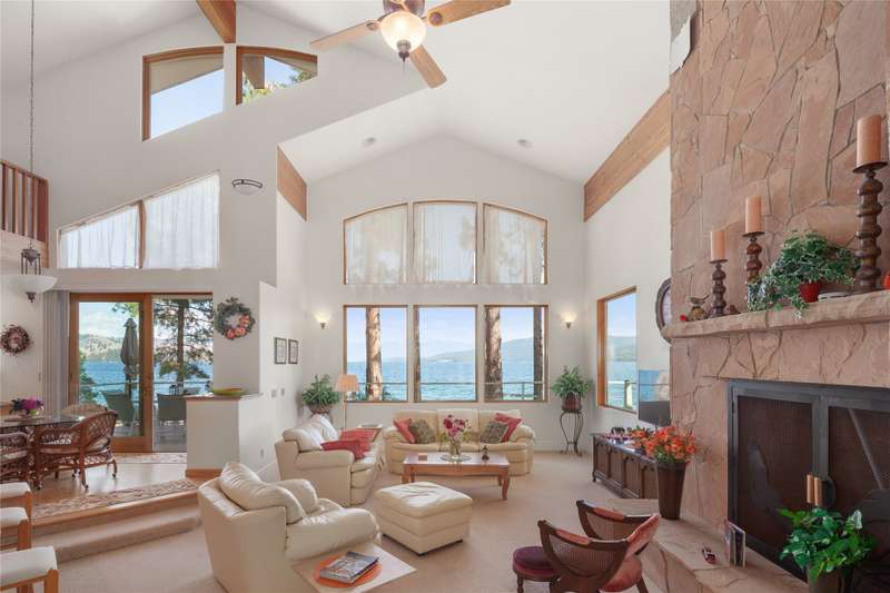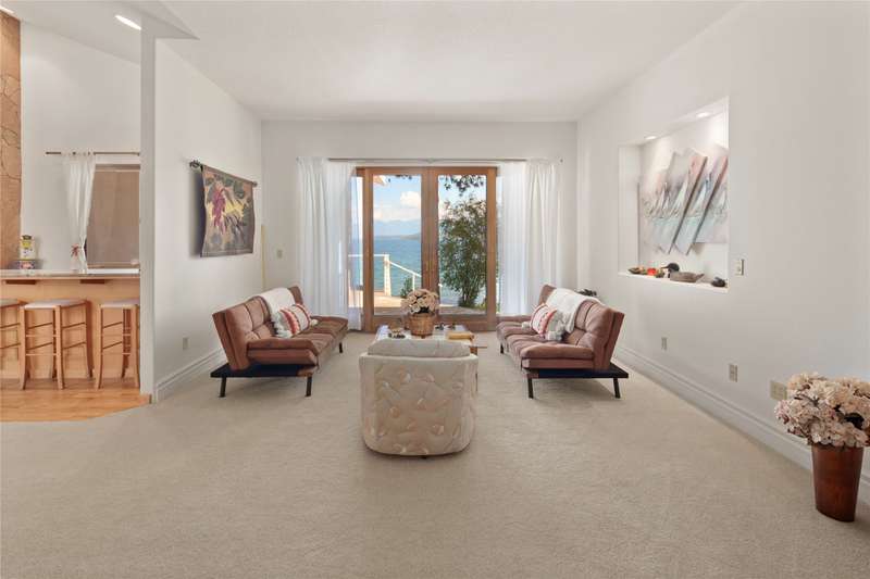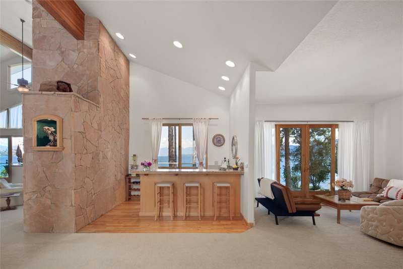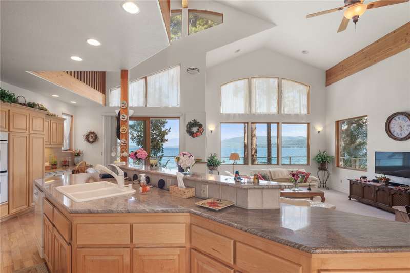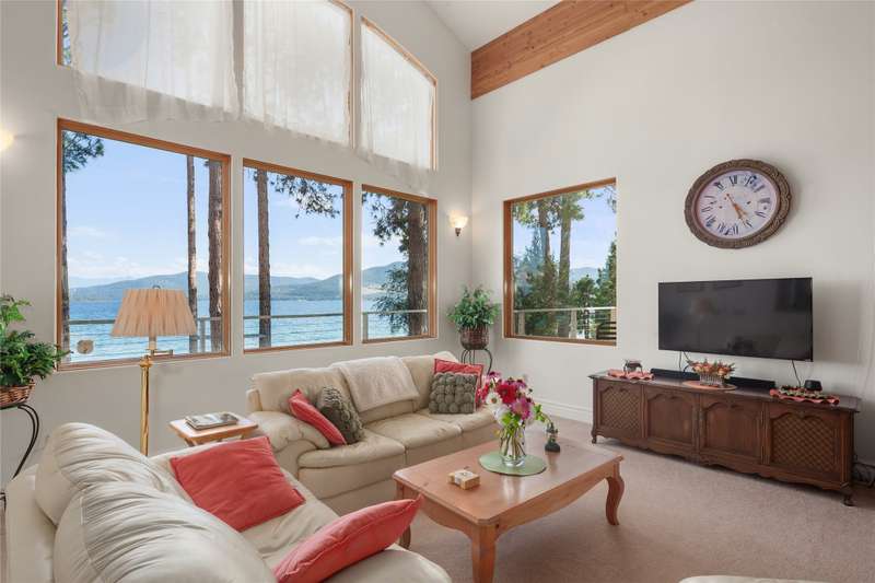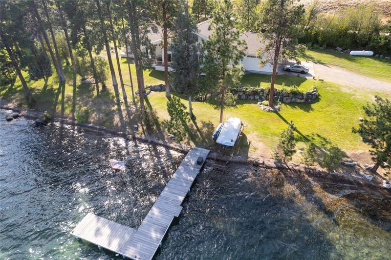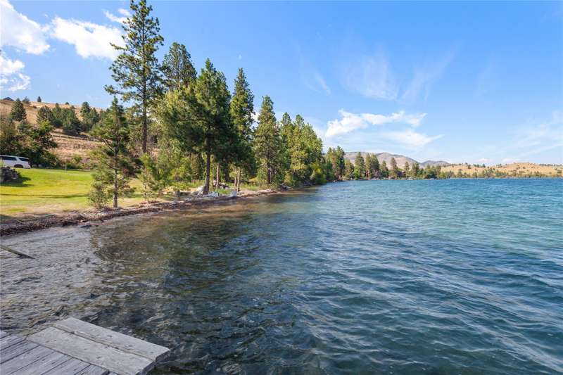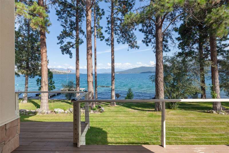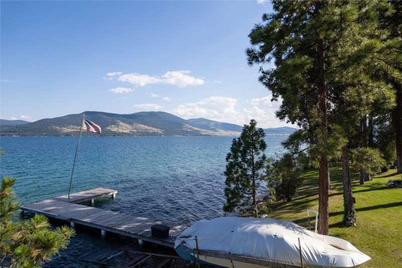Welcome to your dream waterfront retreat! This immaculate 4,678 sq. ft. custom home is perfectly positioned on 2.2 gently sloped acres with 876' of private Flathead Lake frontage-offering unparalleled views of Wildhorse, Cromwell, and Melita Islands, as well as the majestic Mission Mountains. Step inside to discover 4 spacious bedrooms and 3.5 bathrooms, with ensuite baths in every bedroom, vaulted ceilings, radiant in-floor heating, and a wall of windows that flood the open-concept living spaces with natural light. The chef's kitchen is appointed w/ custom maple cabinetry, granite countertops, and flows effortlessly into both the formal living and family rooms - complete with a cozy wood and gas fireplace, wet bar, and multiple entertaining areas. The elegant master suite features a jacuzzi tub, bidet, and private deck access. A custom spiral staircase leads to a second-story room currently used as a game and entertainment area, and is plumbed for an additional bath. The home also features an office area, circulating hot water, and an oversized 3-car attached garage. Enjoy lakeside living at its best from the expansive deck or the L-shaped dock with electric boat rail system-ideal for summer adventures and gatherings. The grounds are beautifully landscaped with mature trees, underground sprinklers, and a portion of the property remains undeveloped, offering potential for future expansion or privacy. This home is accessible year-round, making it the perfect legacy property for family getaways, entertaining, or peaceful full-time living.