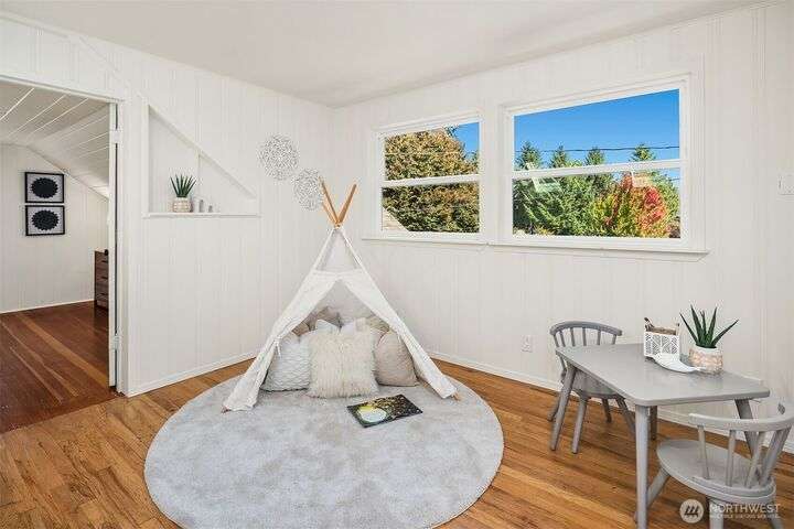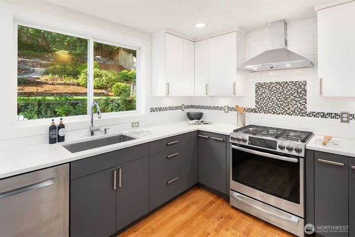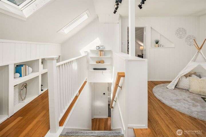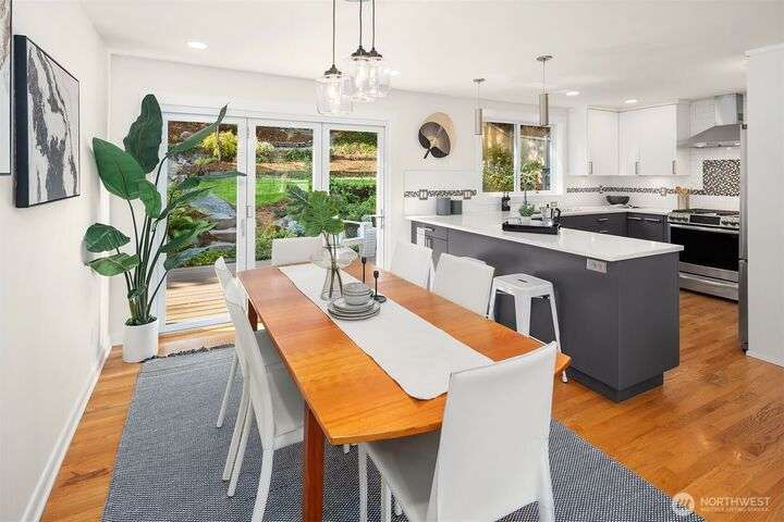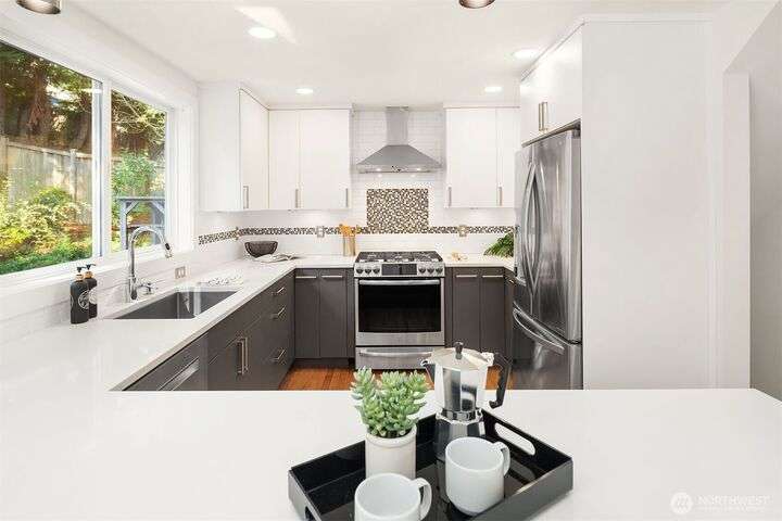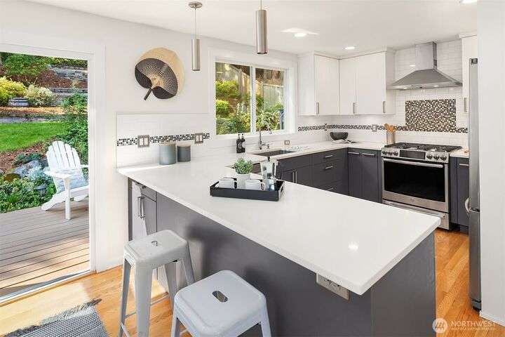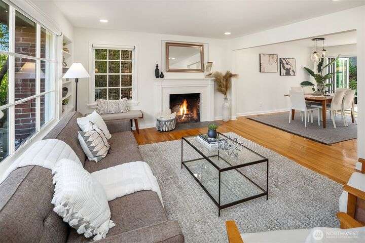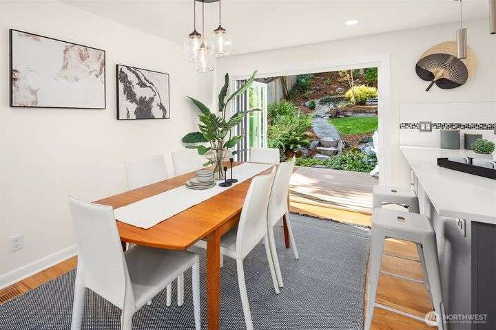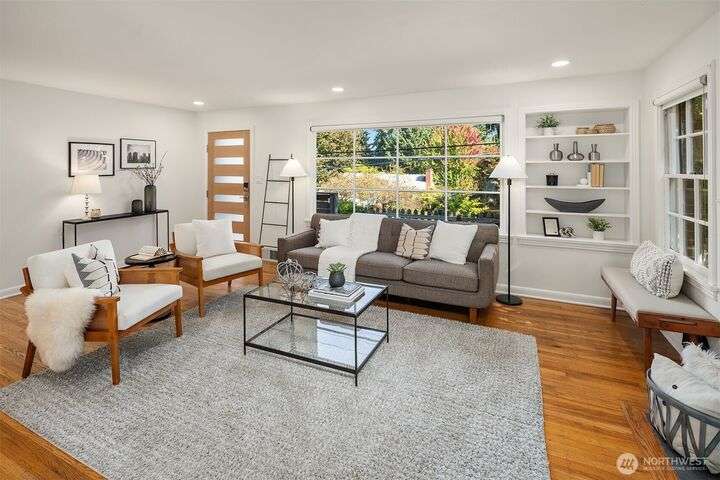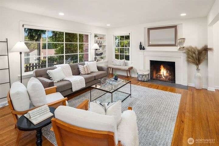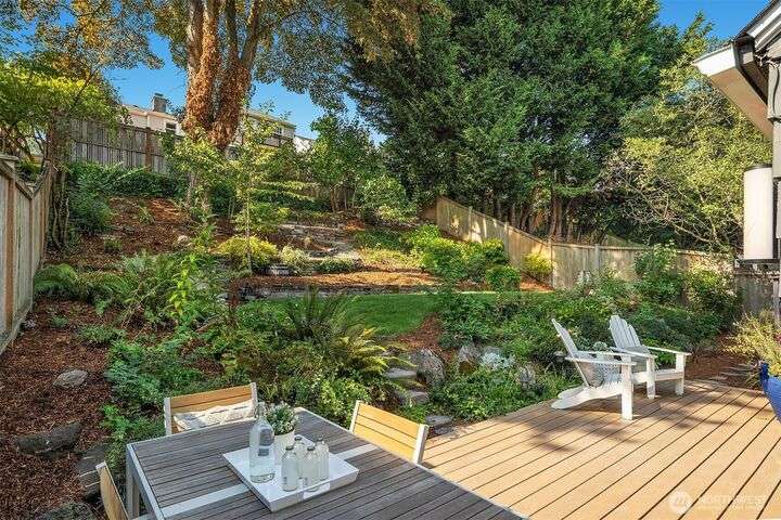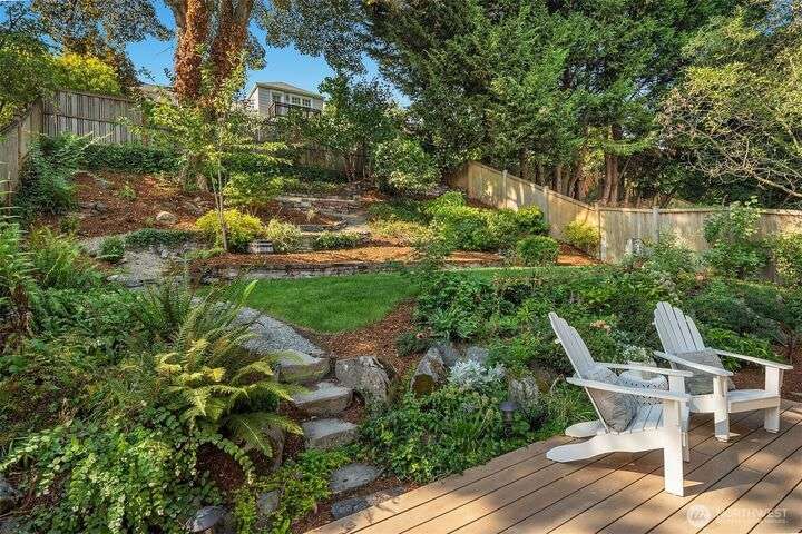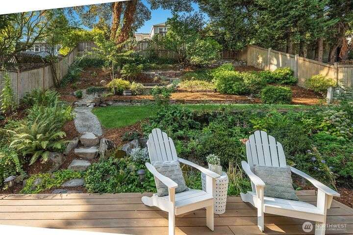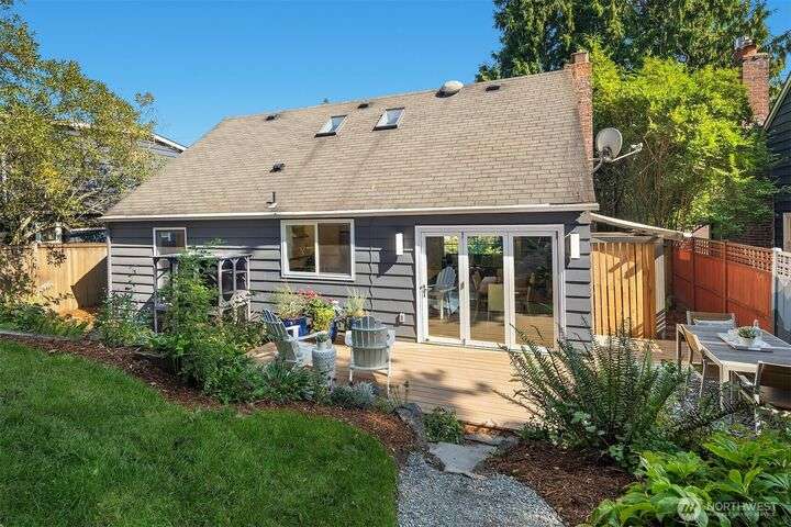 Perched above the street in highly sought-after Ravenna, this bright 4-bed, 2.5-bath home welcomes you with an open layout and seamless indoor/outdoor flow. Bi-fold doors lead to a spacious deck & backyard, ideal for entertaining or relaxing. Two generous bedrooms on the main level including a primary suite with attached 3/4 bath, two additional beds upstairs + flex space for guests, work or play. The remodeled kitchen, dining and living areas connect beautifully, while the lower level features a large rec room, 3rd bathroom, laundry, plenty of storage and garage access. Just blocks from Third Place Books, light rail, parks and top-rated schools. This home blends comfort, convenience and charm in one of Seattle’s most beloved neighborhoods.