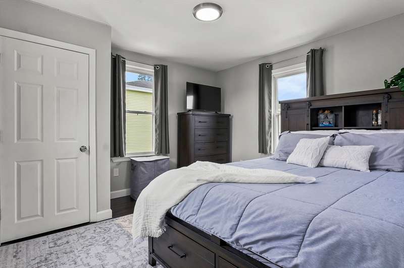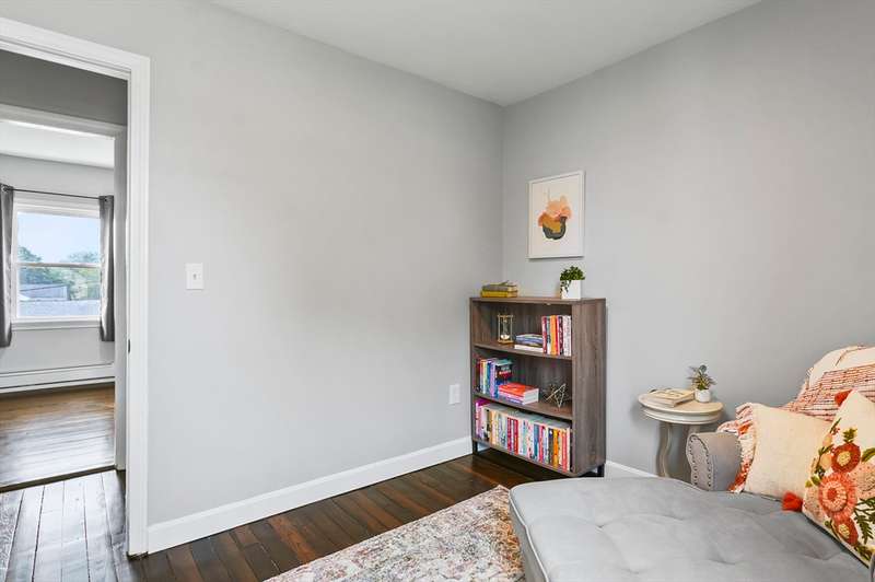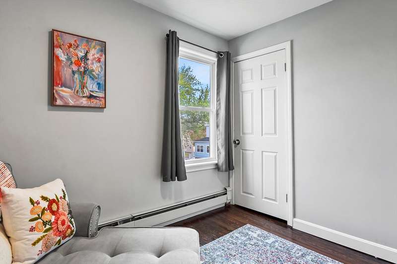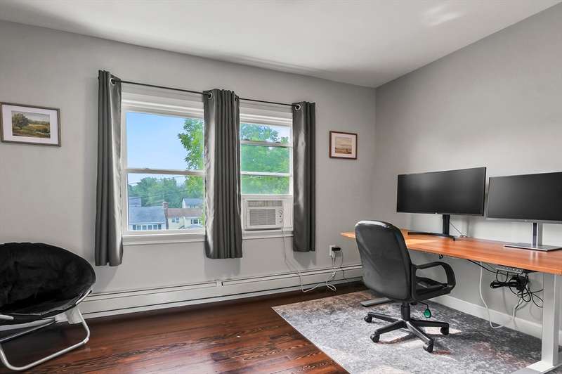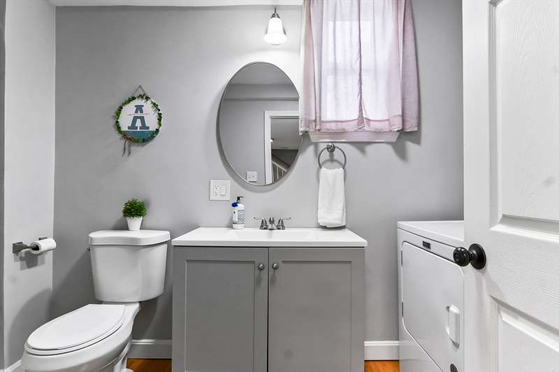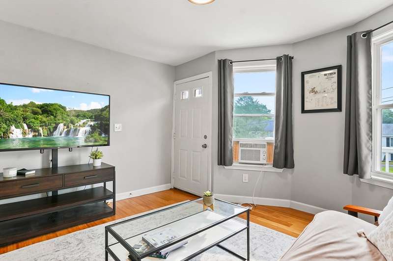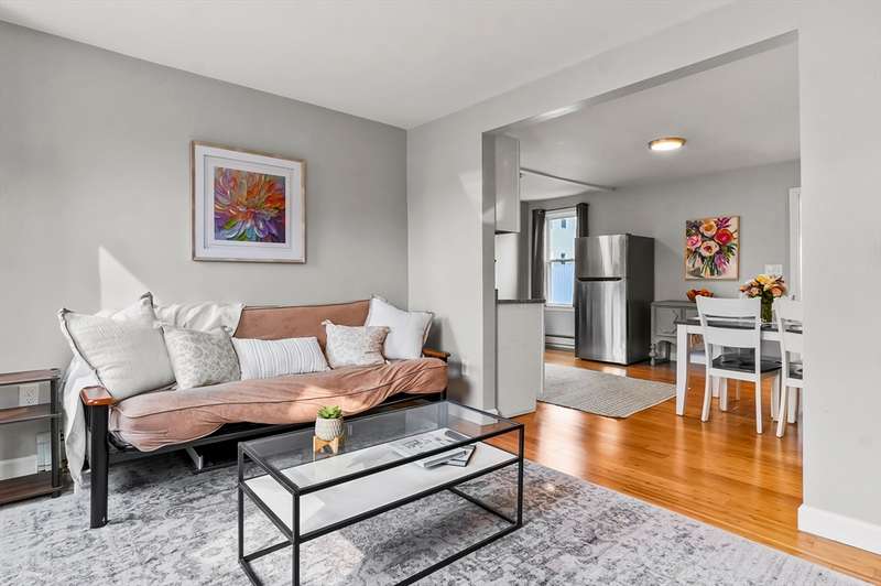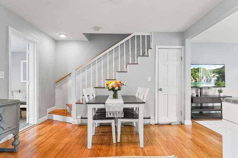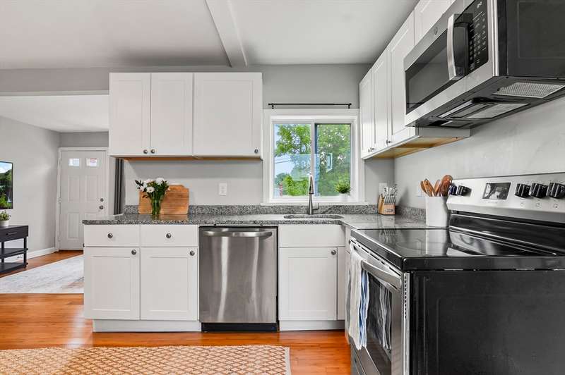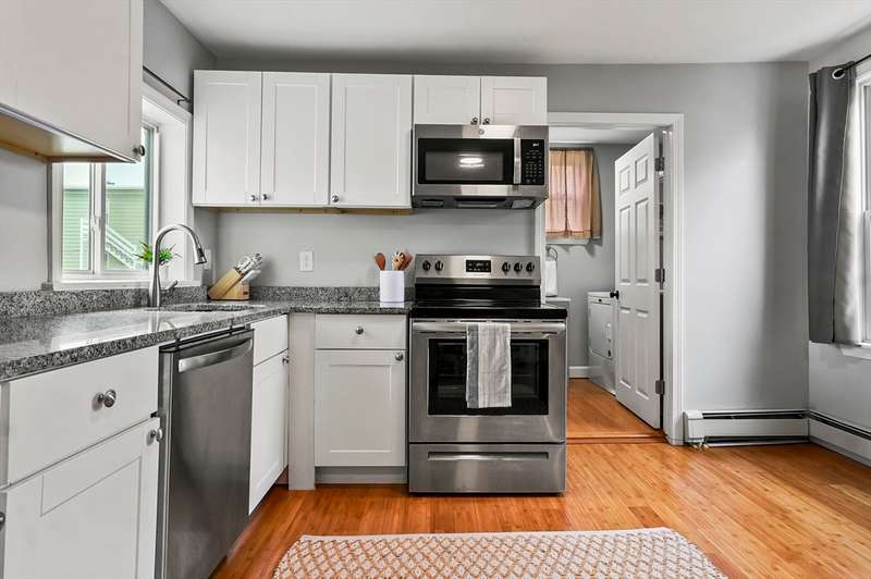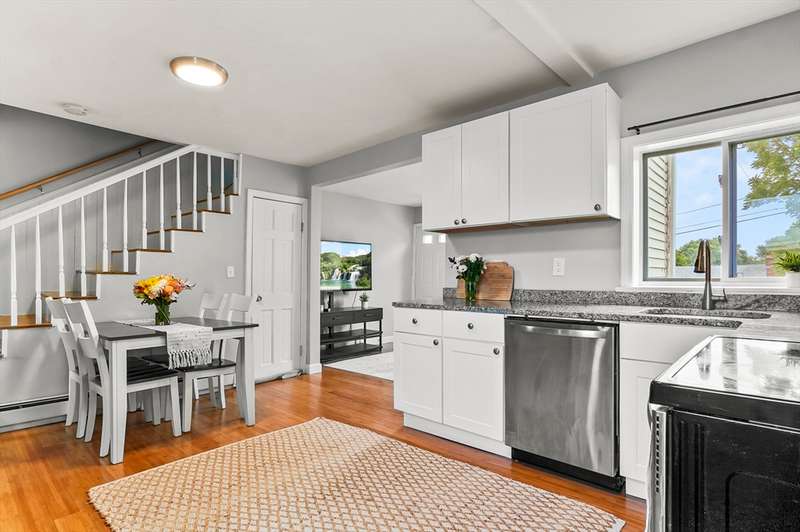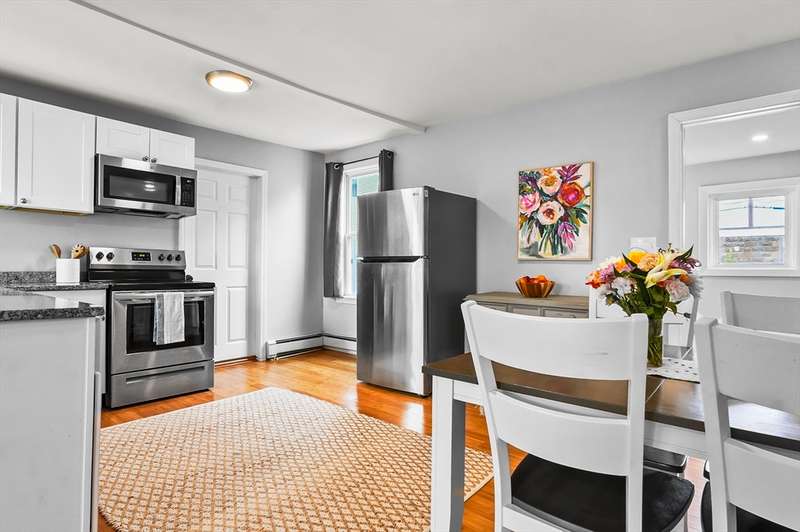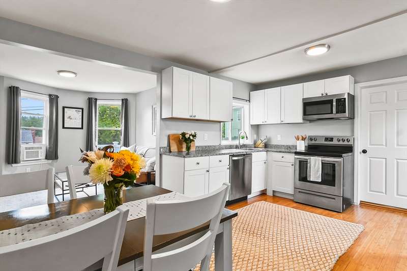Welcome home to this immaculate 3-bedroom, 1-bath Colonial that perfectly blends charm and modern updates! The mudroom entry leads you into an open eat-in kitchen with stainless steel appliances, crisp white cabinetry, and recessed lighting, creating a bright and inviting space. Enter the sun-filled living room featuring a beautiful bay window, ideal for relaxing or entertaining. The stylish full bath offers convenience with in-unit laundry. Upstairs, you'll find three generously sized bedrooms, providing plenty of space for family, guests, or a home office. Located just minutes from Route 110 and I-495, this home offers easy commuting and access to nearby amenities. Don't miss the opportunity to own this move-in-ready gem!