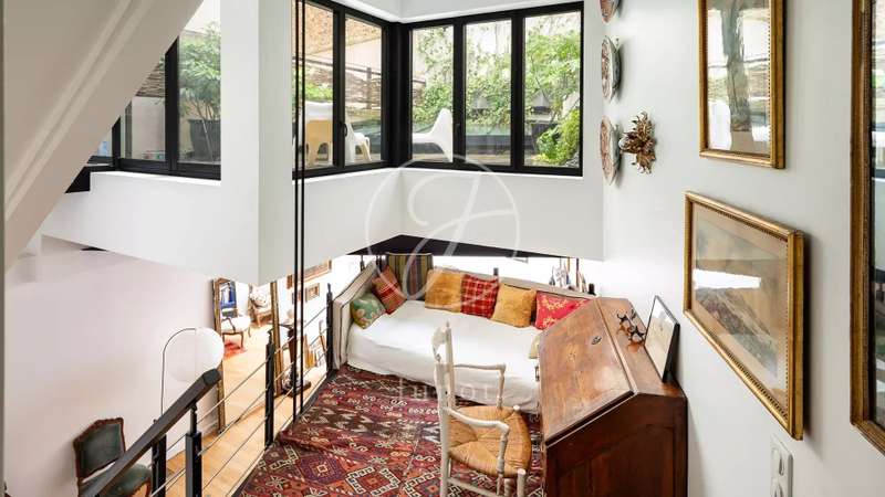 Ideally located between Villa de l'Ermitage and Rue des Pyrénées, close to transport, schools and shops, discover a splendid house in a former ceramics workshop from the 1920s. This vast, loft-like home has a floor surface area of 138.79sqm, and a pleasant, planted terrace of more than 25sqm, completely hidden from view. Behind the discreet entrance door, you'll find a vestibule with separate toilet and space for a bicycle, followed by a vast dining kitchen opening onto a cathedral double living room with a large glass roof. The second floor features an office on a mezzanine suspended by metal beams, and access to the superb green terrace. Also on this level is a spacious bedroom with en-suite shower room. On the second floor, a second large bedroom with storage space, bathroom and toilet. Access to a large attic completes this level. This property, with its period workshop charm and in perfect condition, benefits from absolute peace and quiet and plenty of natural light.