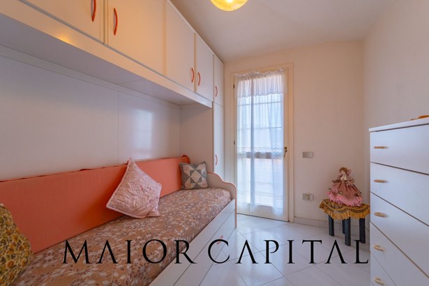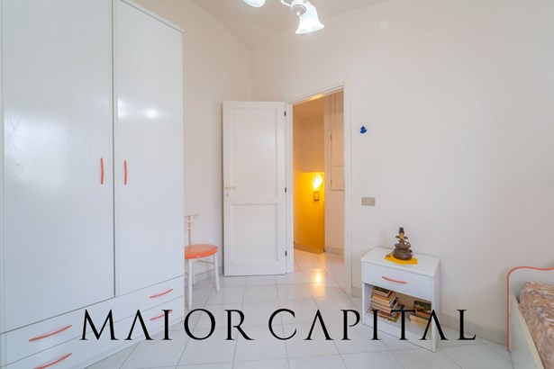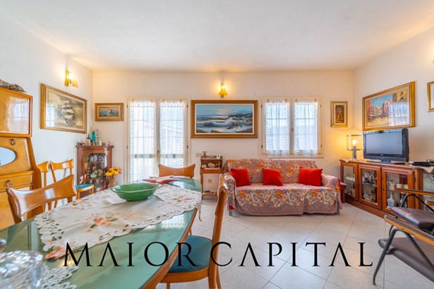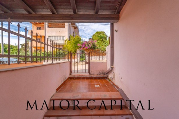 The ground floor is accessed via a small veranda that leads into a spacious and bright living room, flanked by a separate, well-organised and functional kitchen; a bathroom with shower completes this level. An internal staircase leads to the upper floor, where the sleeping area consists of a spacious double bedroom, two single bedrooms and a bathroom with bathtub.