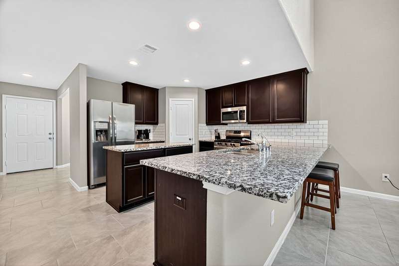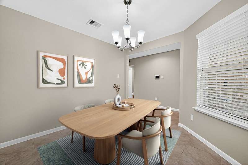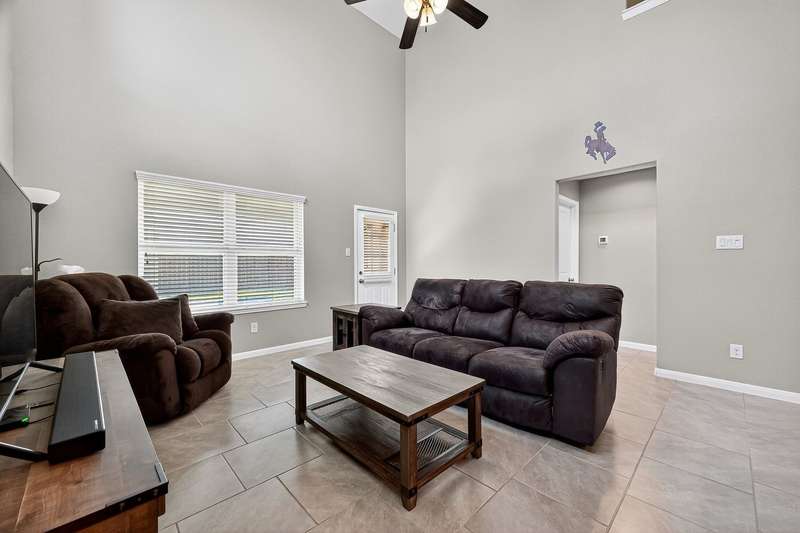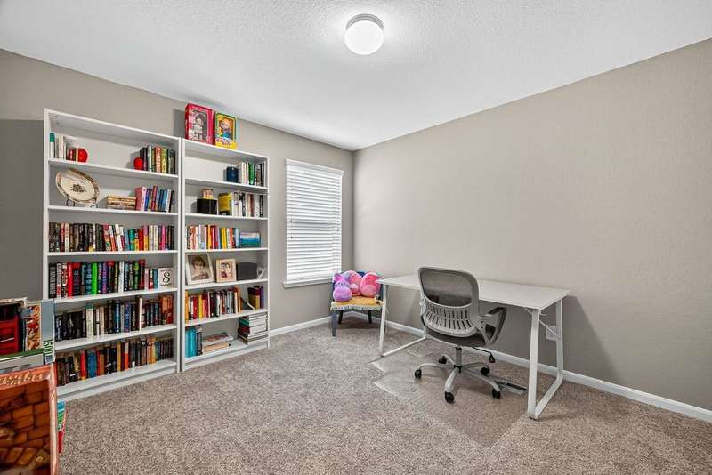 Beautiful 4-bedroom, 2.5-bath home in Southern Colony! . Formal dining room welcomes you just off the entry. The kitchen features granite countertops and stainless steel appliances, central island and open to the living area for easy entertaining. The primary suite is tucked away on the first floor for added privacy. Upstairs you ll find a large game room along with three secondary bedrooms. Enjoy a fenced backyard with a covered patio perfect for relaxing or gatherings. Home also comes with owned solar panels for energy savings. Move-in ready!