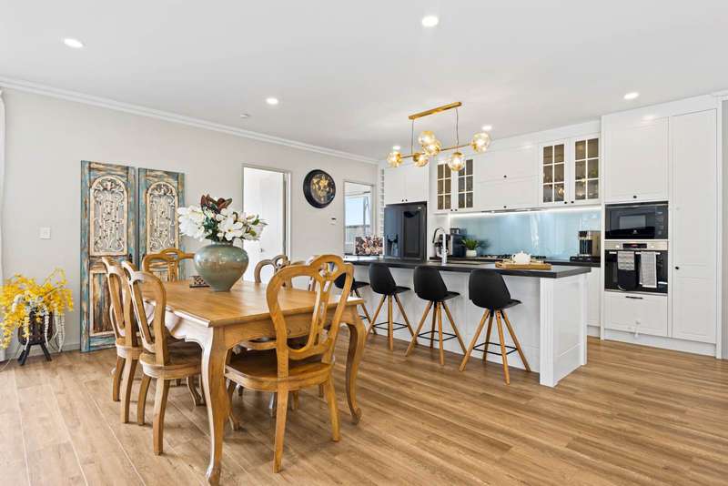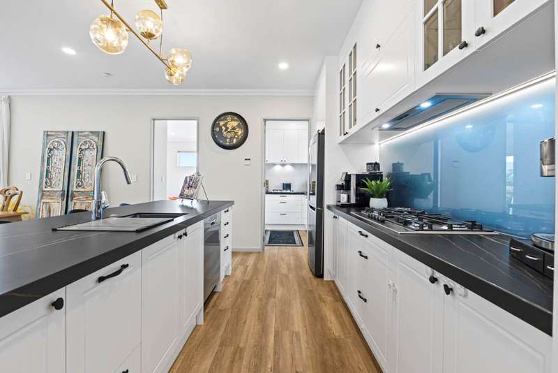 Discover the perfect blend of luxury, comfort, and convenience in this spacious five-bedroom home. Nestled in a prime location near the water, this modern elegant property is ideal for hosting long-term guests, creating family memories, or simply enjoying everyday life. • Massive Master Suite upstairs retreat boasts a generous walk-in wardrobe and an exquisite en- suite bathroom with a soaking tub, walk-in shower, and dual vanity. • Comfortable and sizeable upstairs rumpus room, offering a quiet space for social interaction or studying. • Three upstairs double bedrooms sharing a fully tiled bathroom in addition to the master suite, enabling all your family members to feel rested and well looked after. Downstairs the open-plan living area flows effortlessly onto a deck overlooking serene water views and lush green spaces. • Separate lounge near the front entrance, serving as a useful space for entertaining or having quality family time. • The open-concept kitchen, dining, and living areas are thoughtfully designed for seamless entertaining. A central island invites social gatherings, while a separate scullery offers additional cooktop, sink, and storage. • A fully equipped downstairs guest suite provides visitors with privacy, featuring a modern en-suite bathroom and wardrobe. • Central heating upstairs, a heat pump in the living area, and a double garage with internal access and laundry facilities. Zoned for Hingaia Peninsula School and close to ACG Strathallan. The peaceful location right by the water provides a relaxing atmosphere, as well as being close to Karaka Lakes Reserve. Karaka shops, popular cafés, restaurants, and a childcare centre are within easy reach. Don't miss this opportunity! Visit our open homes this weekend or call us for further information.