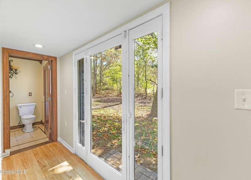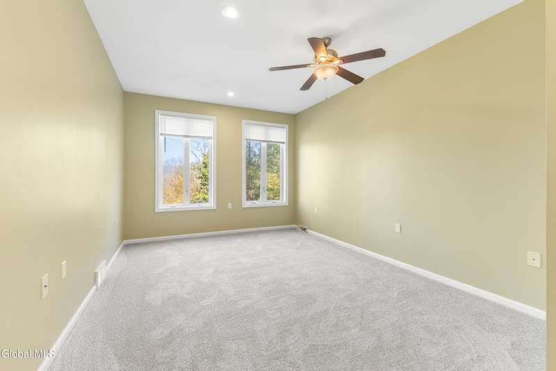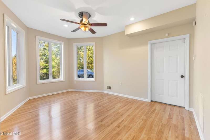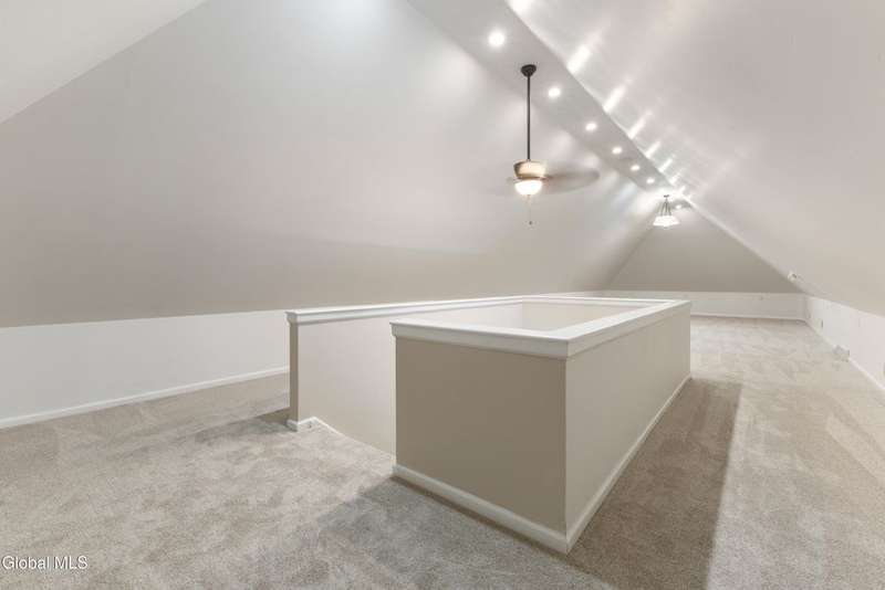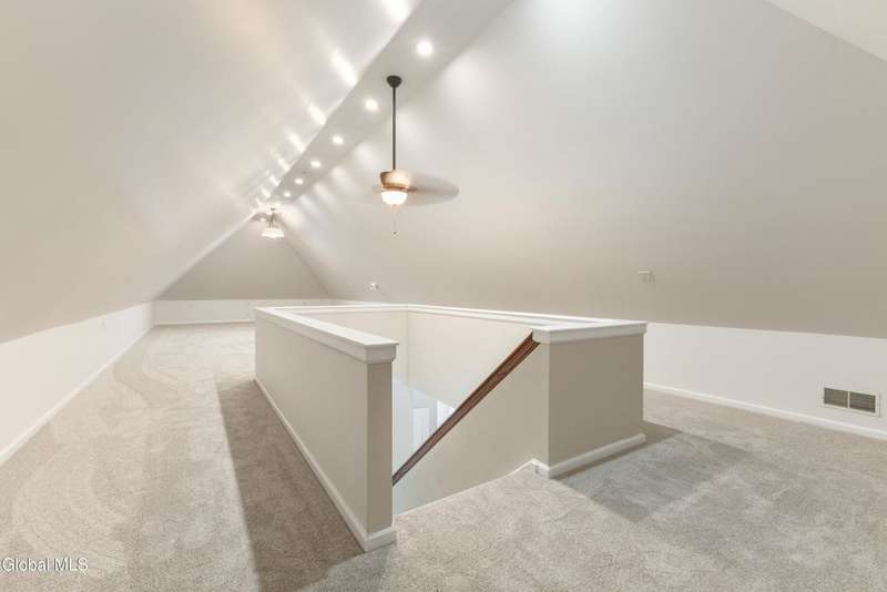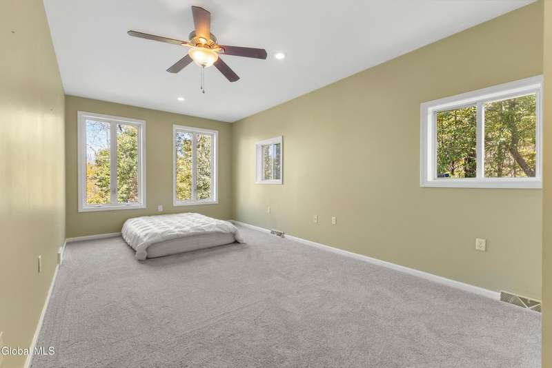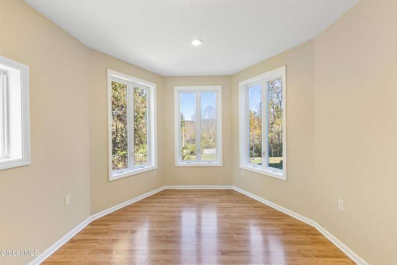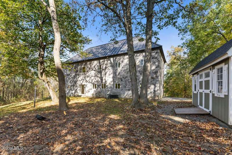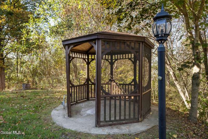 Timeless charm meets majestic appeal in this magnificent 3-bedroom, 3-bathroom home. Nestled back off the road for tranquility and seclusion, this home offers a peaceful private setting on a 1.4-acres! Upon entering the 3,620 square foot home, you are greeted by an inviting foyer with an arched entryway with a view of the elegant staircase. The living room features canted bay windows, hardwood floors, recessed lighting, and a paddle fan. The kitchen has granite countertops, newer appliances, a peninsula island, pendant and recessed lighting, and a spacious breakfast nook/dining area. The primary suite offers a serene retreat with canted bay windows and a walk-in closet. The en-suite bathroom is complete with a double vanity with granite countertop, a jet tub framed by three large windows, and a tiled shower. The expansive bonus room offers vaulted ceiling making it a versatile space that could serve as a fourth bedroom, family room, or home office. Dual heating and cooling zones and a new AC unit installed in 2024. The private backyard, surrounded by tall trees, features a gazebo equipped with electricity and an Amish storage shed with a loft for extra space. 2-car garage with mahogany Clopay garage doors. A galvanized steel standing seam roof offers durability for up to 80 years!(NOTE: This is Greenwich, New York near Saratoga Springs, New York.)