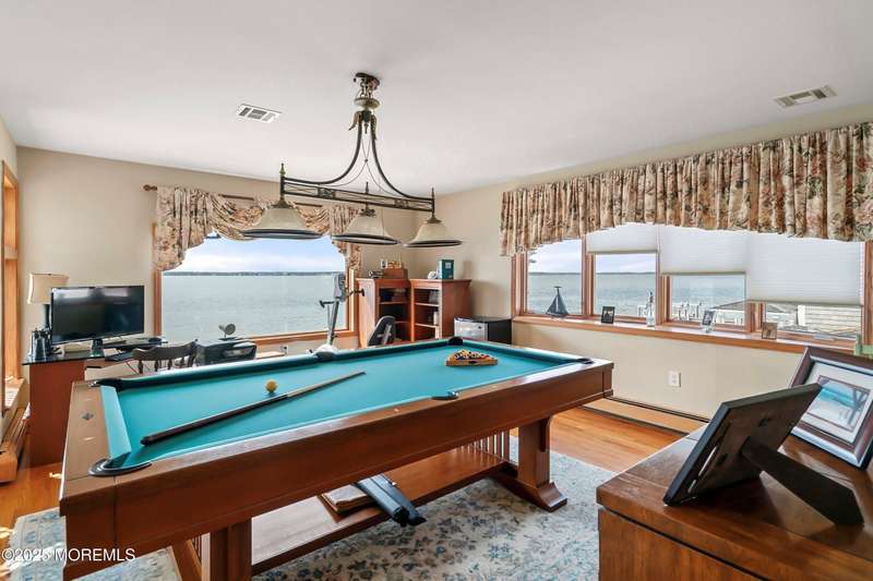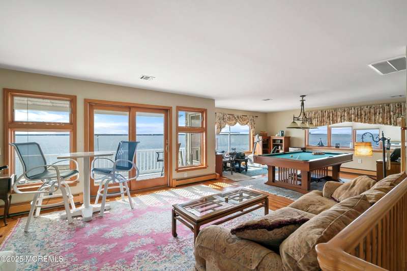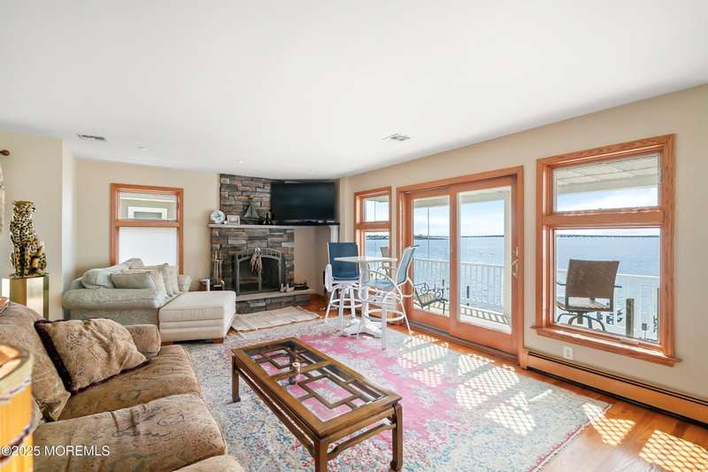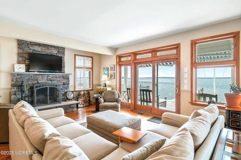 Welcome to your bayfront dream, where every day feels like a getaway. This stunning 5-bedroom, 4-bath home invites you to relax, entertain, and soak in unforgettable sunsets. Whether you're gathering with loved ones in spacious living areas, enjoying a breeze on the Trex deck, or watching boats glide by from your own dock, life here feels effortless. With peaceful water views, cozy evenings by the fireplace, and summer days under retractable awnings, this home offers the perfect balance of luxury and laid-back coastal living. Wake up to beauty, unwind with the sunset, and experience the best of waterfront life-right from your own backyard. Step outside onto your open trex deck patios with retractable awnings for those bright sunny days. This home faces due West so you will experience the greatest sunsets available on the bay. From your yard you have unobstructed views of the toms river bridge. The maintainence free property is complete with a riparian lease dock and vinyl bulkhead. Schedule a private showing today.