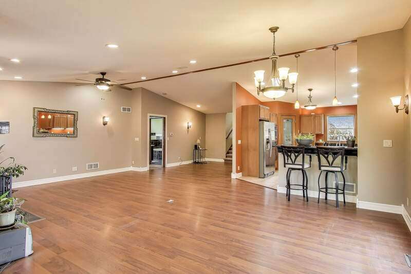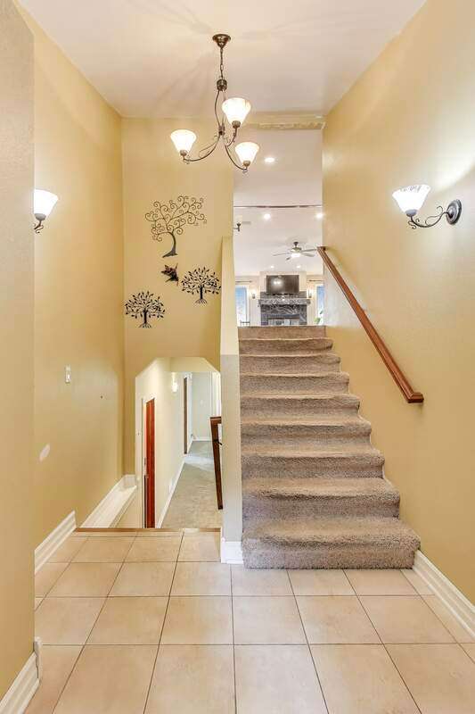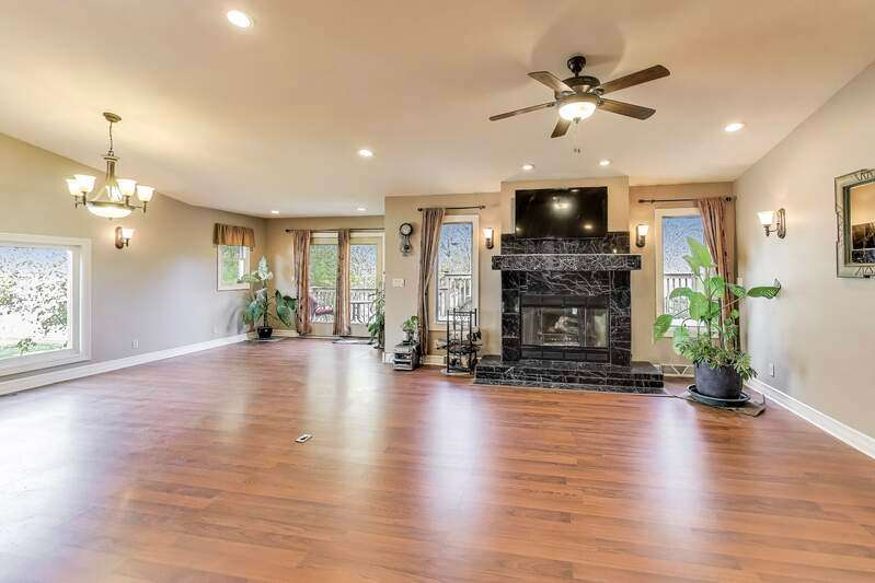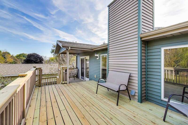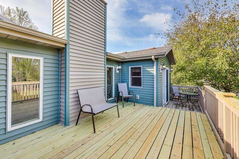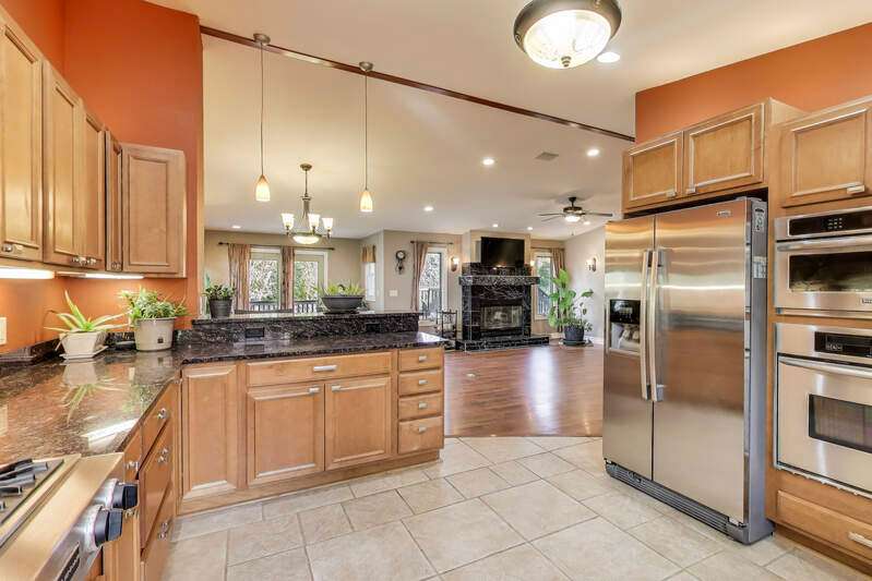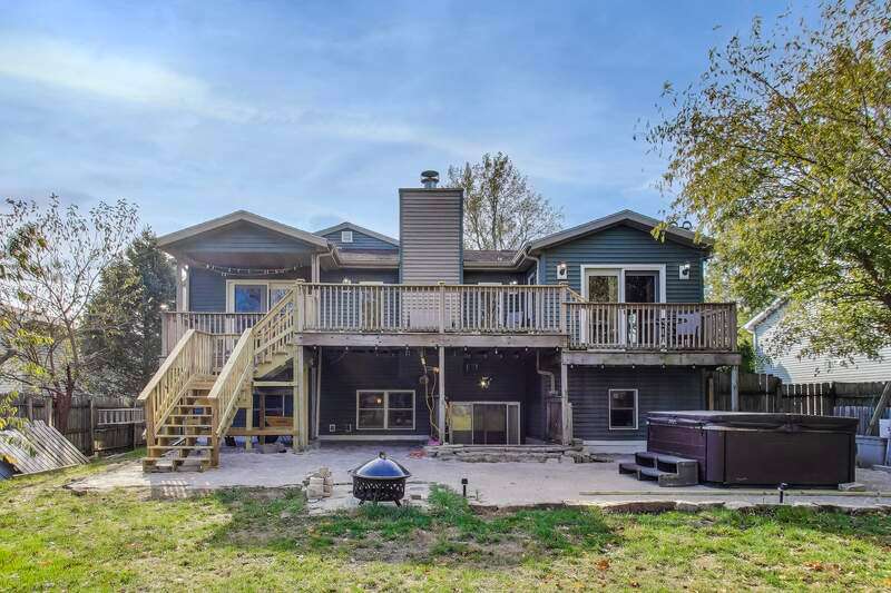 Welcome to your entertainer's dream home in Pleasant Prairie! Custom-built home with 2x6 construction; offers no HOA & low taxes. Chef's kitchen shines with granite counters, gas range top, convection microwave, and pantry. Gather around the natural wood-burning fireplace with gas starter for cozy evenings. Master suite features a jetted tub with heater, walk-in shower, double vanity & heated floors. Upper bathroom also boasts heated floors. Walkout basement Rec Room includes a wet bar with granite countertop, mini fridge & ample seating. Bonus room is perfect for den/workout room. Enjoy built-in speakers inside & out, a fenced yard for kids & pets, a gorgeous deck, and hot tub for relaxing. Deep 2.5-car garage has cabinets, sink, and side parking for toys! Brand new furnace & A/C (2025)!