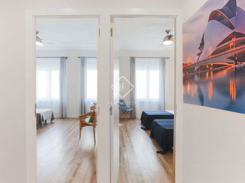 Lucas Fox presents this spacious apartment, located just steps from La Marina de Valencia and the beach, with everything you need to enjoy a comfortable life. The property has six bedrooms, three of them doubles, ideal for large families, guests, or even a home study . It also has two complete bathrooms. The day area offers a cozy living-dining room with an open kitchen and access to a balcony perfect for relaxing outdoors. The property was renovated in 2017 and has been lovingly maintained. It has heating and air conditioning. It is also being sold fully furnished. A unique opportunity to live next to the Mediterranean. **The elevator installation has already been approved, and the project is being submitted to City Hall, awaiting construction to begin.
