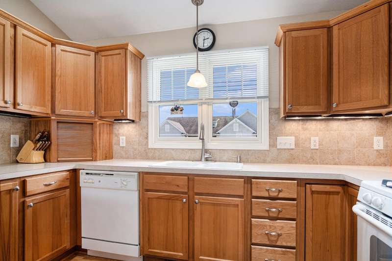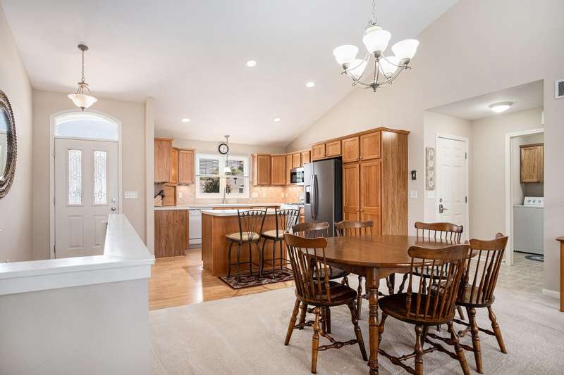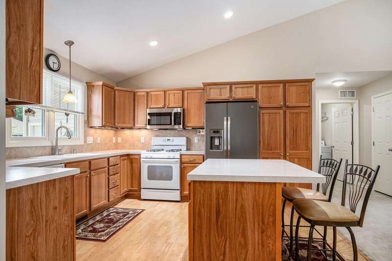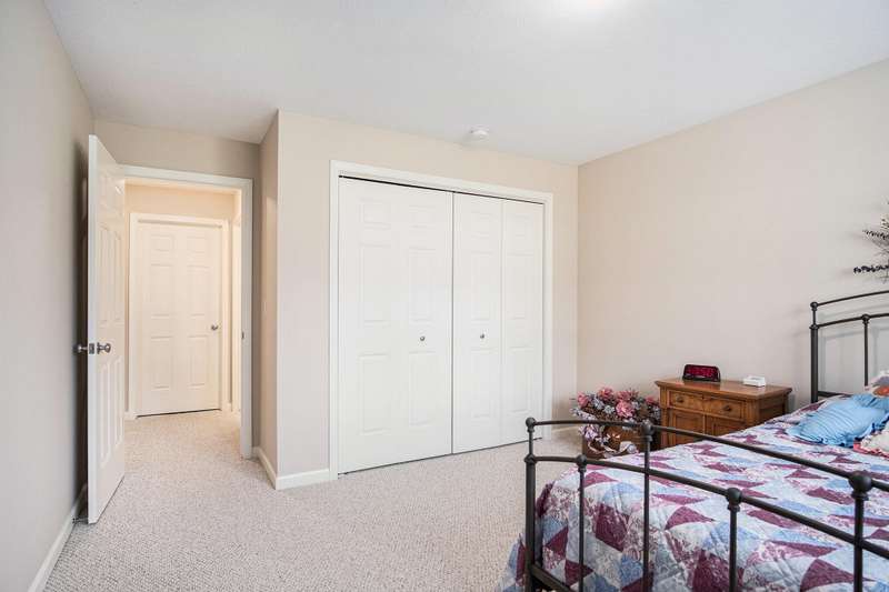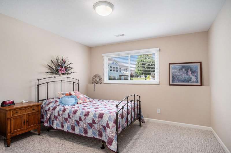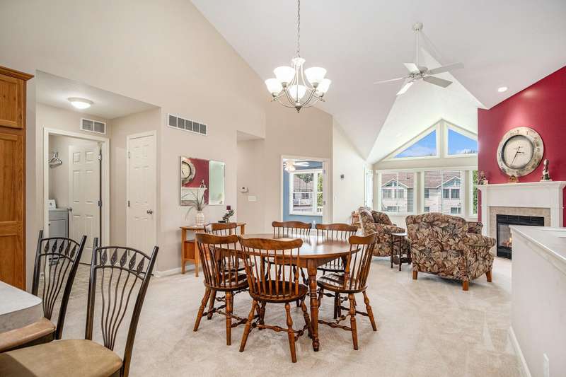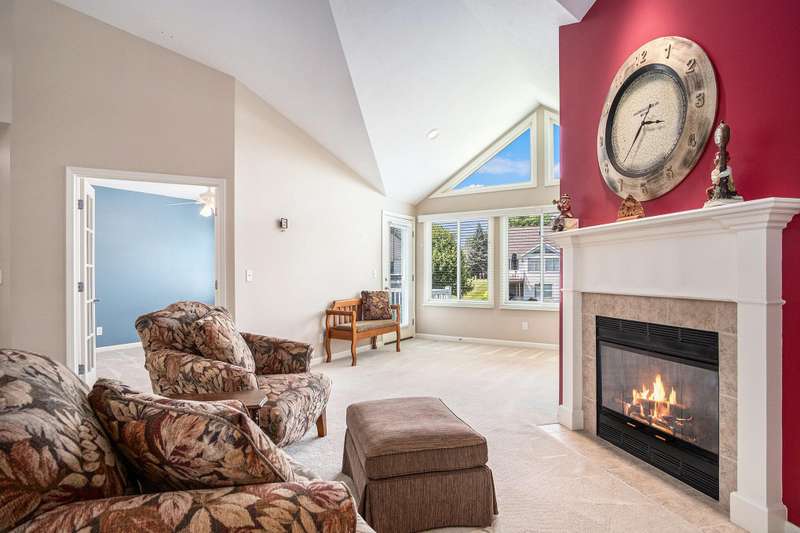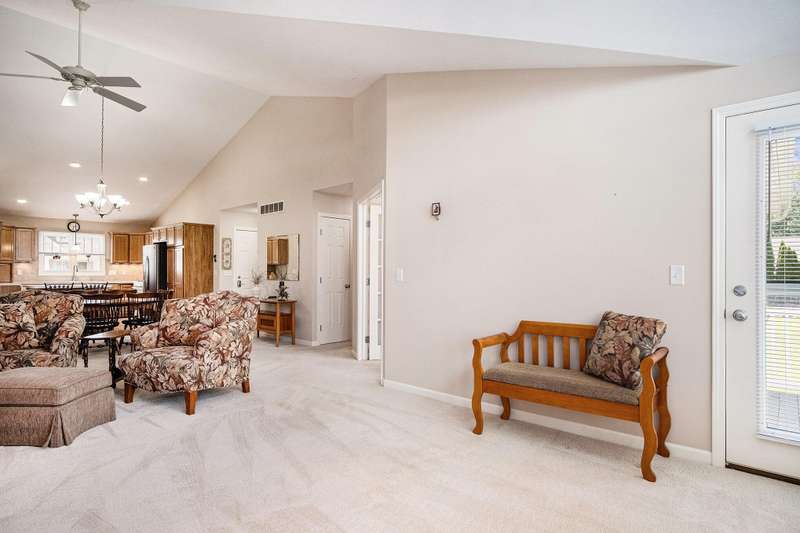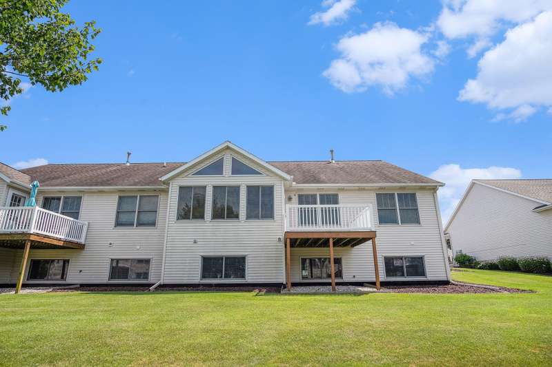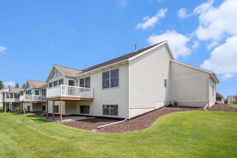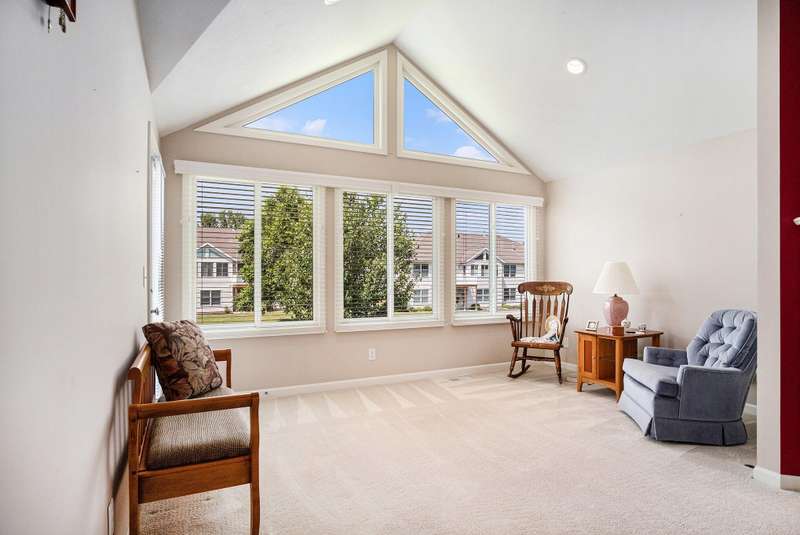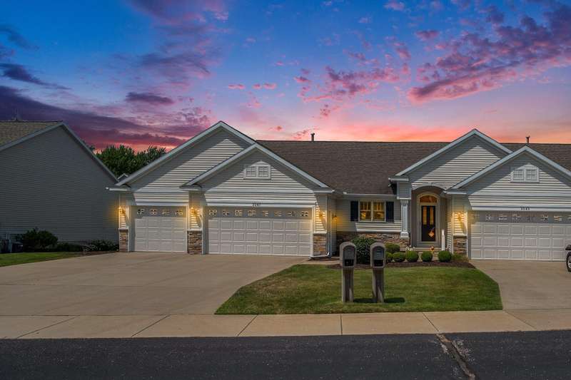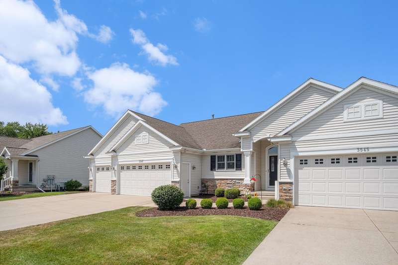 Move right in to this end unit condo featuring a 3 car garage, vaulted ceilings and abundant natural light. You will feel right at home in this Village Woods Condo with a main floor primary ensuite bedroom, open kitchen and main floor laundry. There is a guest room and full bathroom in the lower level with a large family room. Enjoy stress free living without the hassles of maintaining landscaping or snow removal. Possession is available at closing.