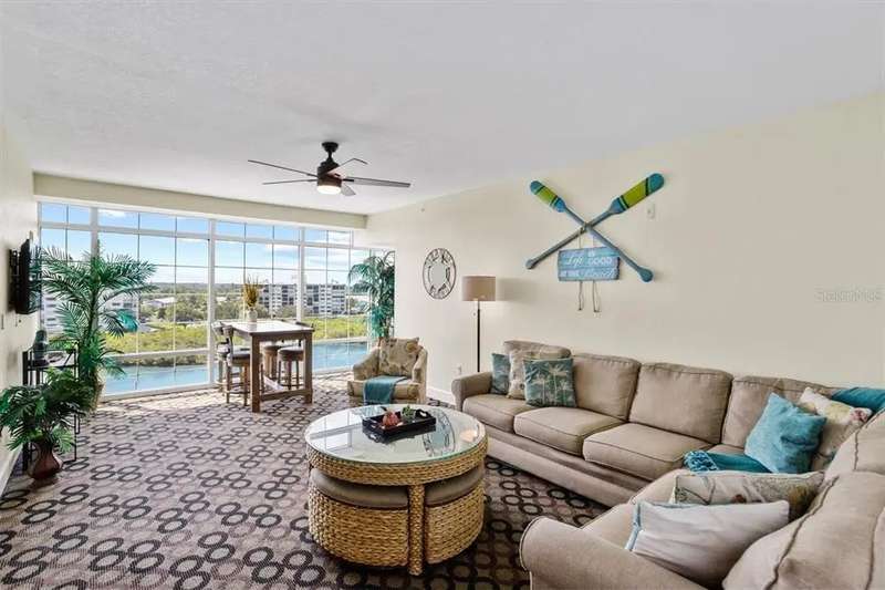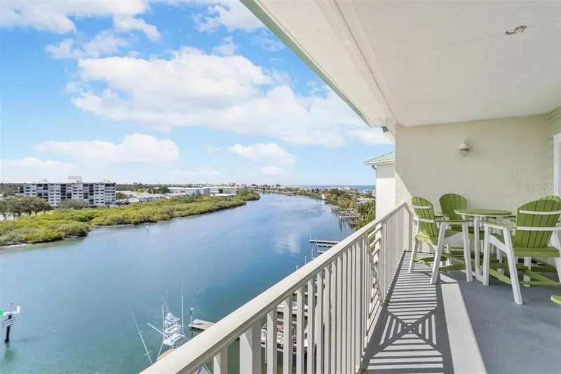 Incredible views of the Intracoastal Waterway from this unit's private 8th floor balcony. This lovely PENTHOUSE Condo sleeps up to 10 people, with a King Bed in the Primary Suite, 2 Queen Beds in the 2nd Bedroom, Twin Beds in the 3rd Bedroom and a Queen Sleeper Sofa in the Living Area. The well appointed kitchen has granite counters, newer appliances, cooking and serving pieces, coffee maker and a toaster. Private Laundry in the unit with stackable washer and dryer. The condo comes with 4 daily passes to Splash Harbor, the onsite water park with Lazy River, Slides, Splash Pad, Pool and Tiki Bar! Additional passes can be purchased for guests staying in the condo. Please note that the pool is part of the water park. No guest passes are needed after the park closes at 6:00 p.m. Located directly on the Intracoastal Waterway with a crosswalk to the Public Beach Access at Indian Rocks Beach, this stellar location offers a multitude of shopping and dining options within just a few blocks. The Waterpark has a lazy river, waterslides, splash pad and pool – something for everyone! Enjoy live music in the evenings, movies and sports projected Poolside. Sip, Shop and Snack at the onsite Tiki Bar, Concession and gift shop. Harbourside Day Docks are available for our guests traveling by boat. Boat and bicycle rentals are also available nearby. The Miniature Golf Course and Game Room are available at the adjacent Holiday Inn – fees apply. One garage parking space is included for residents or guests (additional parking is available at a daily rate). Leave your car in the garage and let the Trolley take you to the many attractions and venues up and down the crystal blue coastline. With a 3-day minimum rental, this property is a great personal getaway or a lucrative investment property!