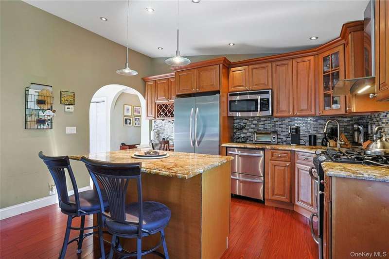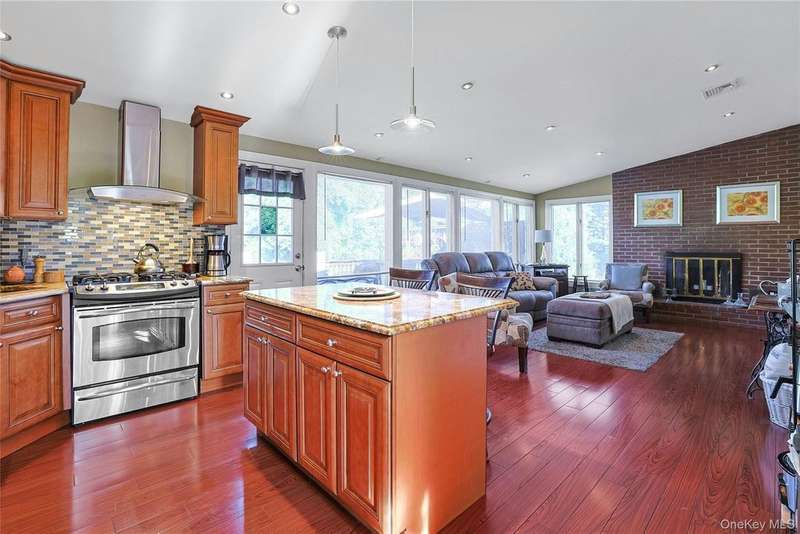 This beautiful three-bedroom Ranch is the perfect place to call home. This home has a cozy fireplace, a generous backyard, and an abundance of natural light. You will find it hard to want to leave home. The kitchen features an expansive island with seating, opening seamlessly into the living room, where a wood-burning fireplace awaits. Step out to the oversized deck, which offers spectacular, sweeping views of the wooded mountainside and a fenced-in yard. The property's amenities also include a primary bedroom suite with an ensuite bathroom, two additional bedrooms, a hall bathroom, and a laundry area. The walk-out lower level features a family room, a full bathroom, and an attached one-car garage with a whole-house generator connection. Radiant heat makes the home warm and comfortable. Great location close to shopping, restaurants, the Taconic Parkway, and a short drive to Metro North. Taxes do not reflect the STAR deduction of $1,766. This home is ideal for effortless entertaining and provides a wonderful home for family living.
