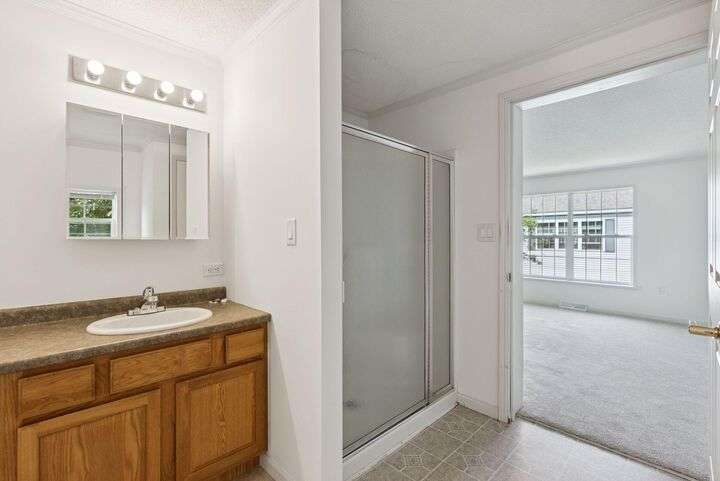 Welcome to the Hillcrest Community, a well-established 55+ neighborhood in Scarborough with a resident clubhouse. This 3-bedroom, 2-bath home offers single-level living with fresh interior paint and new carpet in two bedrooms, making it move-in ready. The kitchen includes an island and plenty of storage, opening to the dining area and large living room. The primary suite has a walk-in cedar closet and a full bath with double vanity, shower, and soaking tub. A side deck overlooks the level yard, great for gardening or relaxing. Conveniently located near Route 1, downtown Portland, and the MaineHealth Campus.