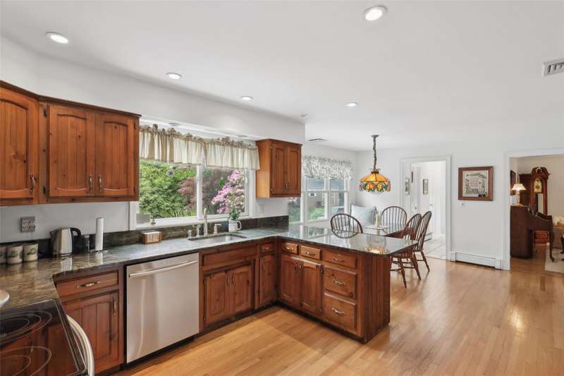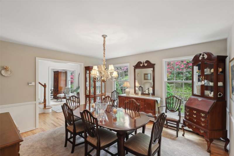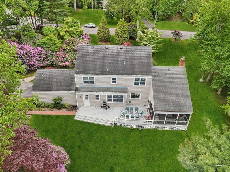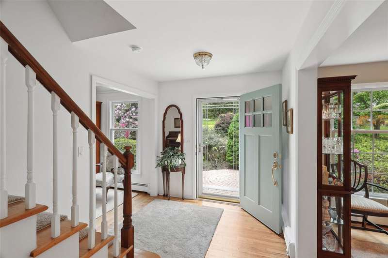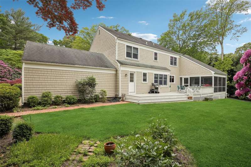 Spacious Colonial with Private Beach Rights in Quiet Cul-de-Sac Awaits!Welcome to this meticulously maintained 4-bedroom, 2.5-bath colonial located in Soundview Acres offering private beach rights. Hardwood floors run throughout the home, complementing a spacious layout ideal for comfortable living and entertaining.The eat-in kitchen features stainless steel appliances, peninsula with seating, and a bright dinette area with a large window seat. The adjoining den offers a cozy fireplace and French doors that open to a beautiful screened-in porch, perfect for enjoying the outdoors with a lush view.Upstairs, you'll find four generously sized bedrooms, including a primary suite with en-suite bath. The full, unfinished basement provides ample storage and the potential for future expansion. Mature landscaping surrounds the private yard, offering both beauty and privacy.