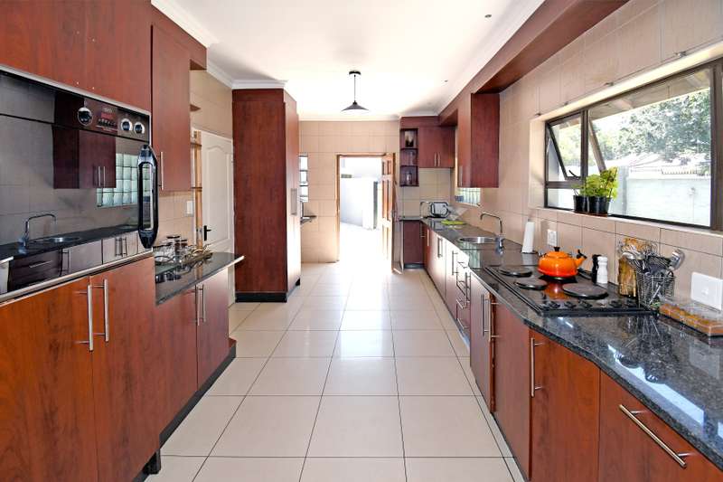 Multi-functional home with a large cottage Situated on a corner stand on over 2860sqm this property is suitable for a large family but can also be used for a business / practice premises or work from home setup. This multi-level home offers 4 bedrooms, 2.5 Bathrooms (main en-suite) plus a two-bedroom cottage. Receptions consist of – Welcoming entrance hall Formal lounge with wood burning fireplace Eat-in kitchen with granite tops Dining room and additional sitting room with access to the covered patio Private study On the lower level - Large TV / Games / Family room with access to the garden An addition game / play room / studio Enclosed patio All with access to the pool area. Two bed cottage with its own entrance, own lounge and parking area. Staff room (en-suite), currently used as a laundry room. Double garage & lots of parking space and the option to use separate entrances.