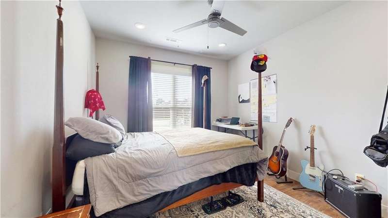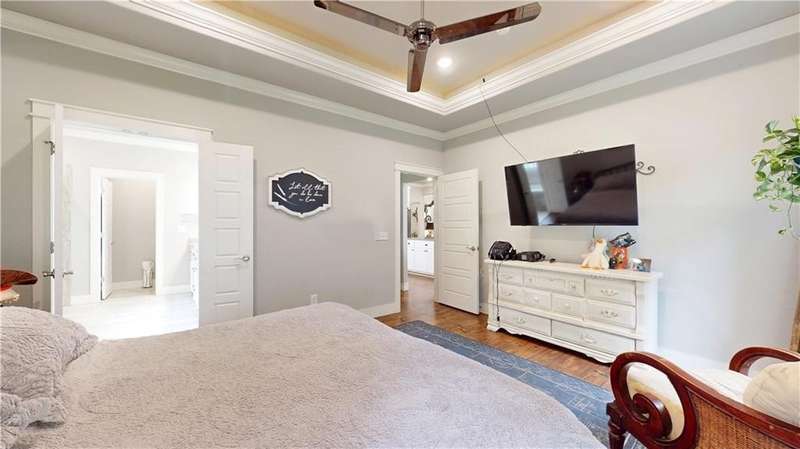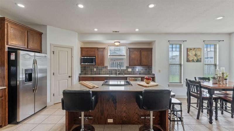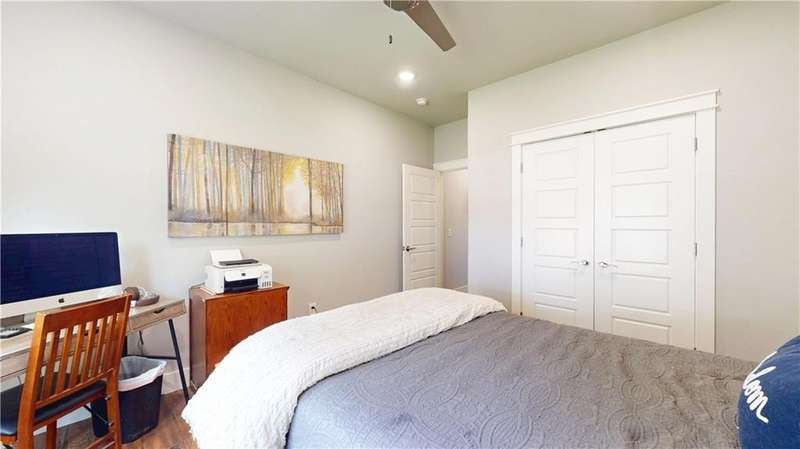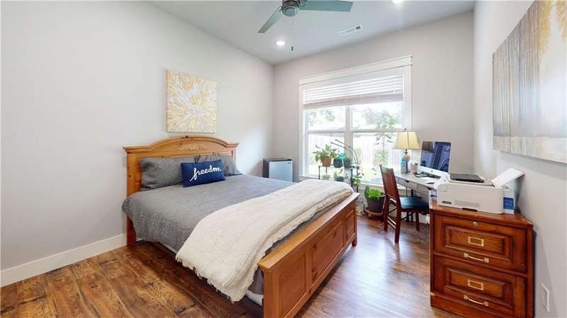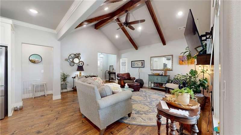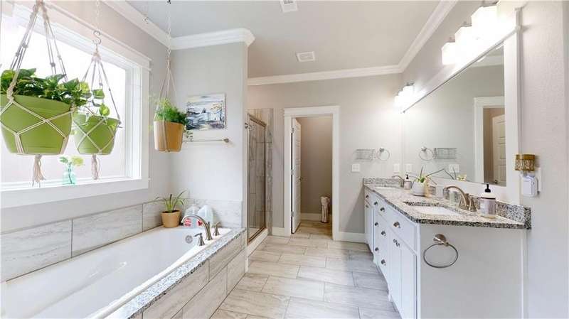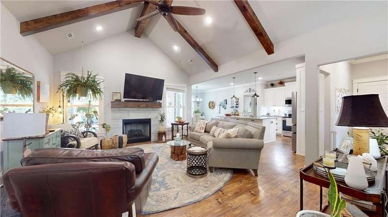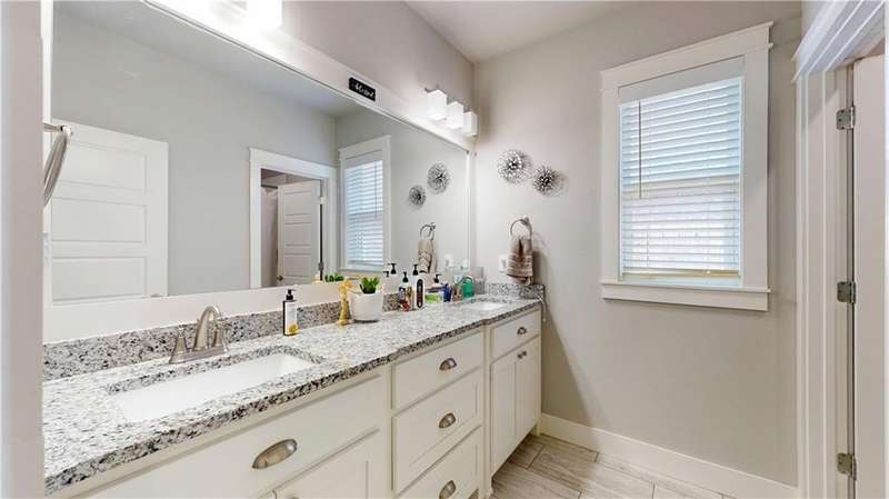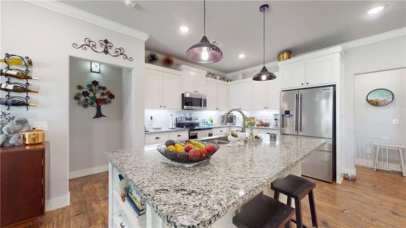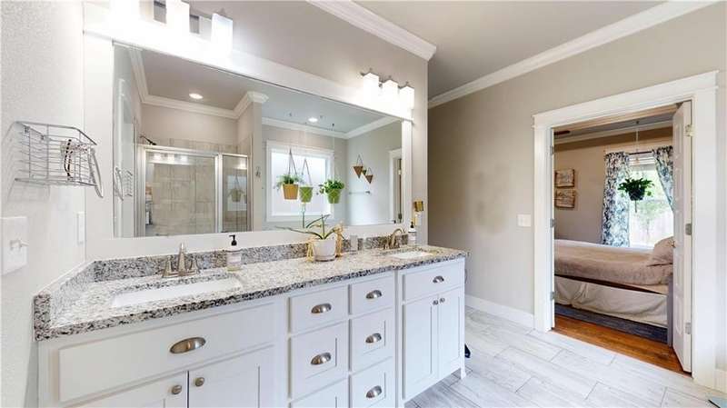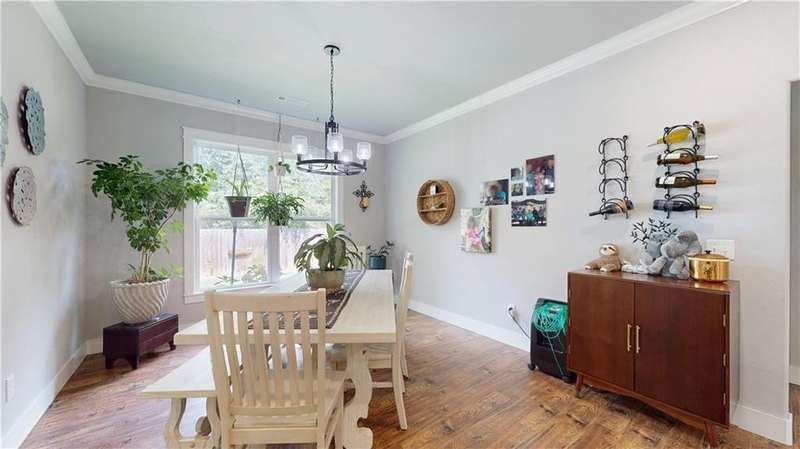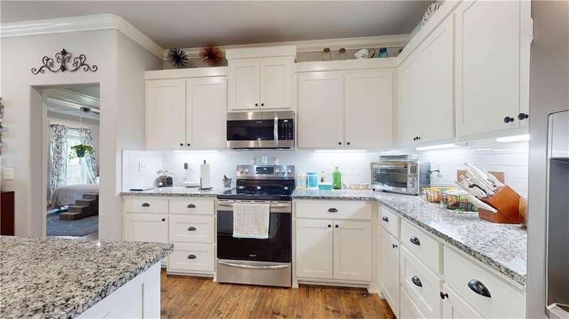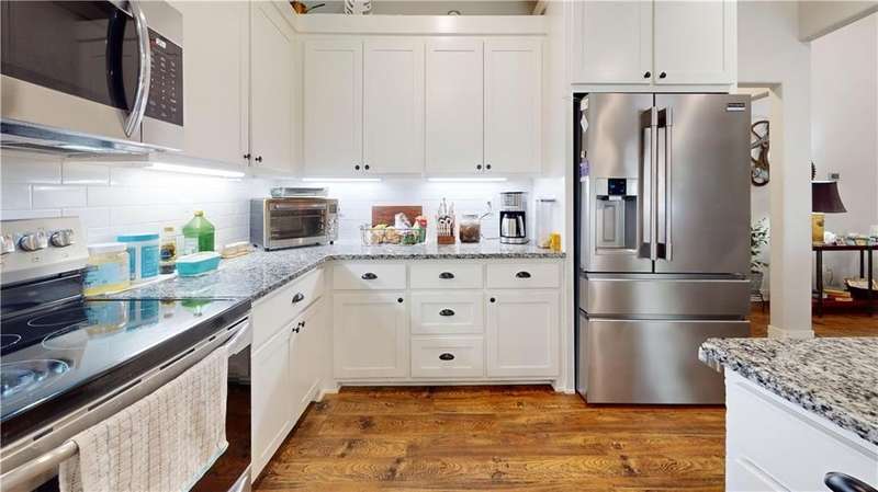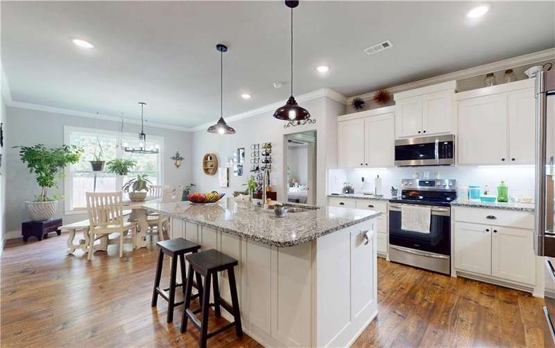 Welcome to Woodbridge Subdivision in Pea Ridge. This Craftsman-style home features 3 bedrooms & 2 bathrooms and has lots of cabinetry and storage. The open floor plan has a large kitchen island and a spacious dining area, providing an ideal setting for gatherings and entertaining guests. The primary bathroom is equipped with a large walk-in shower, a soaking tub, and a roomy walk-in closet, while the guest bathroom offers a double vanity for added convenience. Durable wood-look vinyl flooring extends throughout the home, except in wet areas which are finished with tile. Additional amenities include a privacy fence, blinds, gutters and a retractable front door screen. The covered patio is perfect for outdoor enjoyment. The exterior is brick combined with maintenance-free hardy board siding to ensure lasting appeal and minimal upkeep.