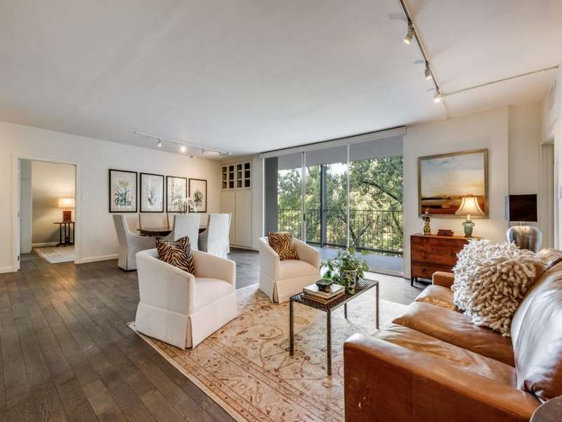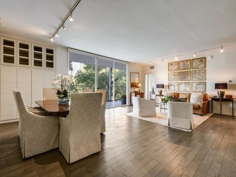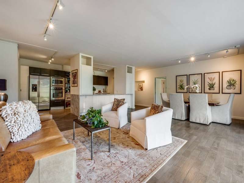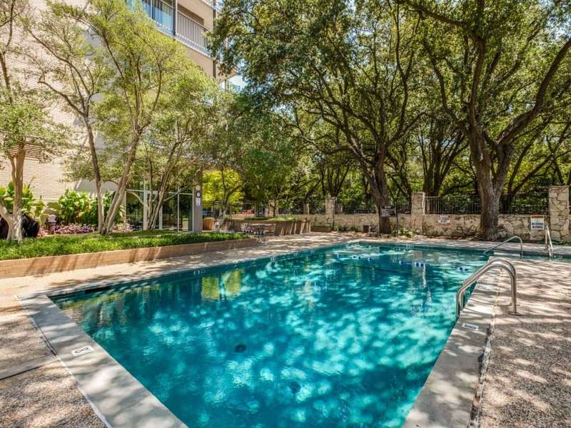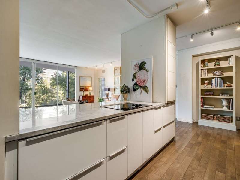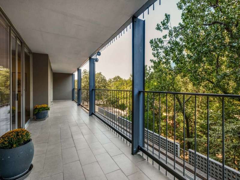 Rarely available, this beautifully renovated 2BR, 2BA residence is conveniently located on the sought-after first residential floor of the iconic Park Towers. With nearly 1800 sq. ft. of open living, floor-to-ceiling windows flood the space with natural light while the treetop balcony creates a serene private retreat above Turtle Creek Blvd. Wide plantation shutters in the bedrooms add timeless style and privacy, while the sleek galley kitchen showcases an oversized quartzite island, custom European cabinetry, soft-touch drawers, and premium Bosch appliances. Designer cabinetry throughout the residence provides ample storage with elegance. Exclusive building amenities elevate everyday living, including a resort-style pool, well equipped fitness center, library, mail and laundry facilities, formal and informal dining areas with catering kitchen, and four guest suites for visiting friends and family. Two secure garage parking spaces and a storage unit are included. With direct access to the Katy Trail and just steps from Dallass best dining, shopping, and nightlife, this Park Towers residence offers the ultimate blend of convenience, sophistication, and style.
